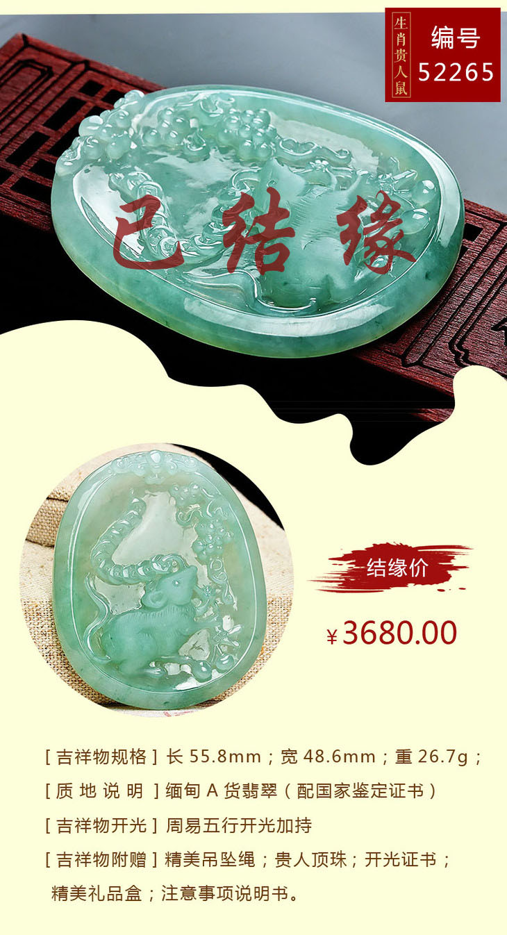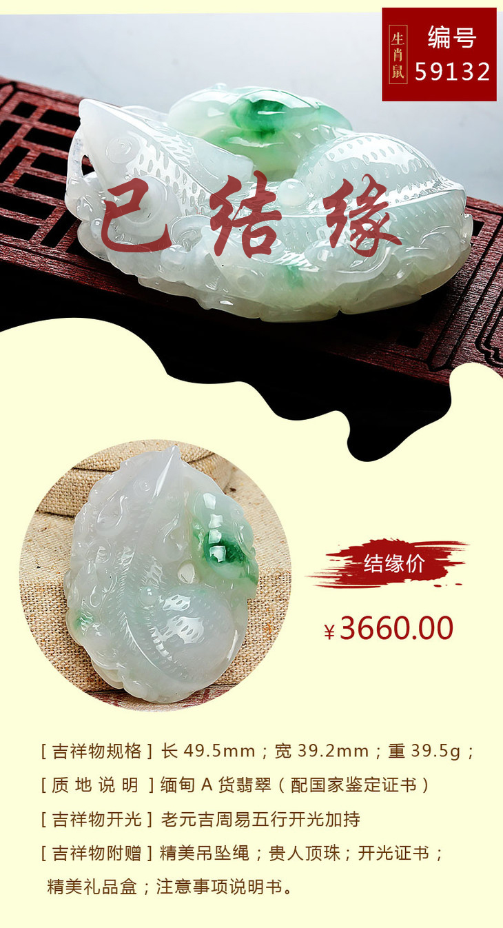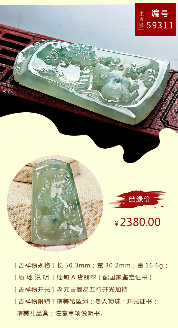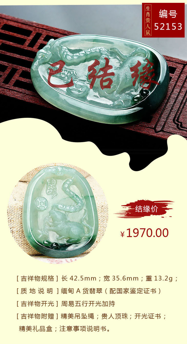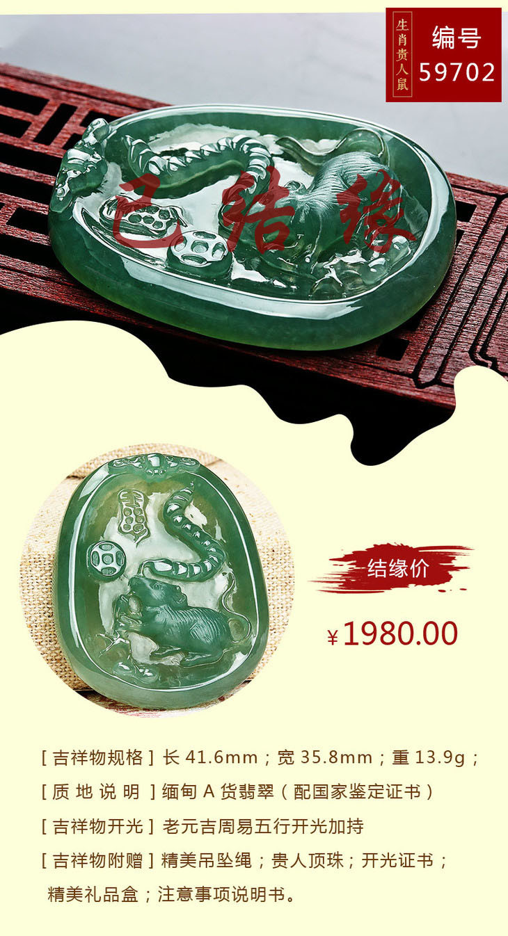 翡翠款【生肖贵人鼠系列】玉石吊坠