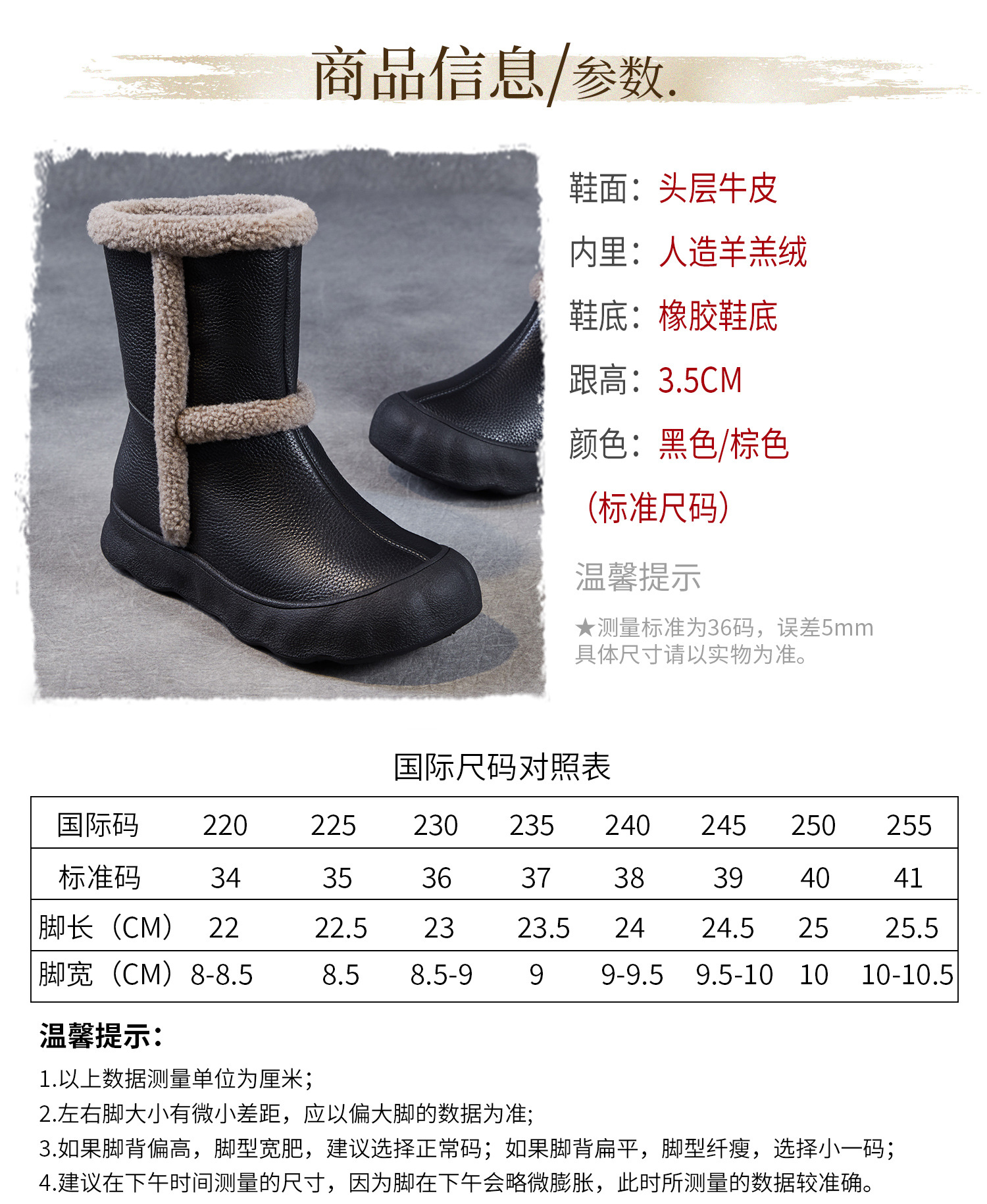 ZM258739头层牛皮雪地靴女2025冬新款真皮加绒加厚短靴保暖东北羊羔绒棉鞋 商品图3
