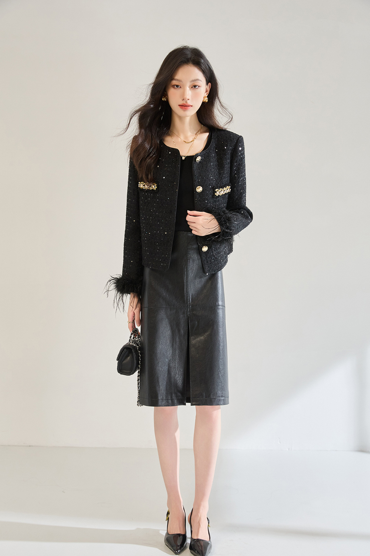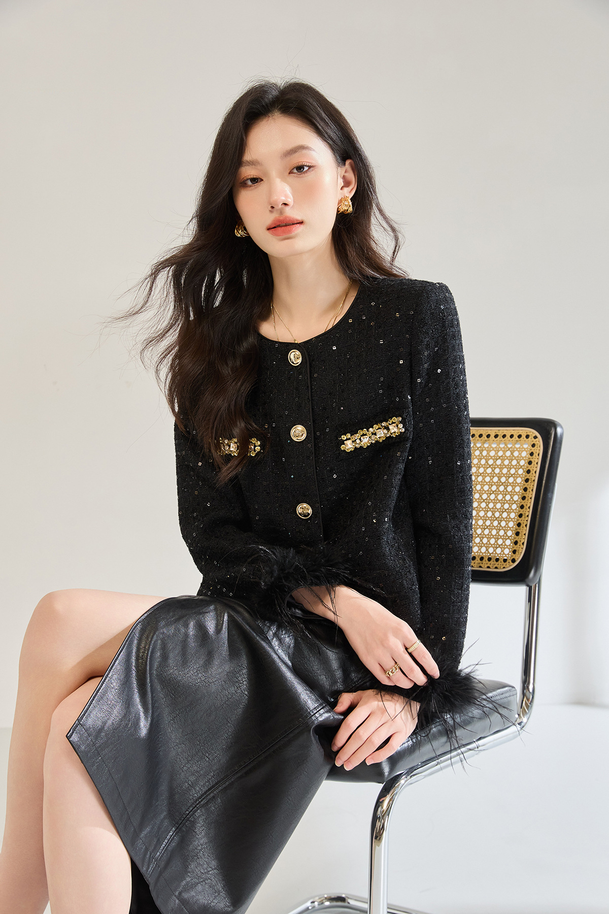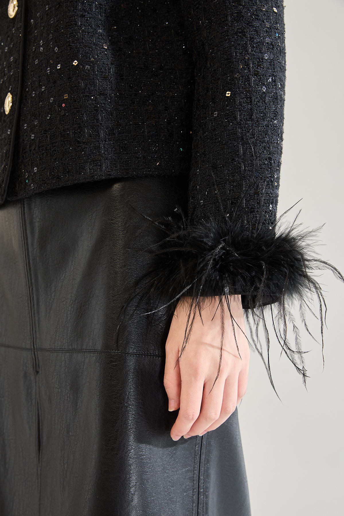 「高货sh」全新升级【铂金会员441/天猫599/差价158】(02645)洛诗琳新款可拆卸鸵鸟毛编织外套2025秋季气质小香风外套sh02645