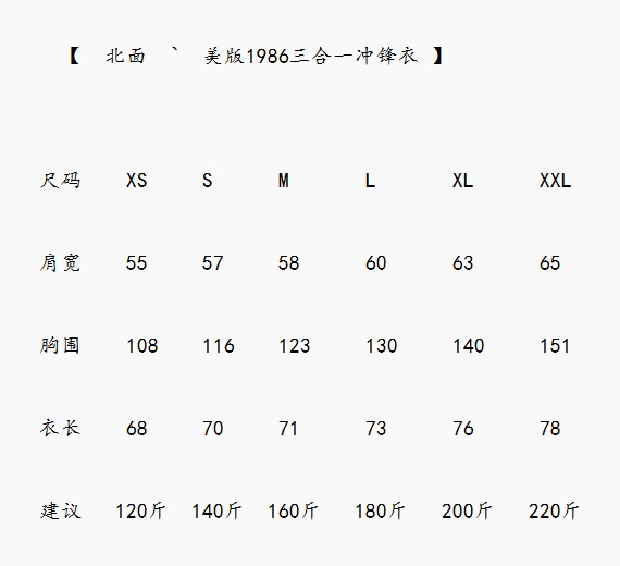 TNF/北面 1986 复刻ICON 经典款 防水 防风 三合一冲锋衣。