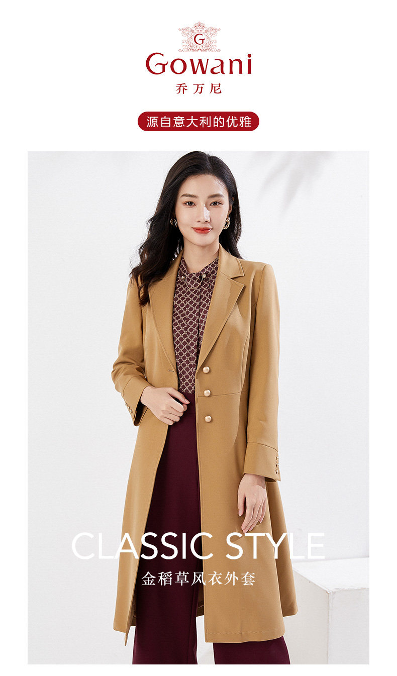 乔万尼新品风衣中长款简约设计收腰显瘦EI3A231