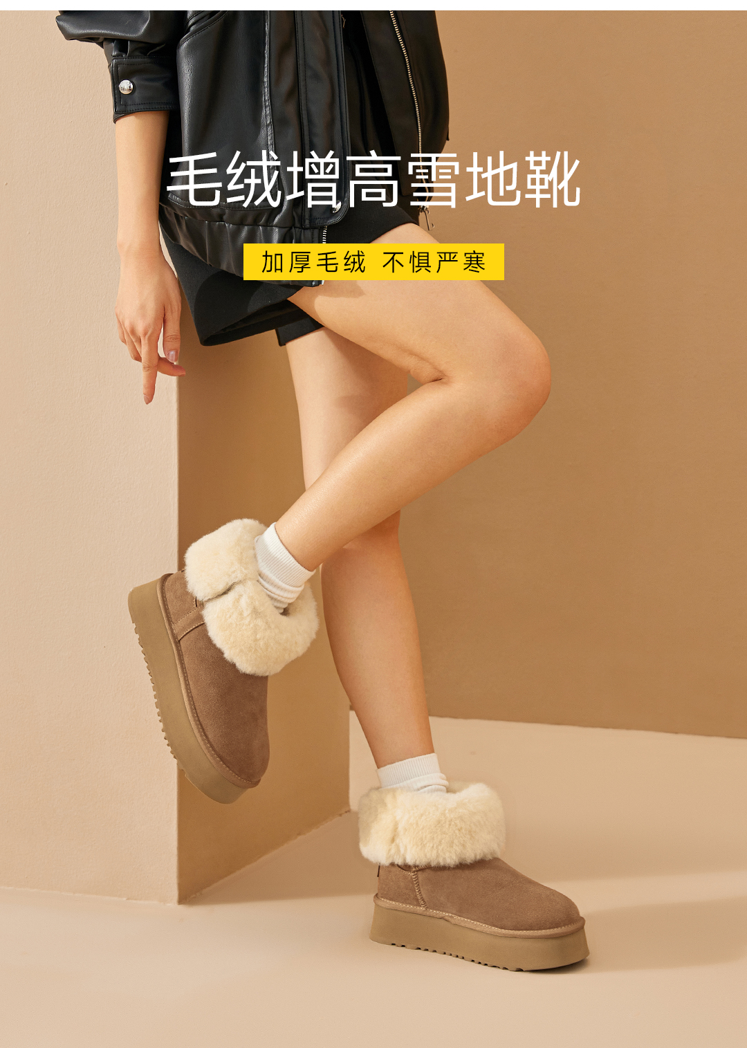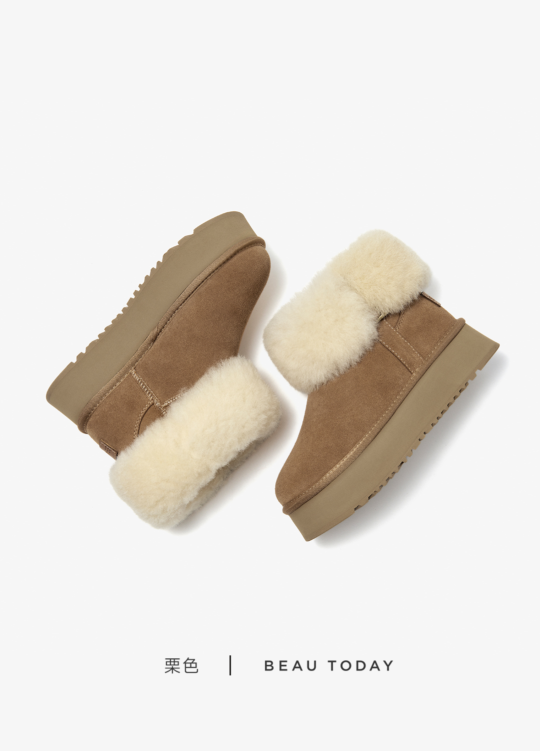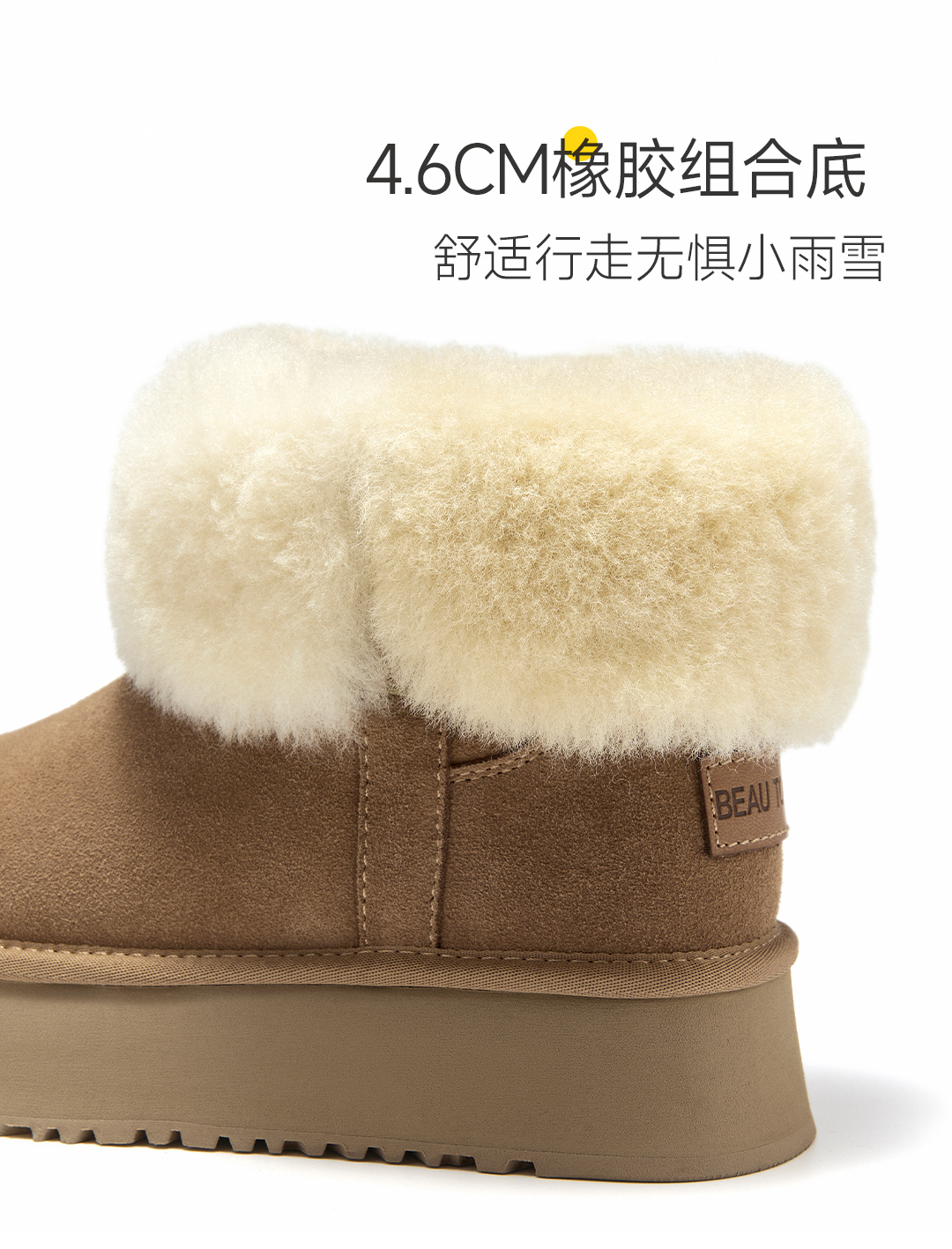 BeauToday 厚底雪地靴女款秋冬加绒棉靴毛毛短靴