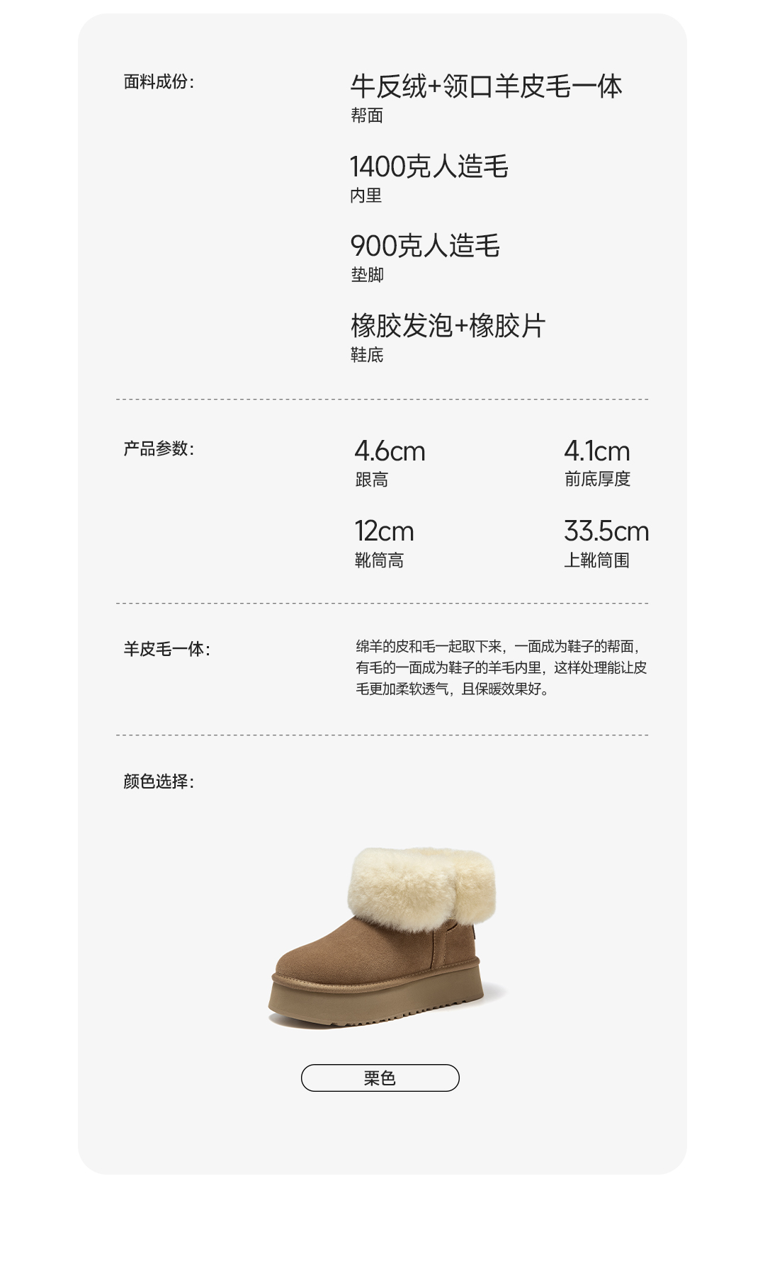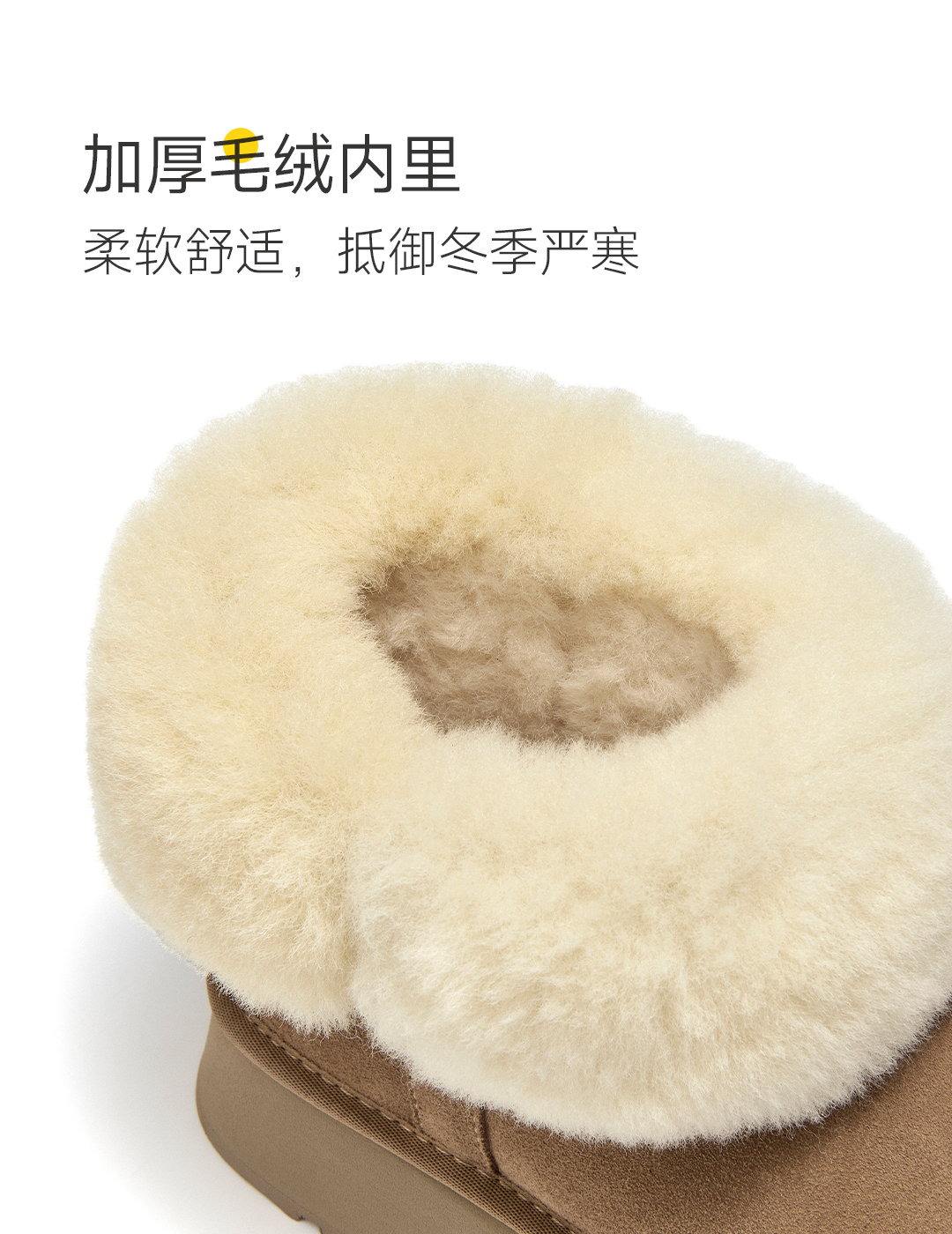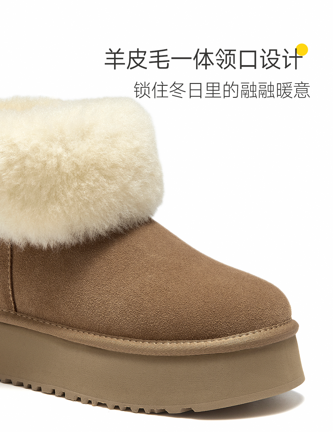 BeauToday 厚底雪地靴女款秋冬加绒棉靴毛毛短靴