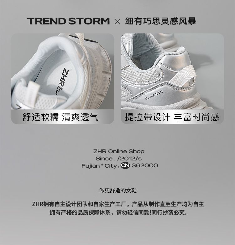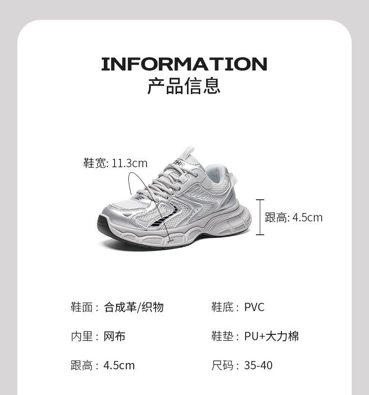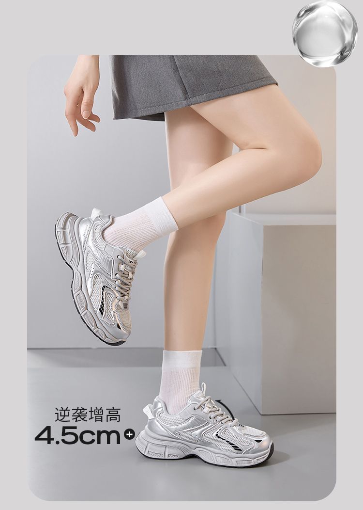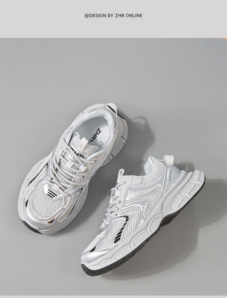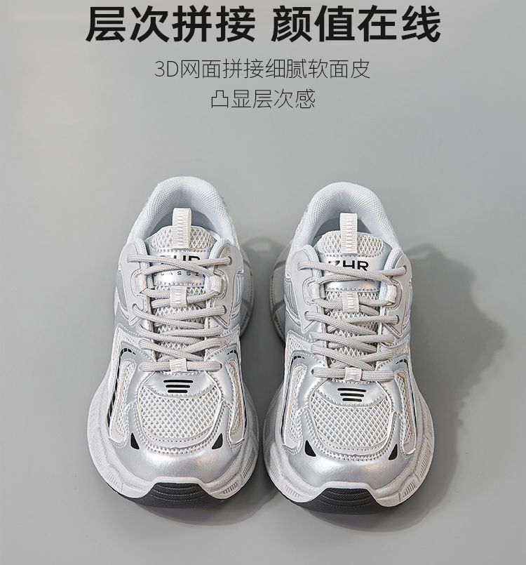 ZHR则则银色厚底老爹鞋女2025新款网面透气运动鞋百搭增高休闲鞋