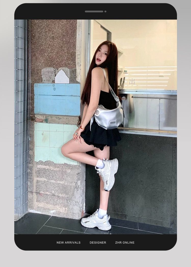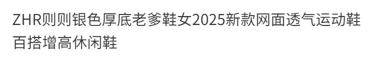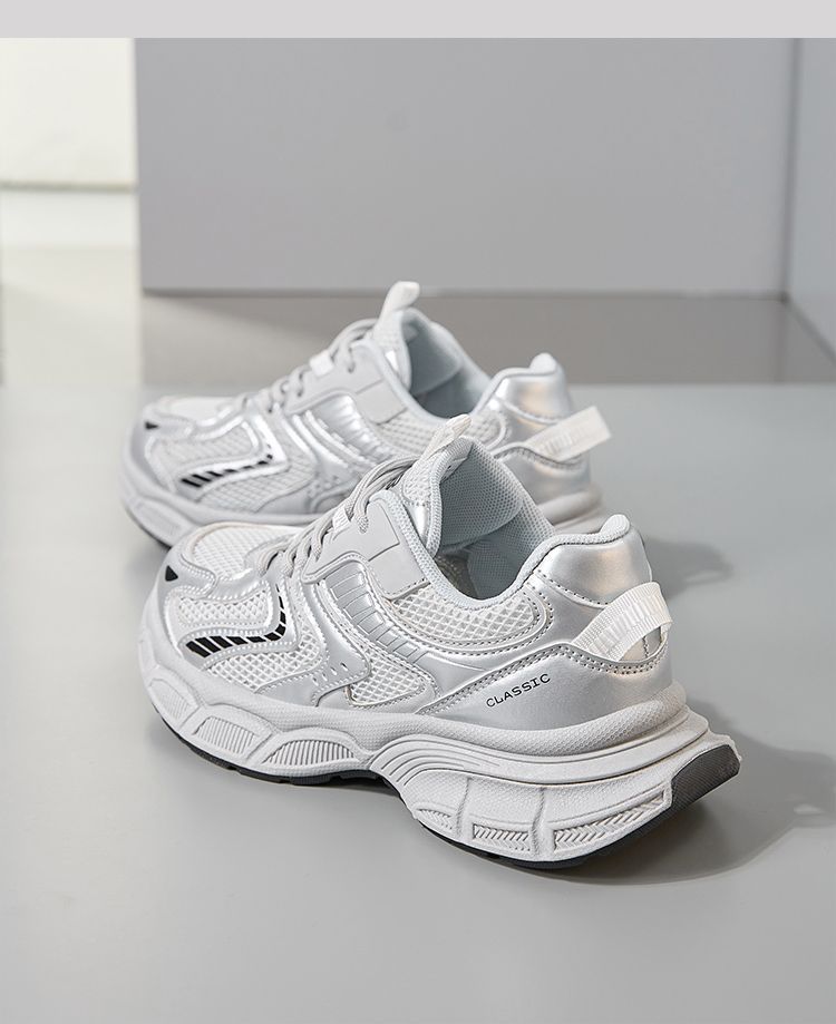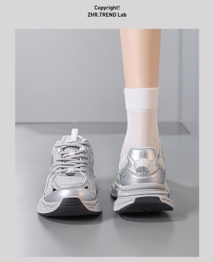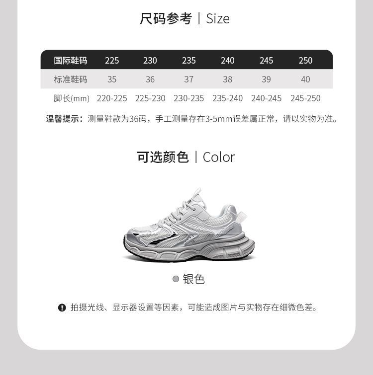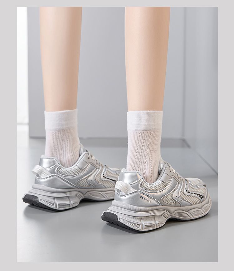 ZHR则则银色厚底老爹鞋女2025新款网面透气运动鞋百搭增高休闲鞋