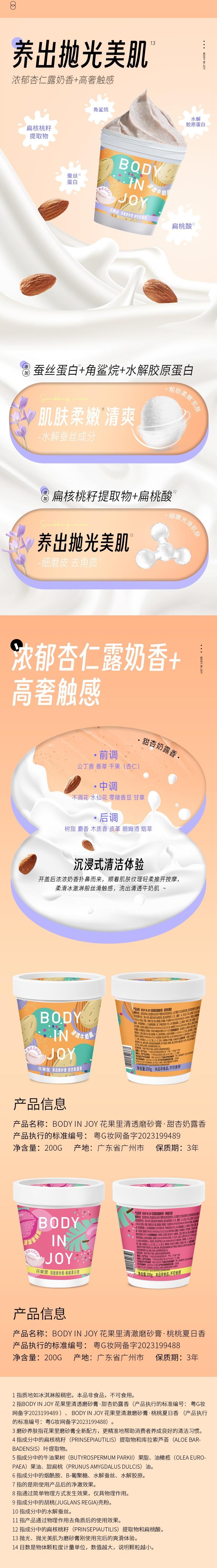 BODYINJOY花果里 清透磨砂膏甜杏奶露香200g 6945015649667