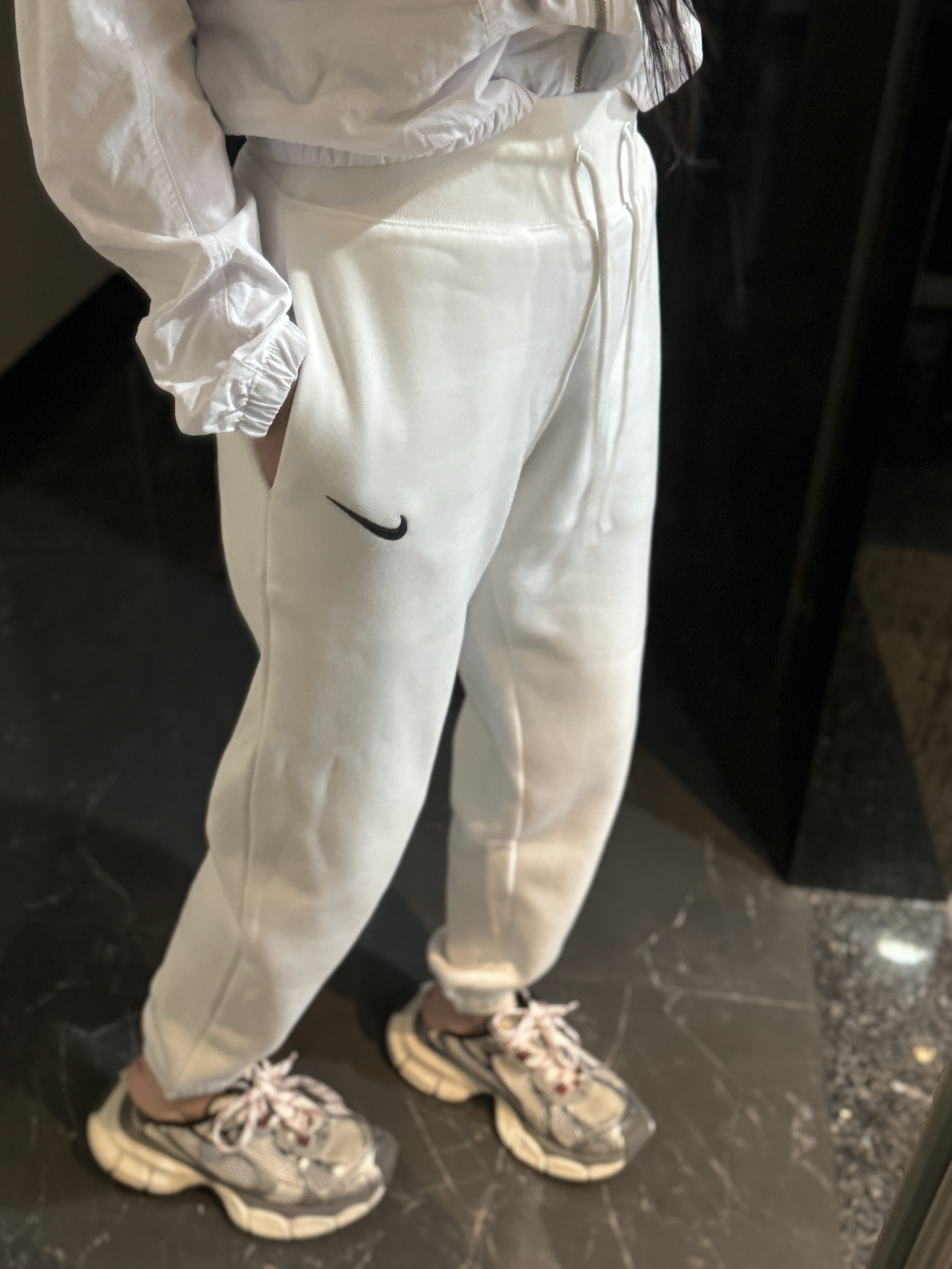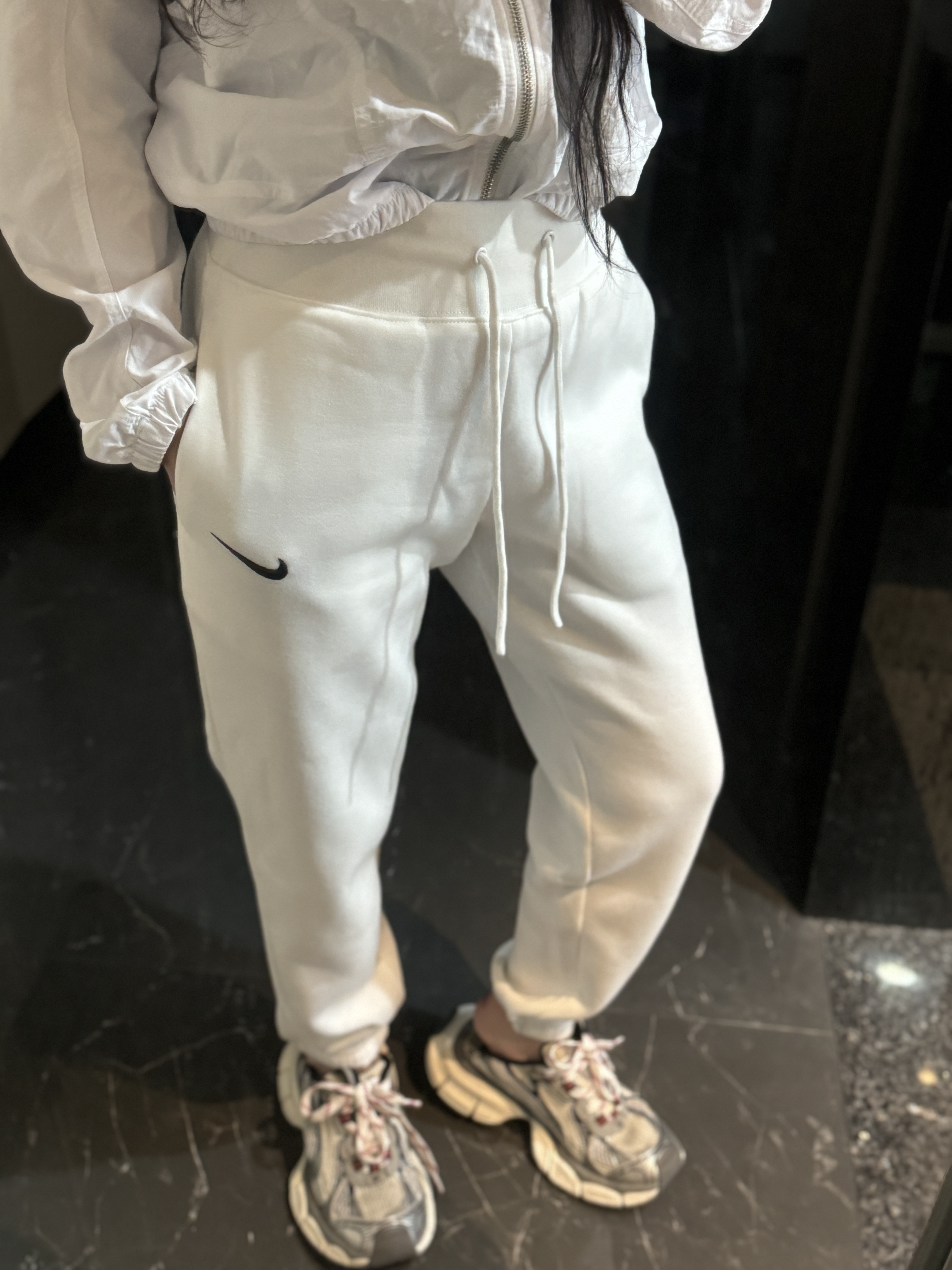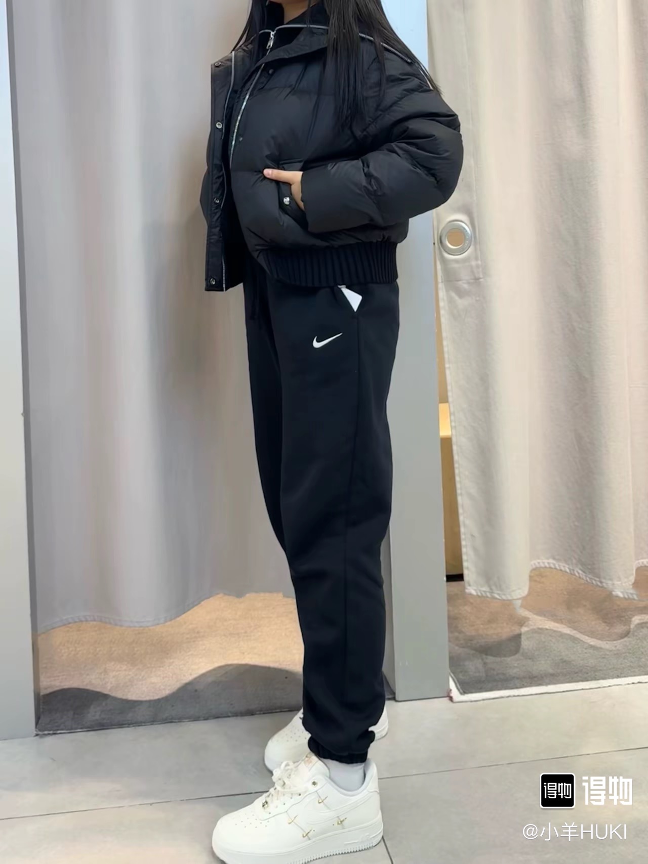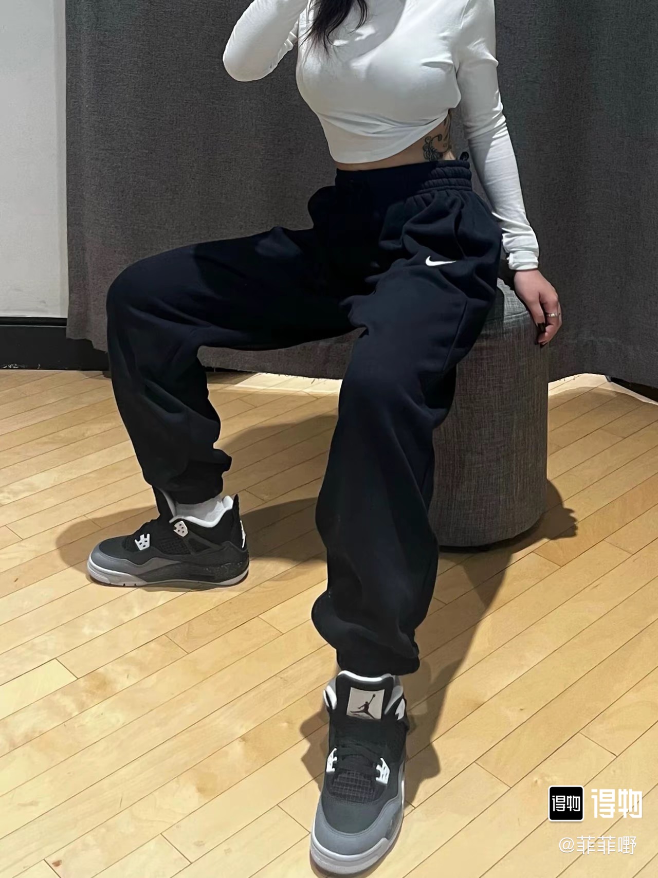 经典纯色打底:黑/灰/永不过时标志性迷你Swoosh:左腿低调点缀不张扬的精致,细节处彰显品!蕾姐灰色M!黑色S参考⚠️