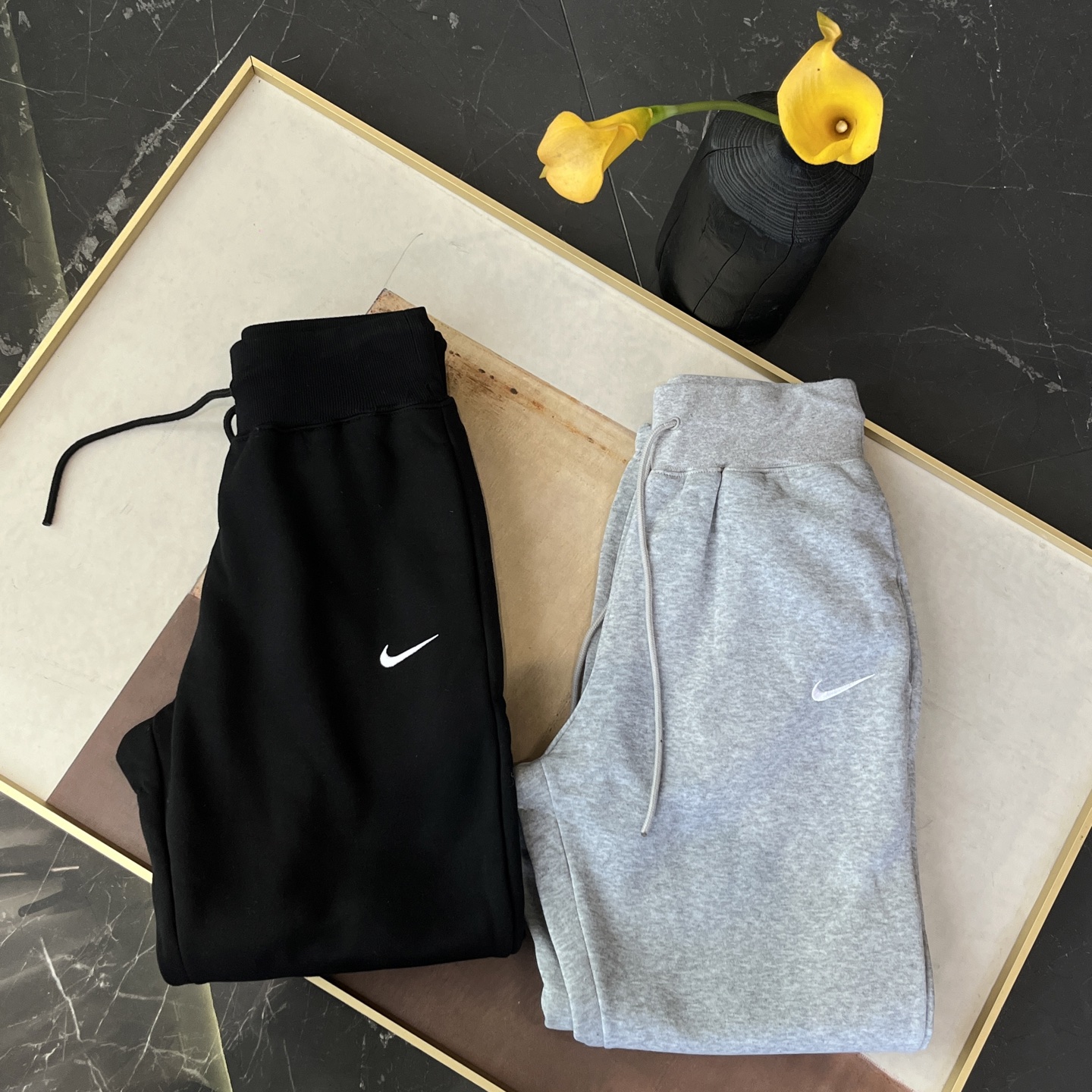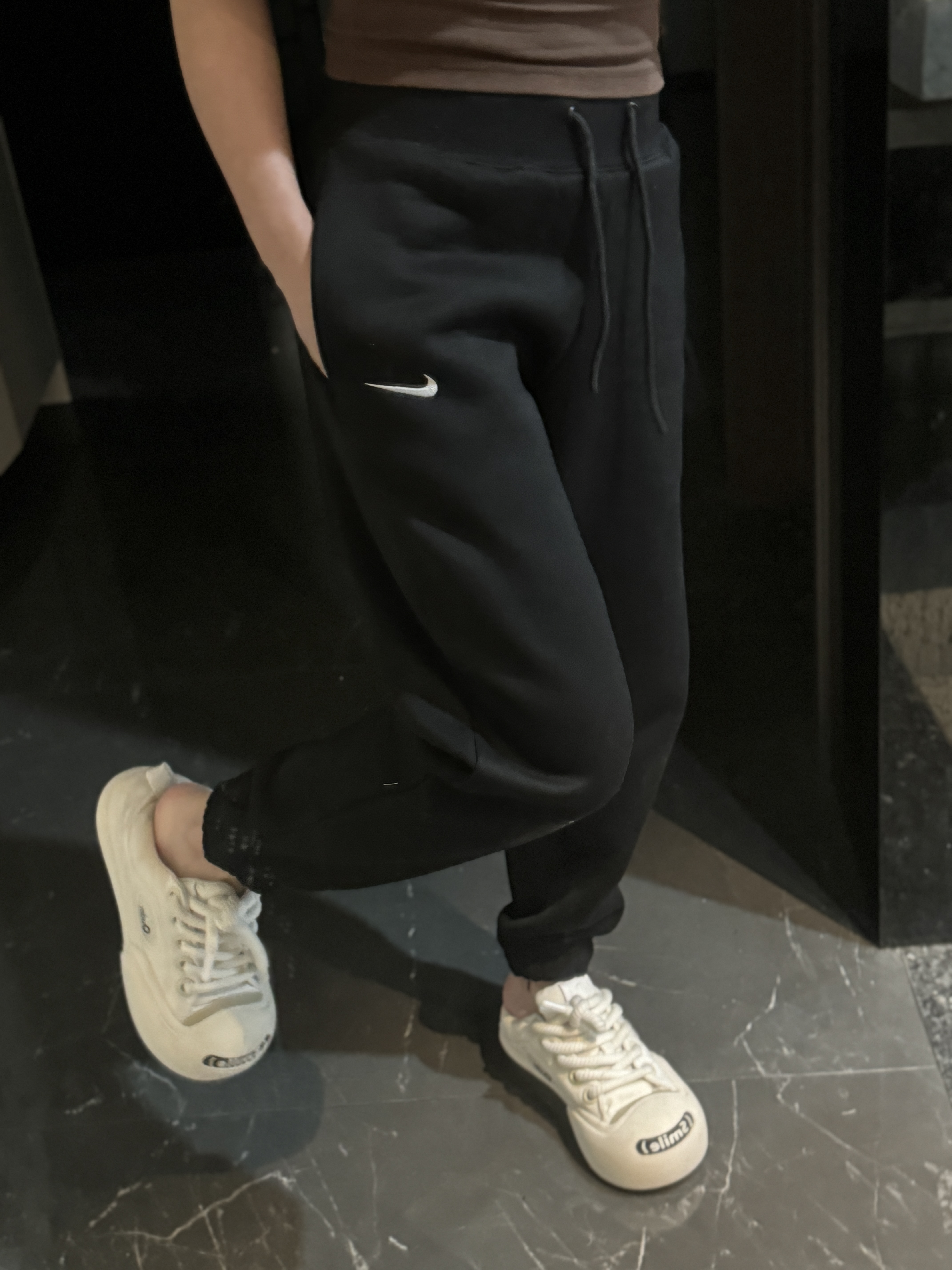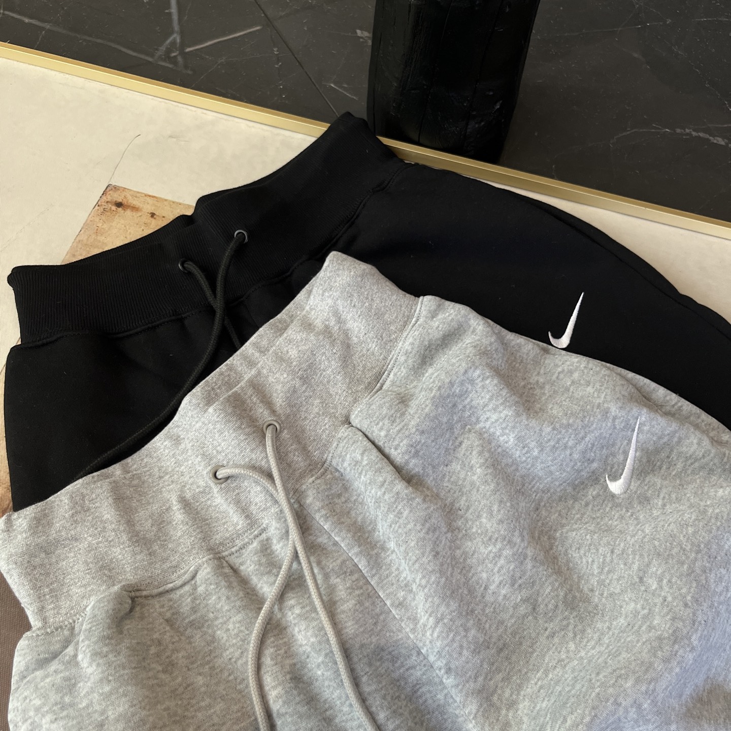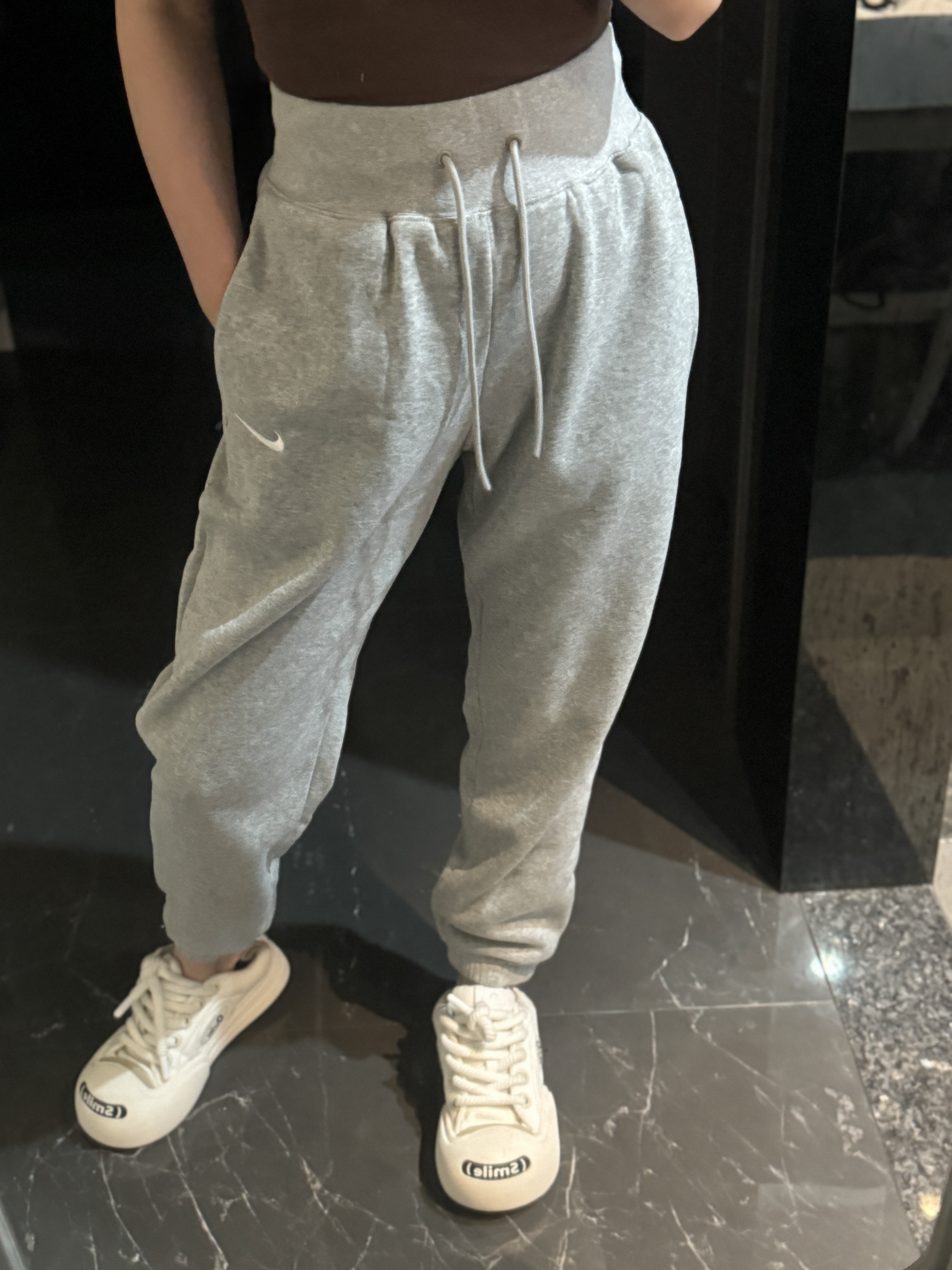 经典纯色打底:黑/灰/永不过时标志性迷你Swoosh:左腿低调点缀不张扬的精致,细节处彰显品!蕾姐灰色M!黑色S参考⚠️