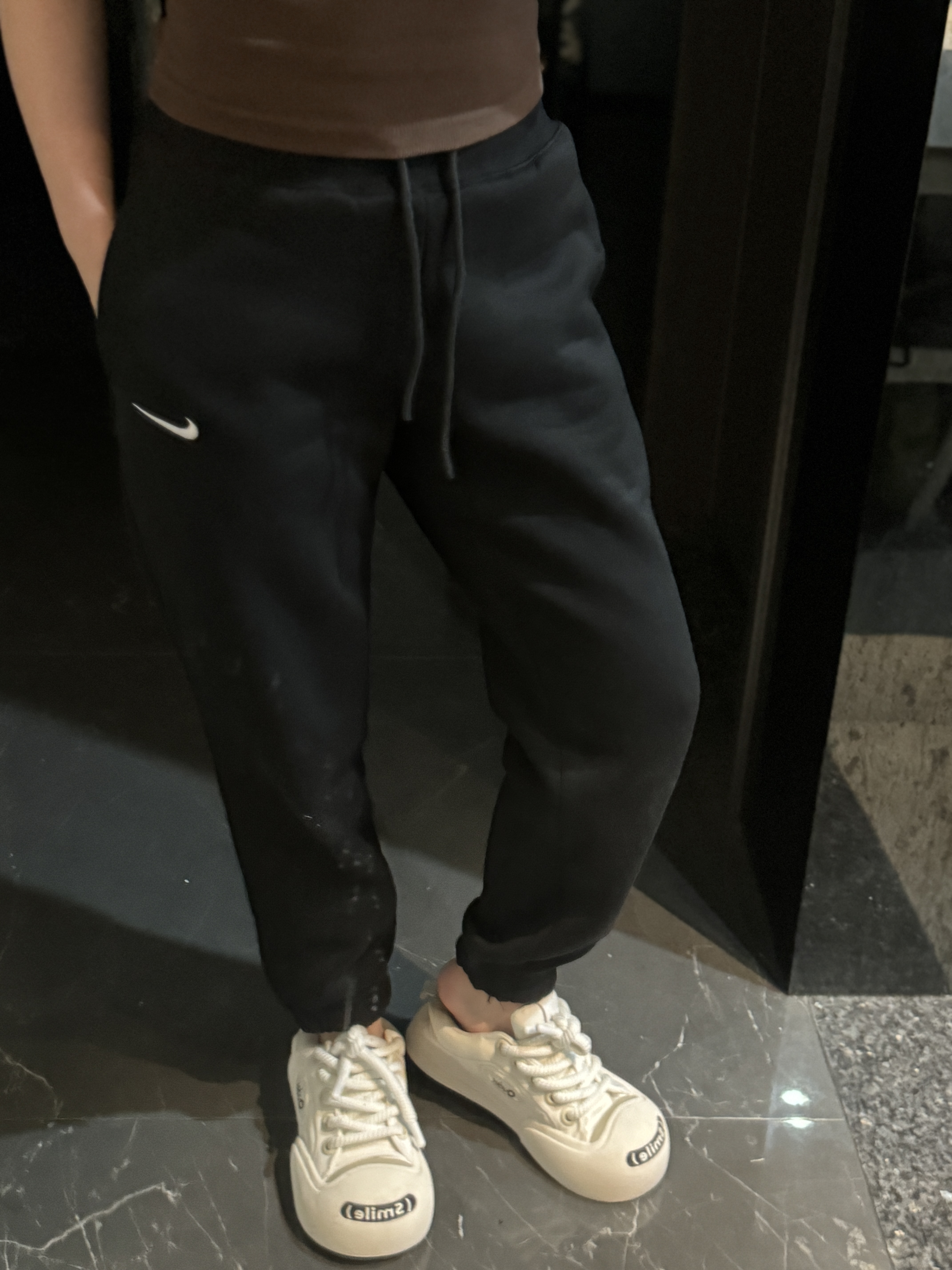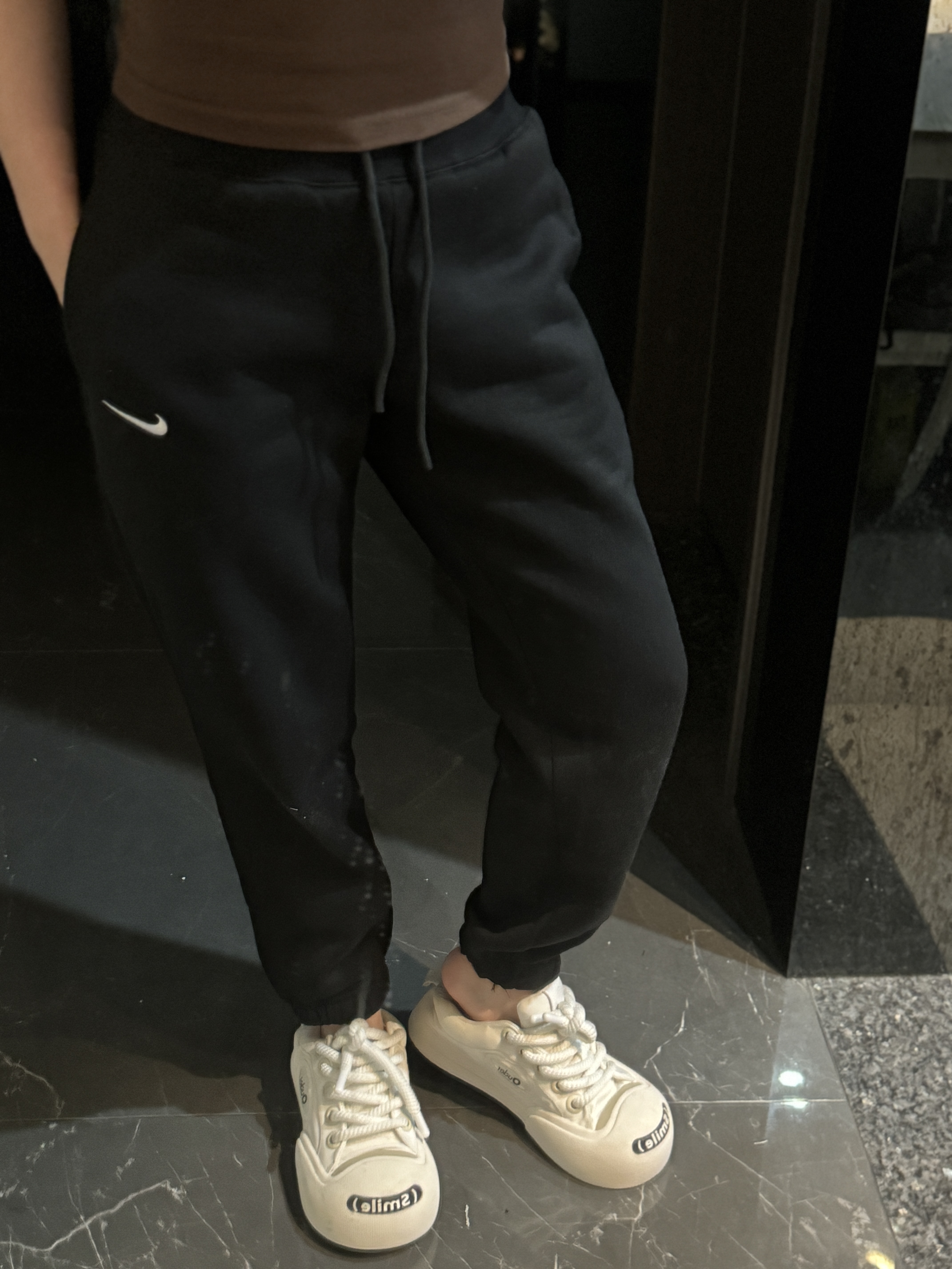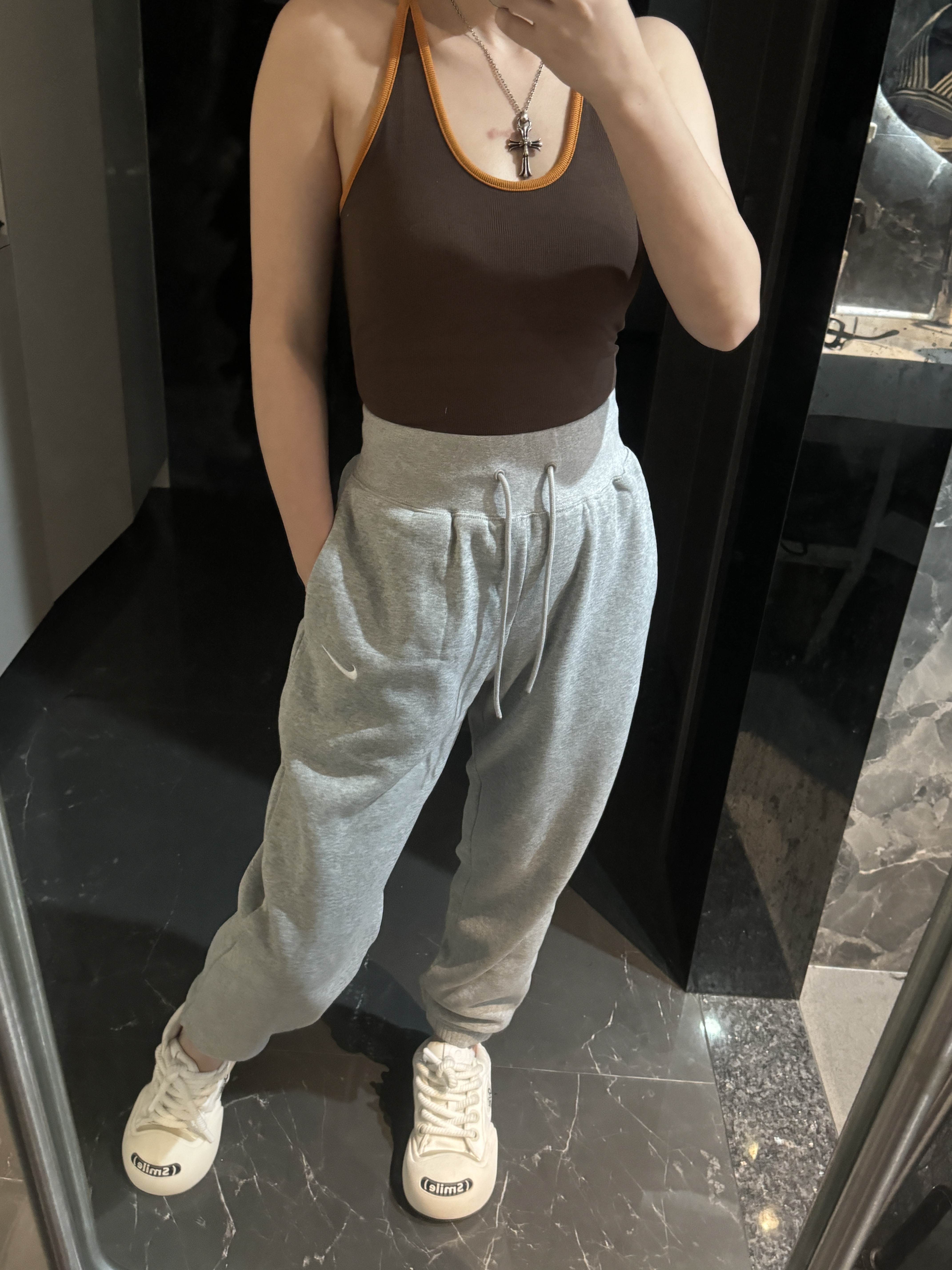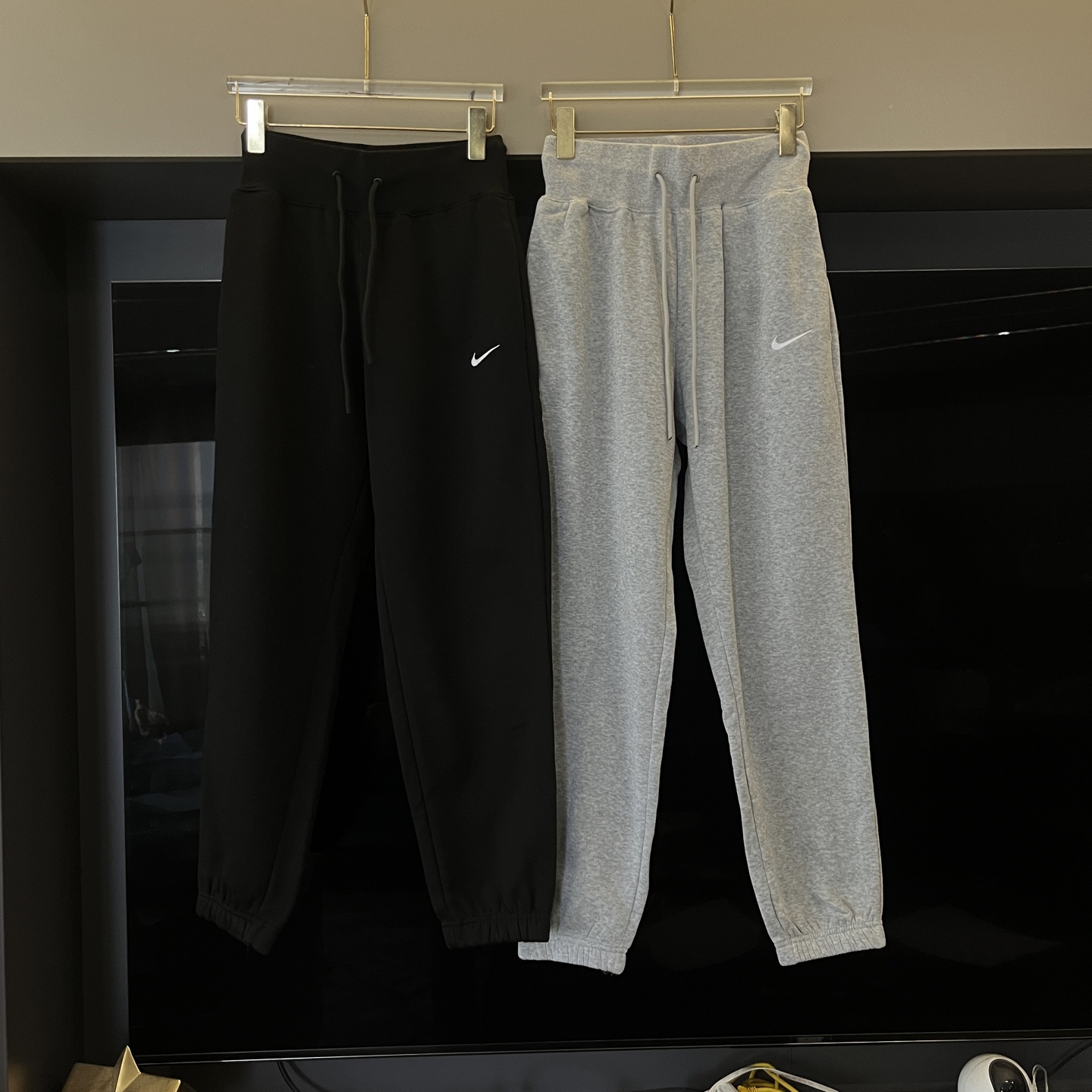 经典纯色打底:黑/灰/永不过时标志性迷你Swoosh:左腿低调点缀不张扬的精致,细节处彰显品!蕾姐灰色M!黑色S参考⚠️