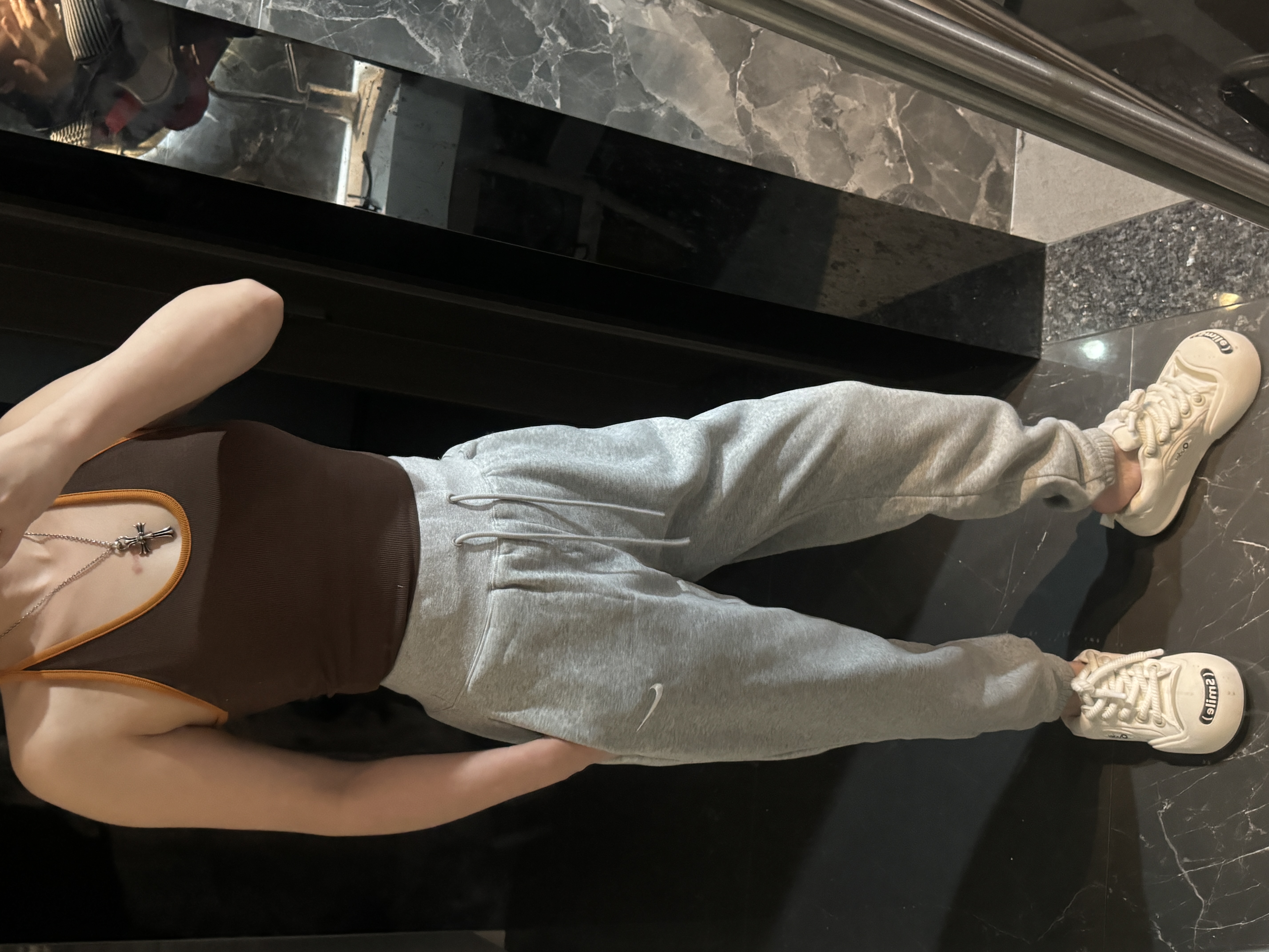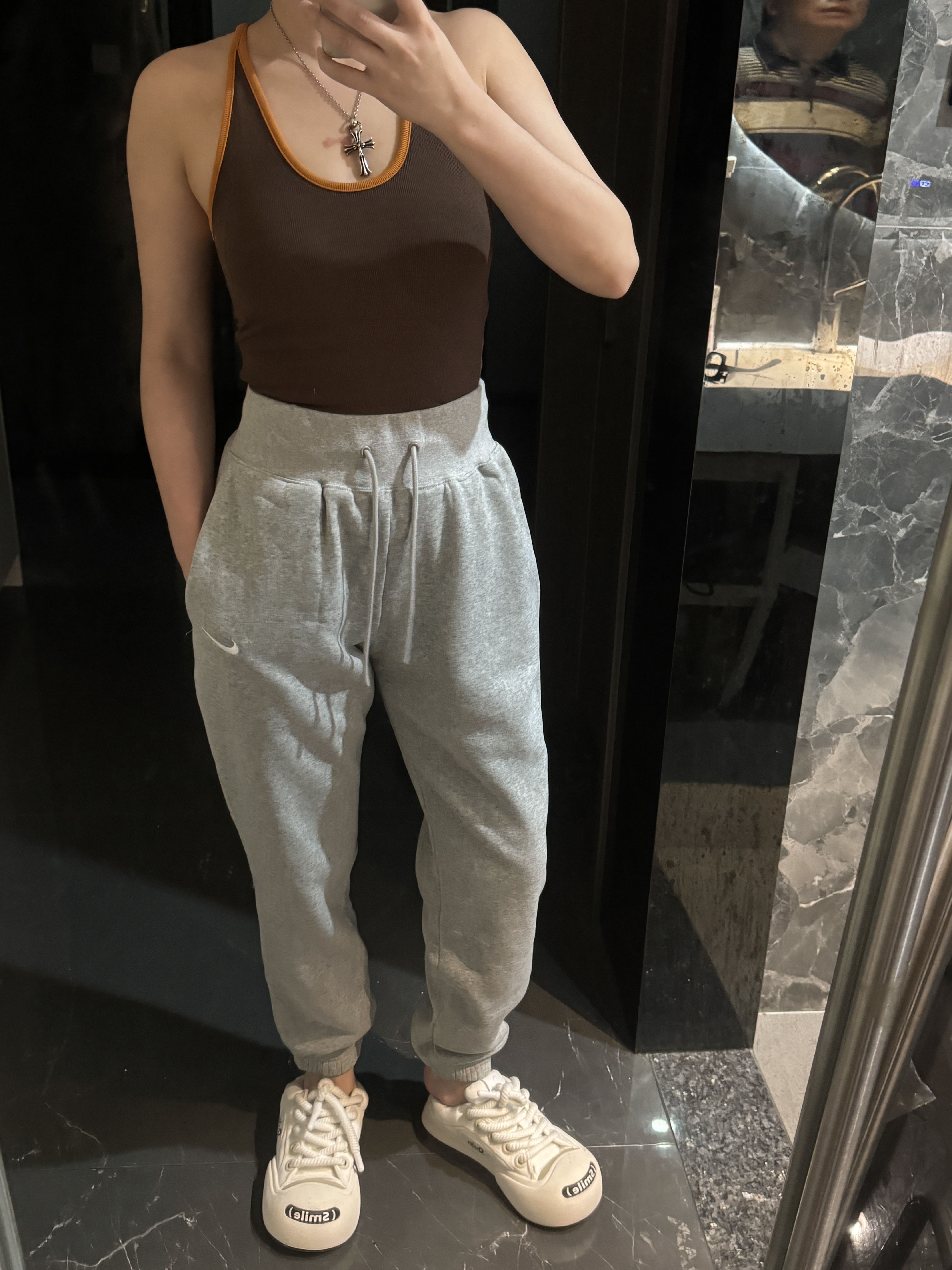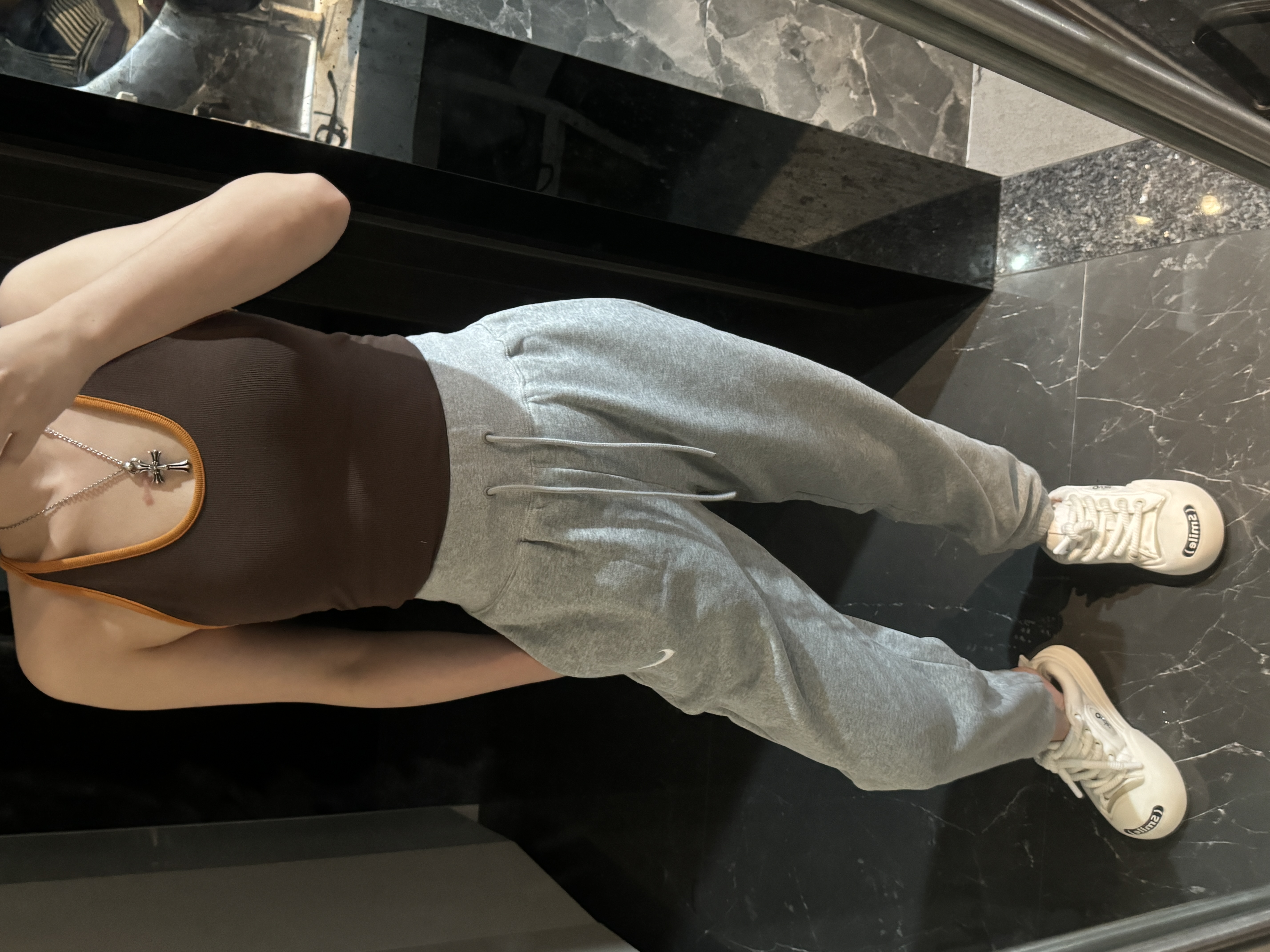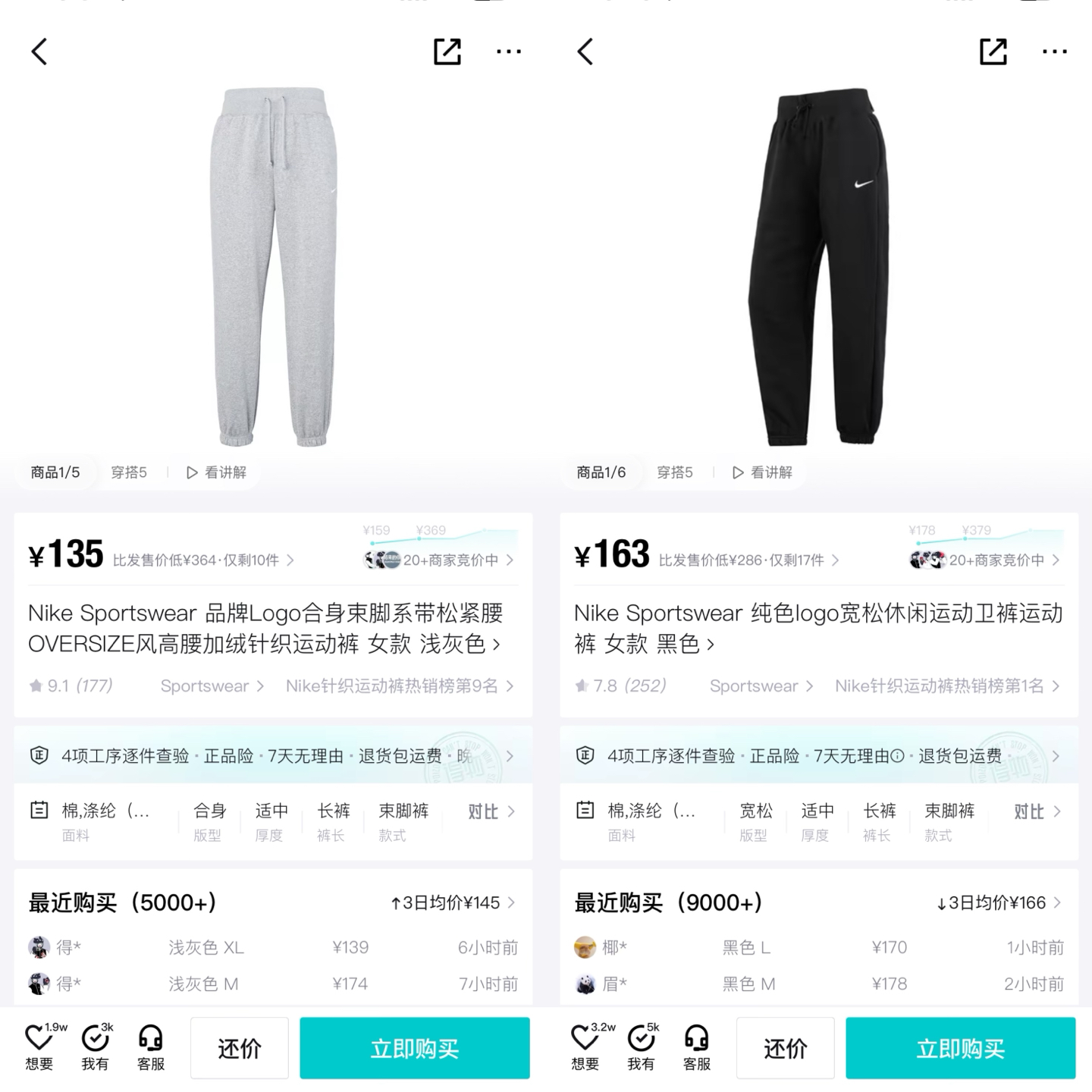 经典纯色打底:黑/灰/永不过时标志性迷你Swoosh:左腿低调点缀不张扬的精致,细节处彰显品!蕾姐灰色M!黑色S参考⚠️
