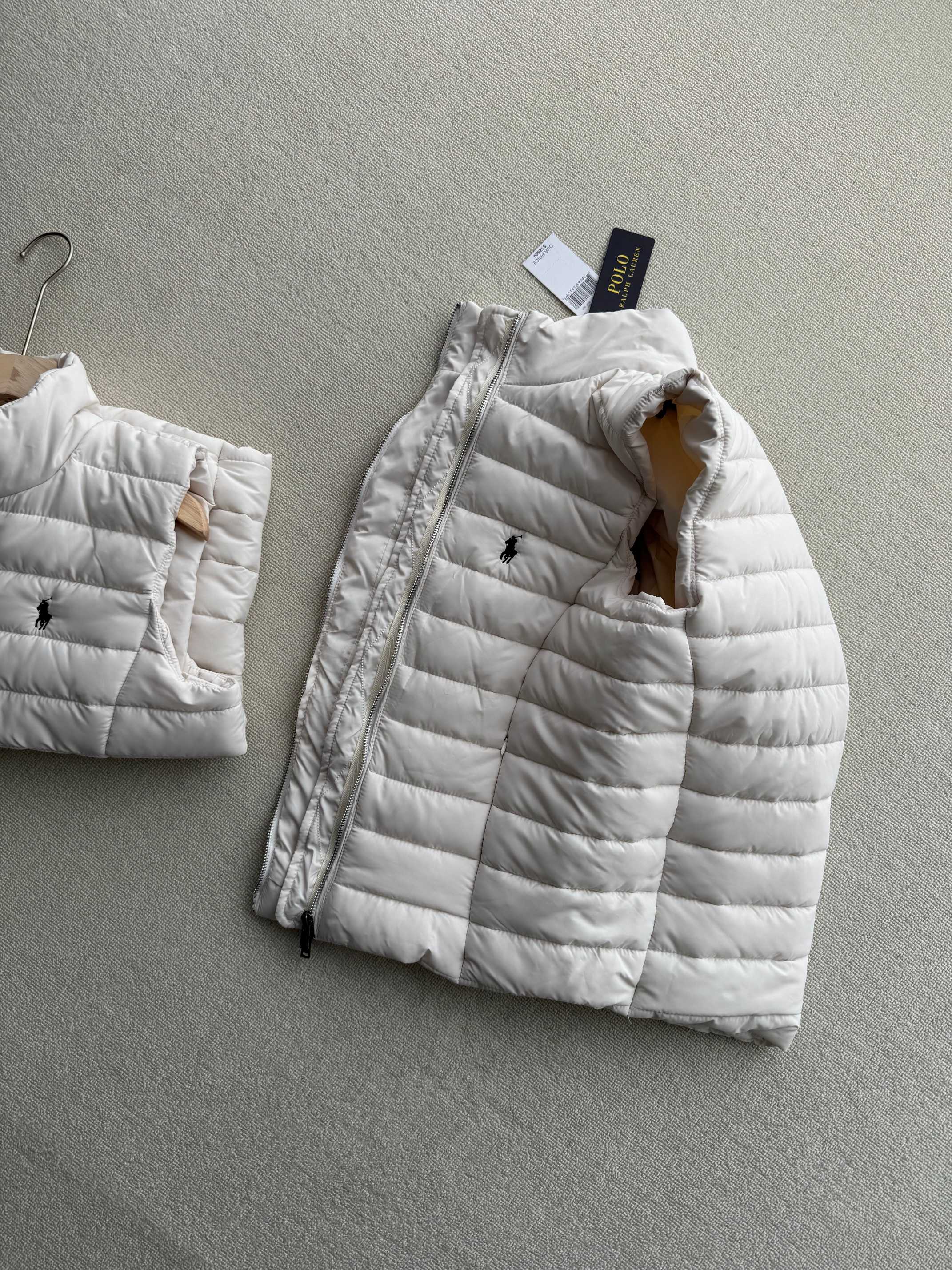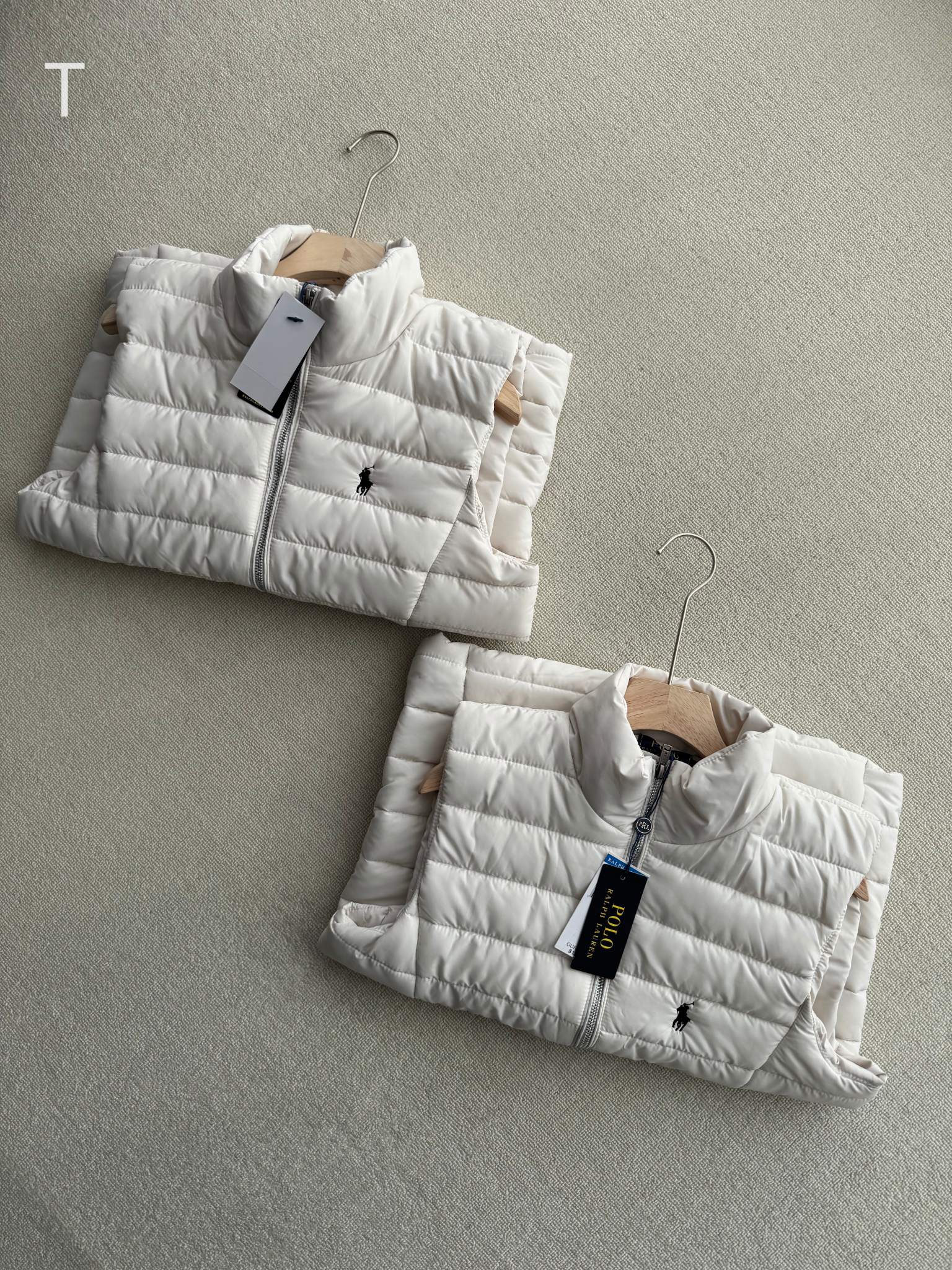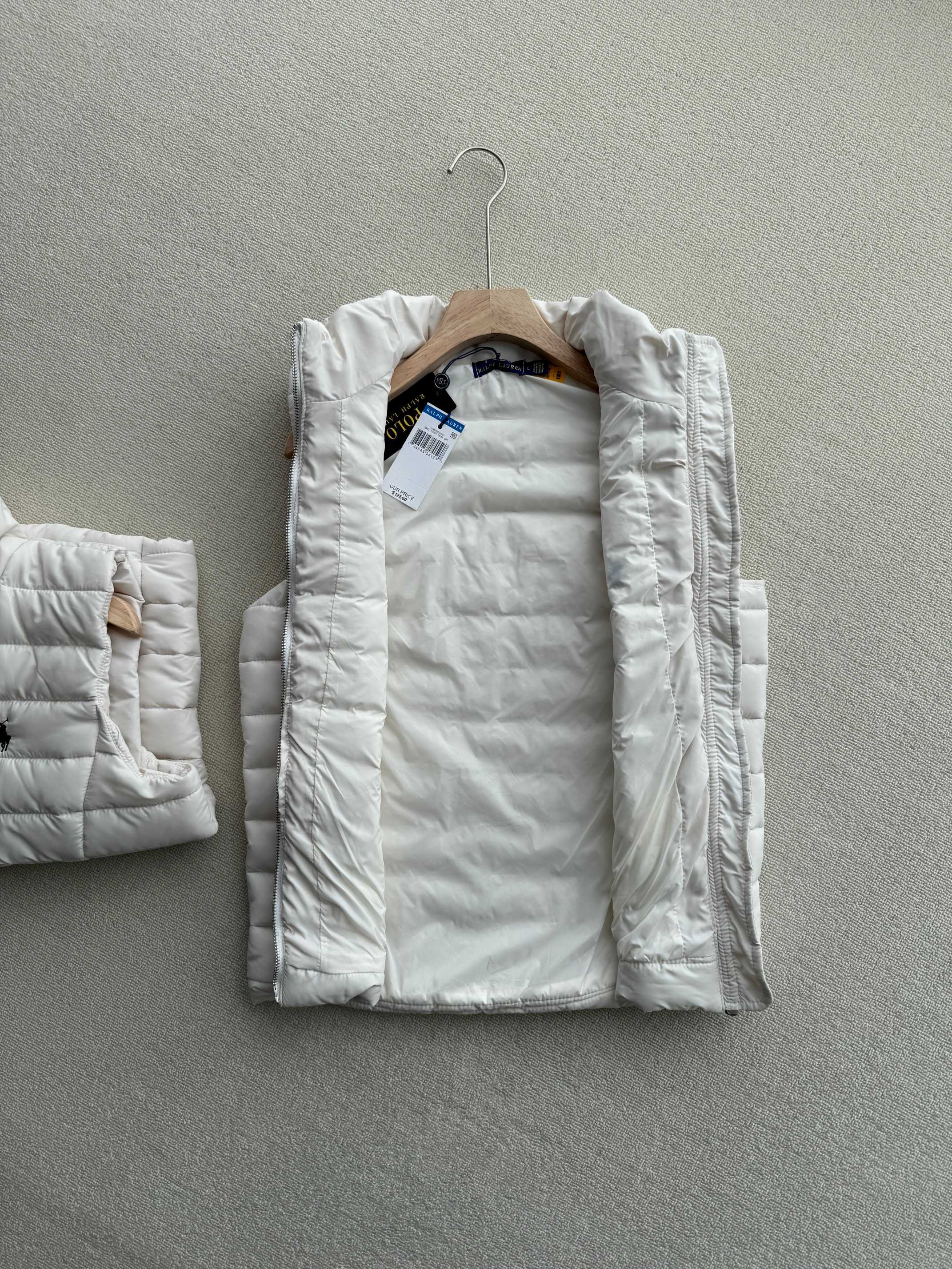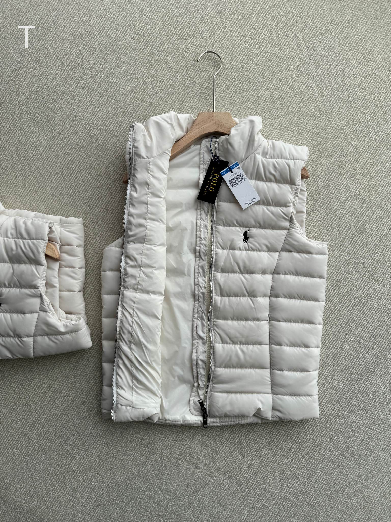 拉夫羽绒棉马甲女款RL/拉夫小马刺绣排骨羽绒马甲米白色马甲轻便又保暖,立领设计很显精神,轻便不厚重,拉链全部带有logo,内里有口袋,胸前也是真口袋,所有的口袋都带有拉链,胸前红色小马采用进口田岛绣花机,清晰立体又饱满小马标精致度拉满~内搭同色系绞花毛衣,复古纹路自带高级感,叠穿在一起层次感绝了,在飞机上穿既舒服又出片!全套1:1定制辅料➕定制三标➕Yuan版吊牌➕logo包装袋 面料采用原版定制防水防静电布料,内里采用尼龙双层封禁设计,这种经典美式风真的穿不腻,日常通勤、短途旅行都能搭,属于是秋冬衣柜里的王牌组合了!