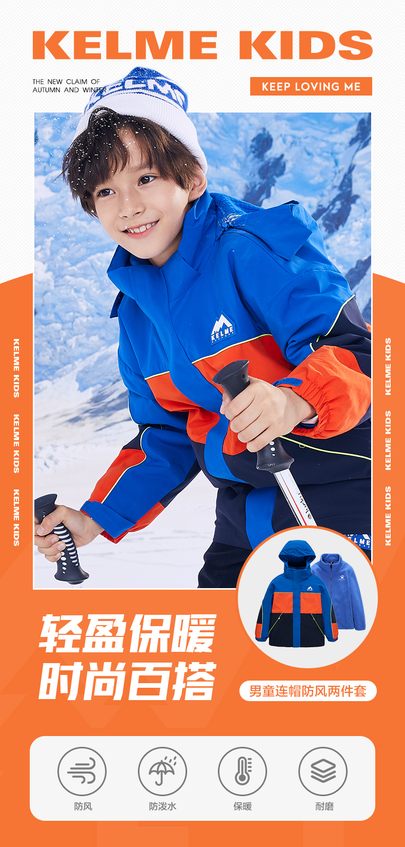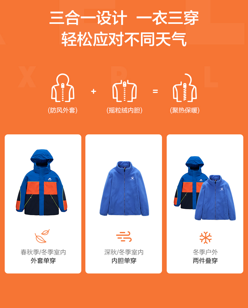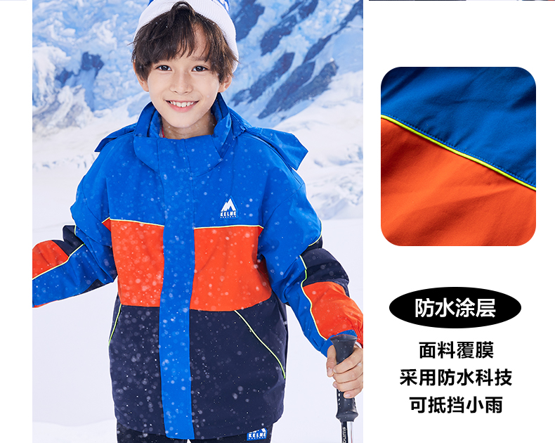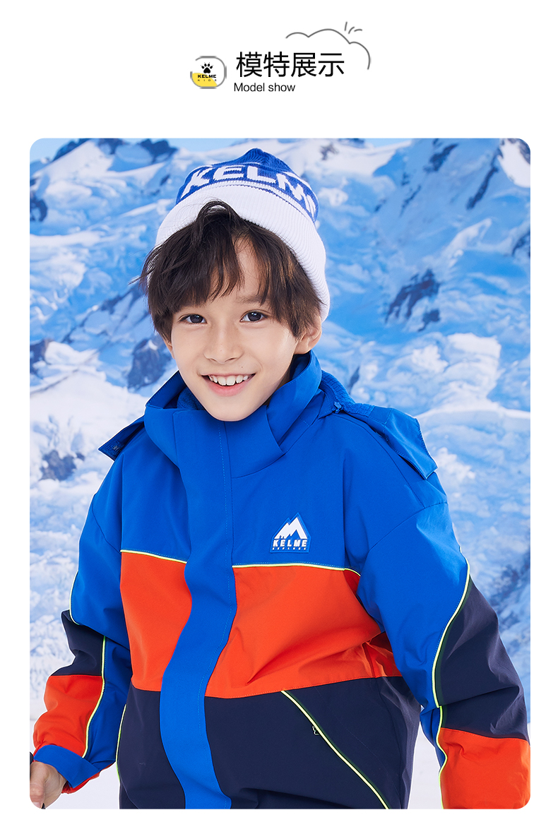 卡尔美 男童运动外套冬装三合一可拆卸儿童冲锋外套两件套