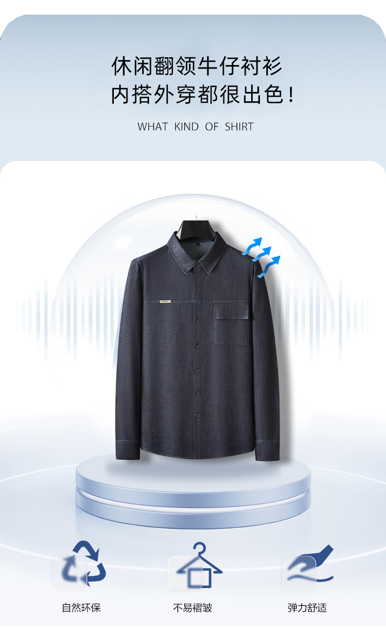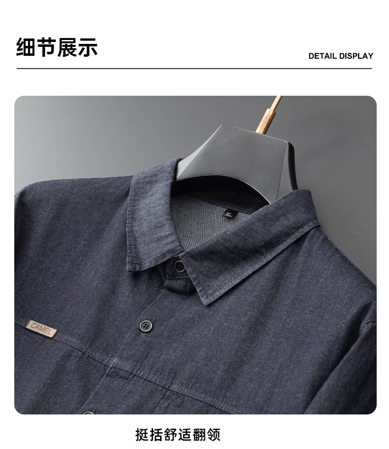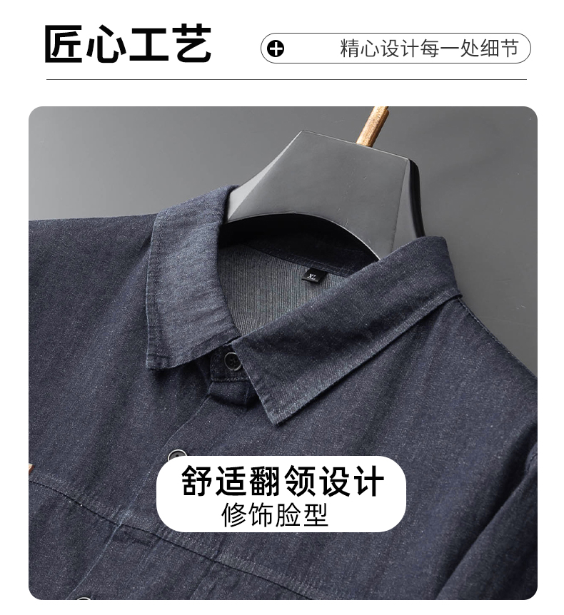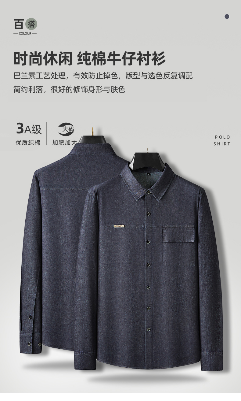 【100%棉】【新款DDA】大依优型大码牛仔长袖衬衫翻领加肥加大肥佬休闲商务宽松透气上衣