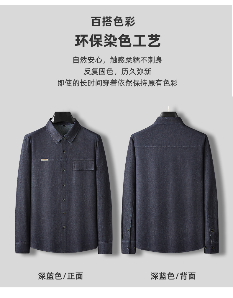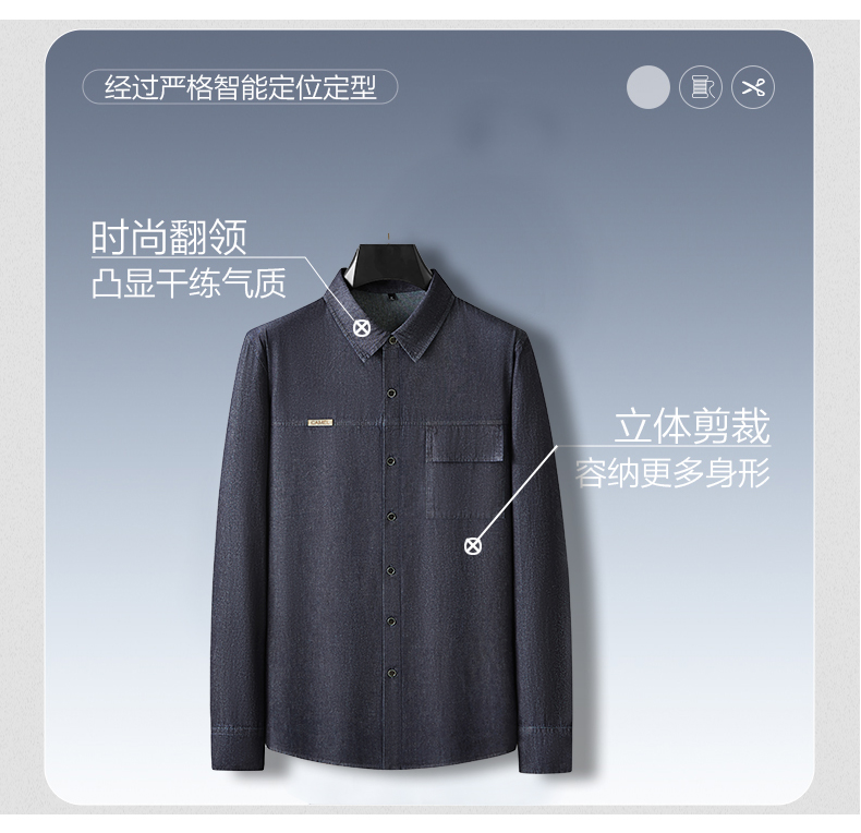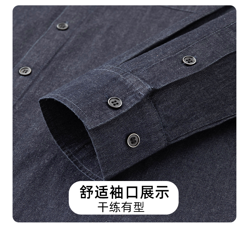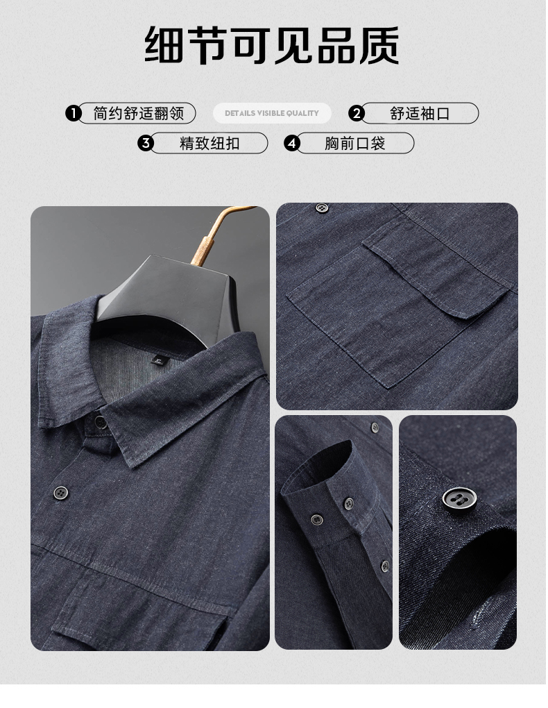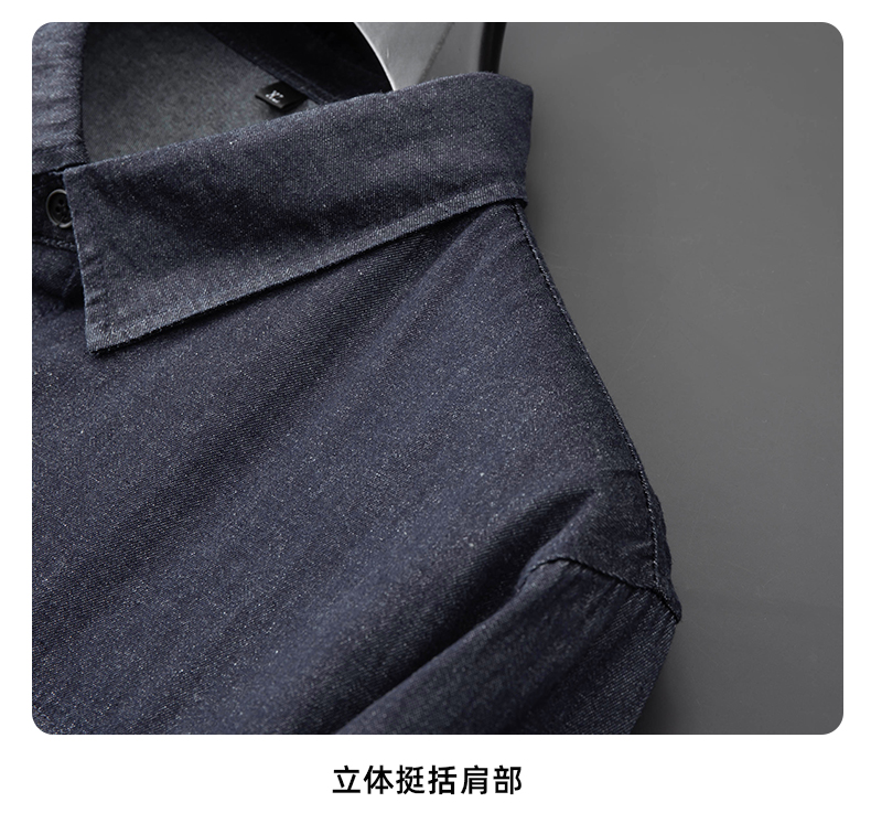 【100%棉】【新款DDA】大依优型大码牛仔长袖衬衫翻领加肥加大肥佬休闲商务宽松透气上衣