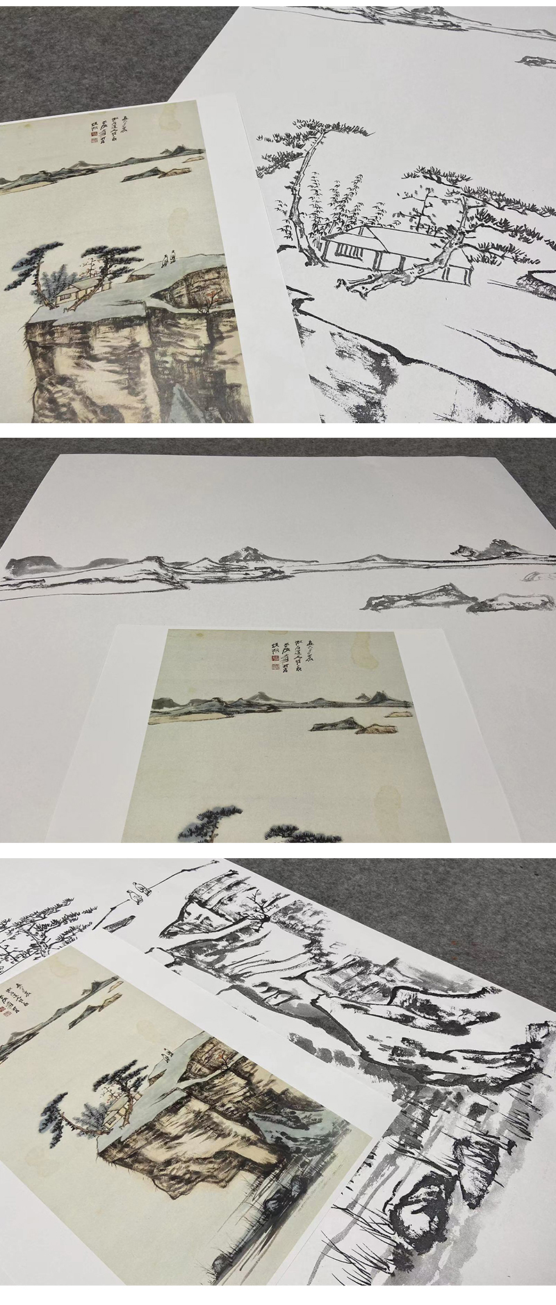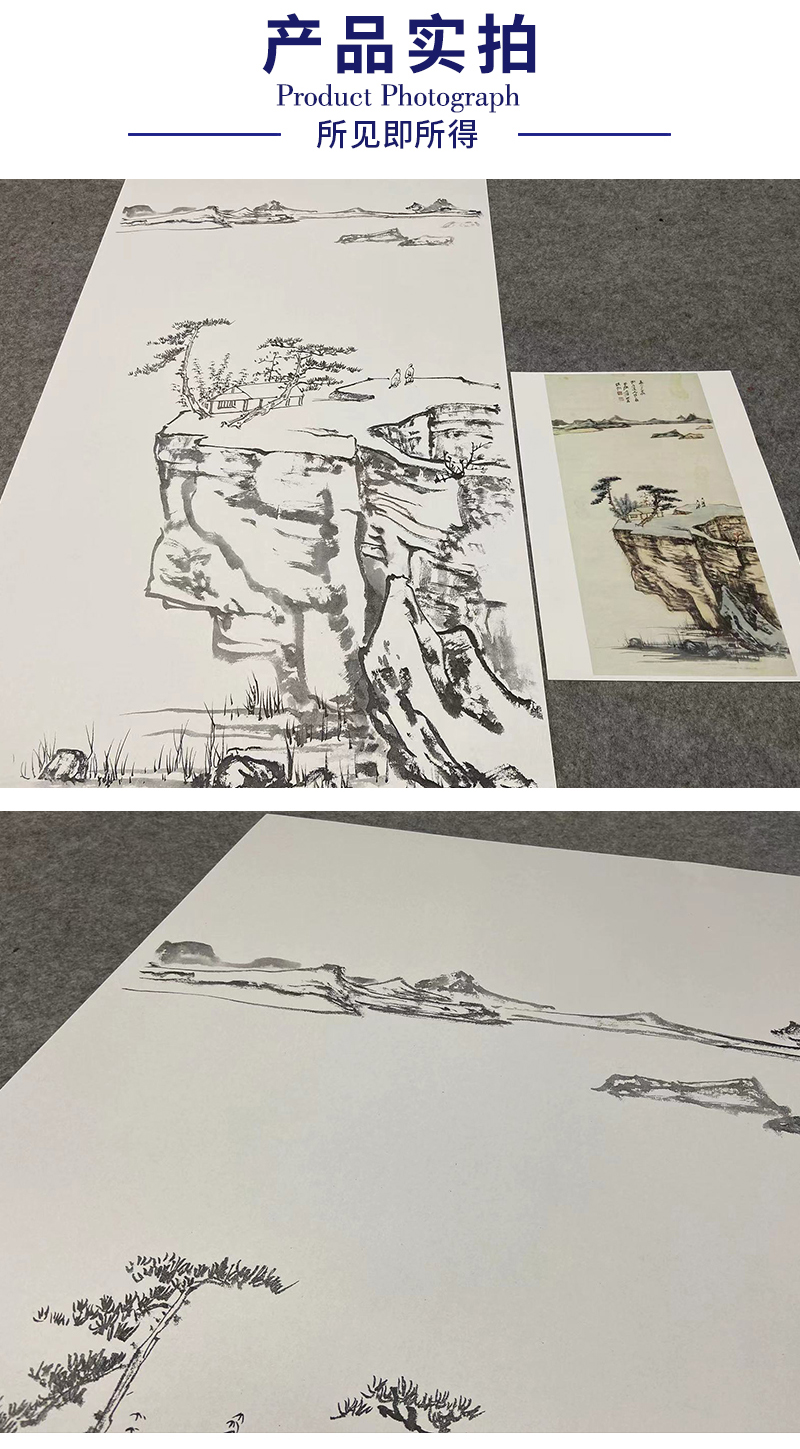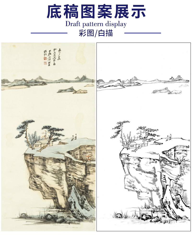 张大千竖幅工笔山水人物白描底稿临摹勾线高清打印稿QD14