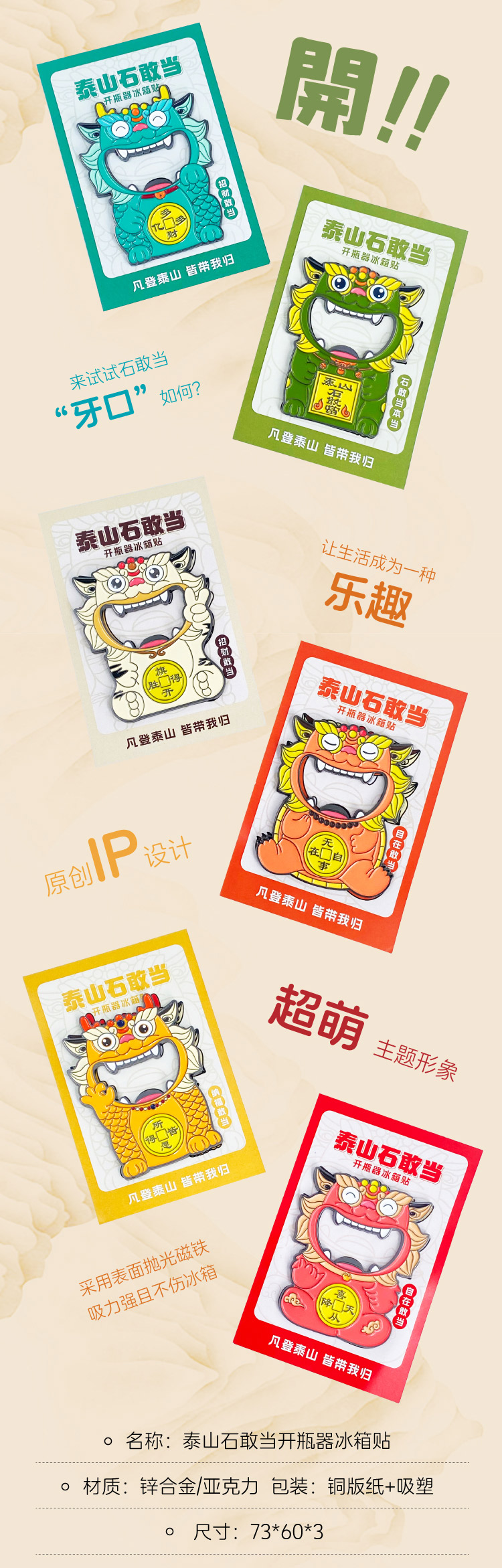 遇石记泰山文创石敢当冰箱贴开瓶器啤酒起子