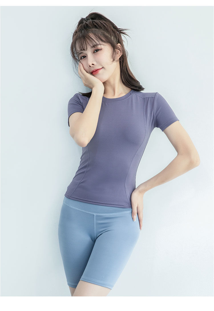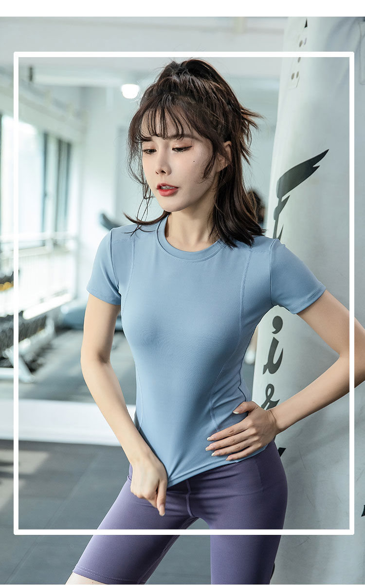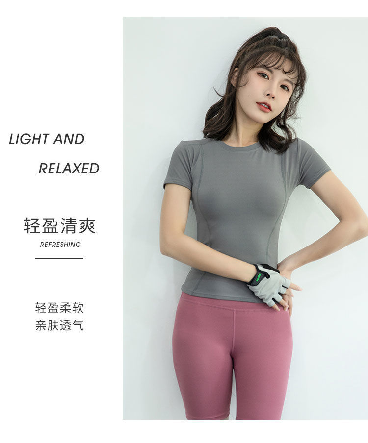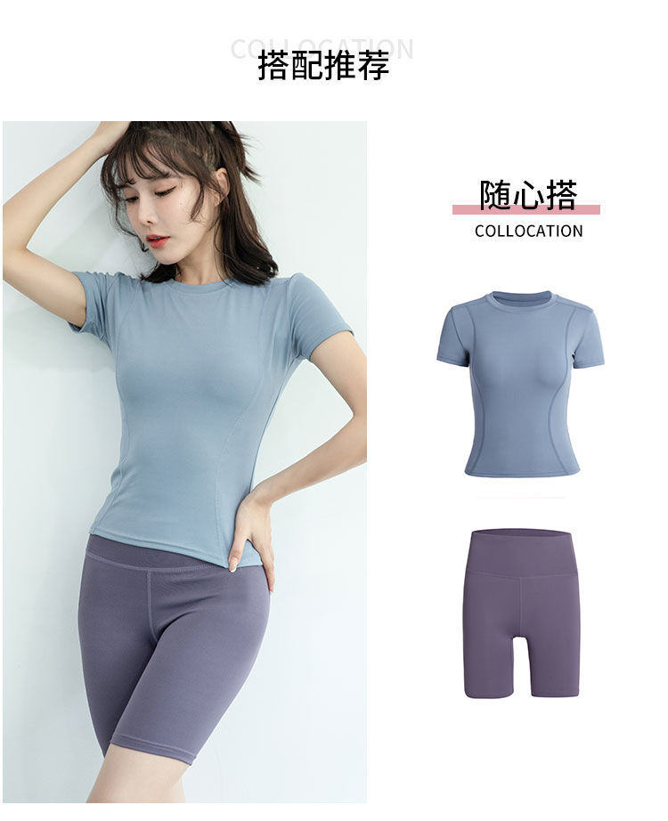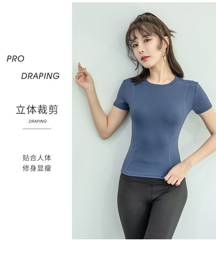 2022年春季新款专业瑜伽健身运动服女士圆领上衣显瘦型短袖