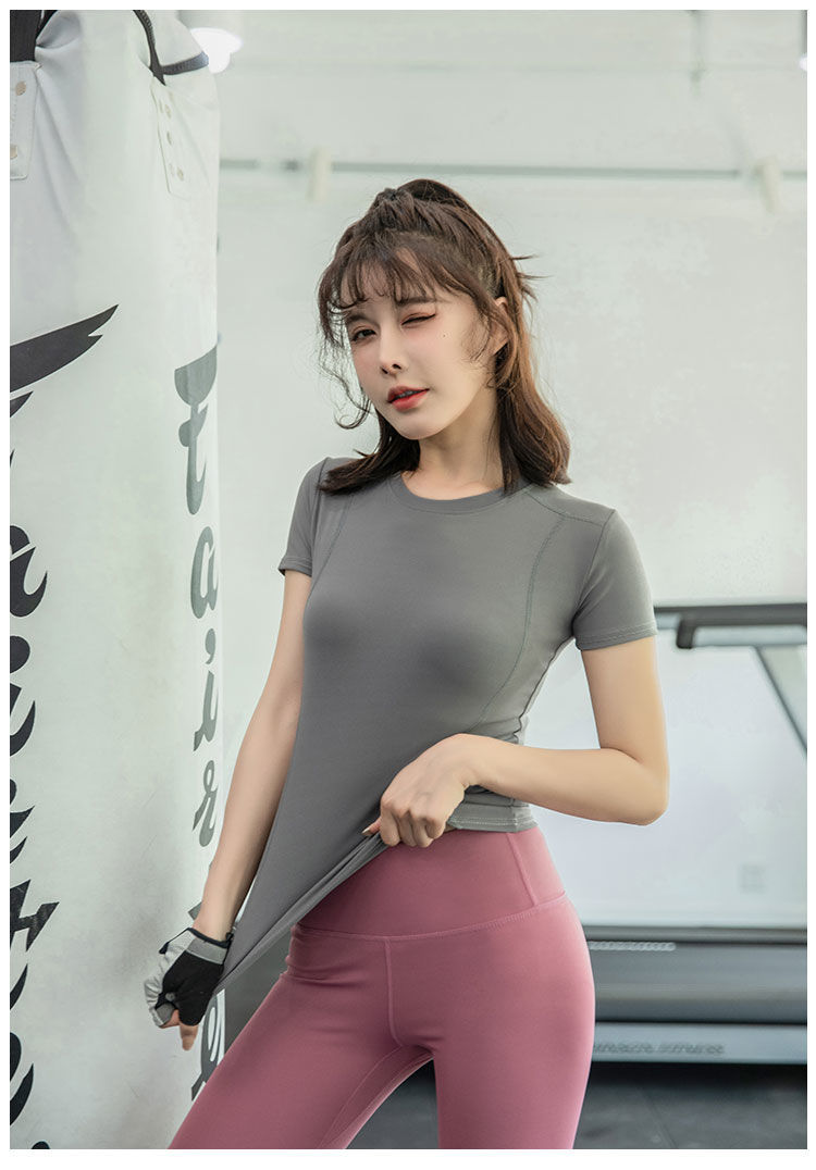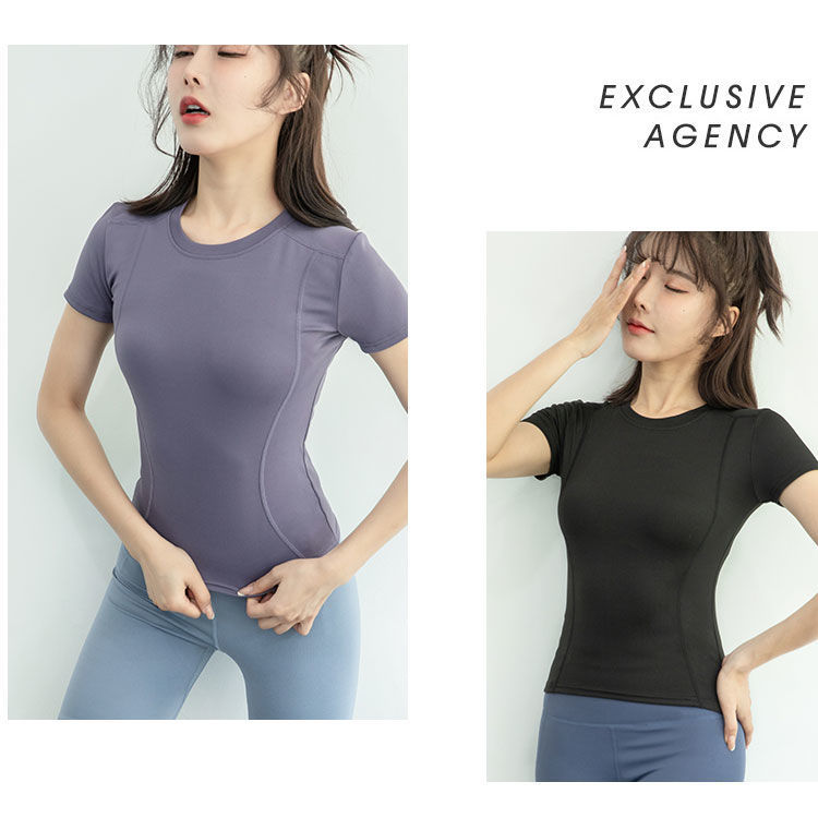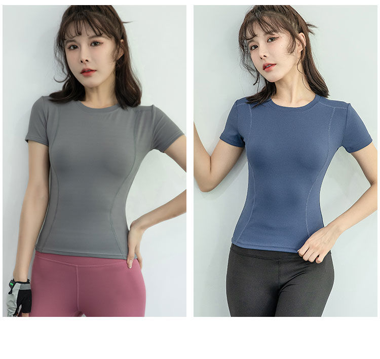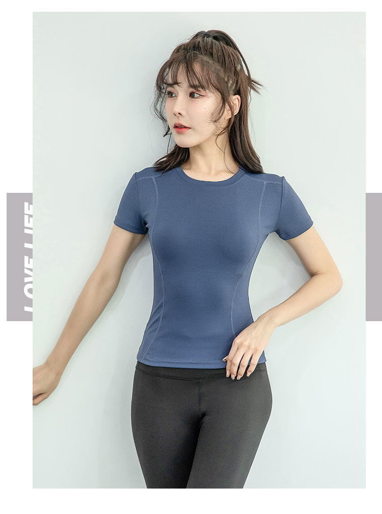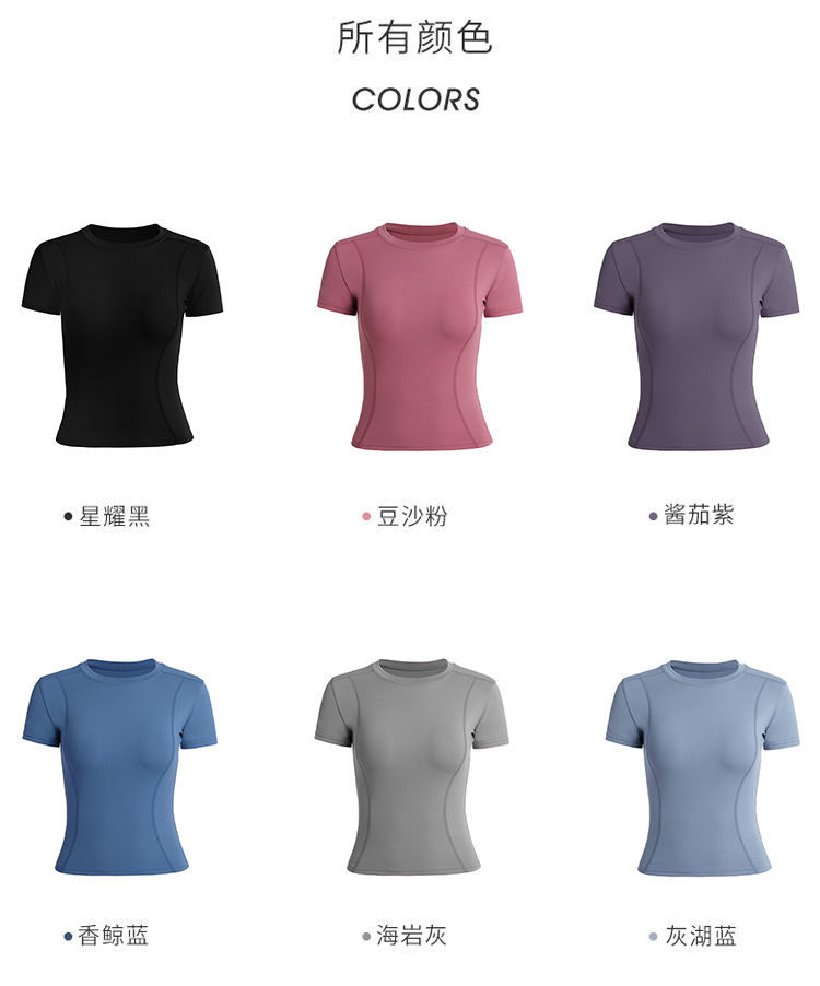 2022年春季新款专业瑜伽健身运动服女士圆领上衣显瘦型短袖