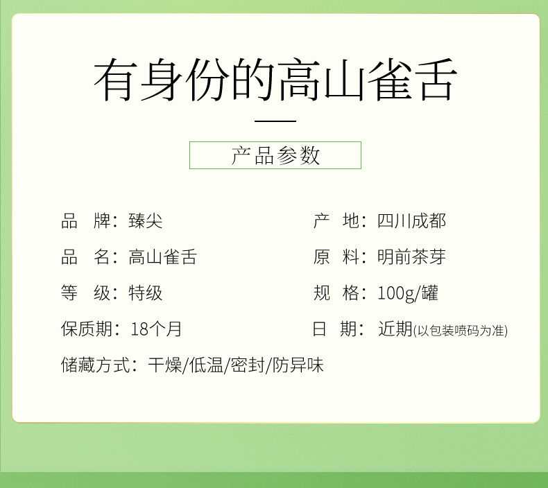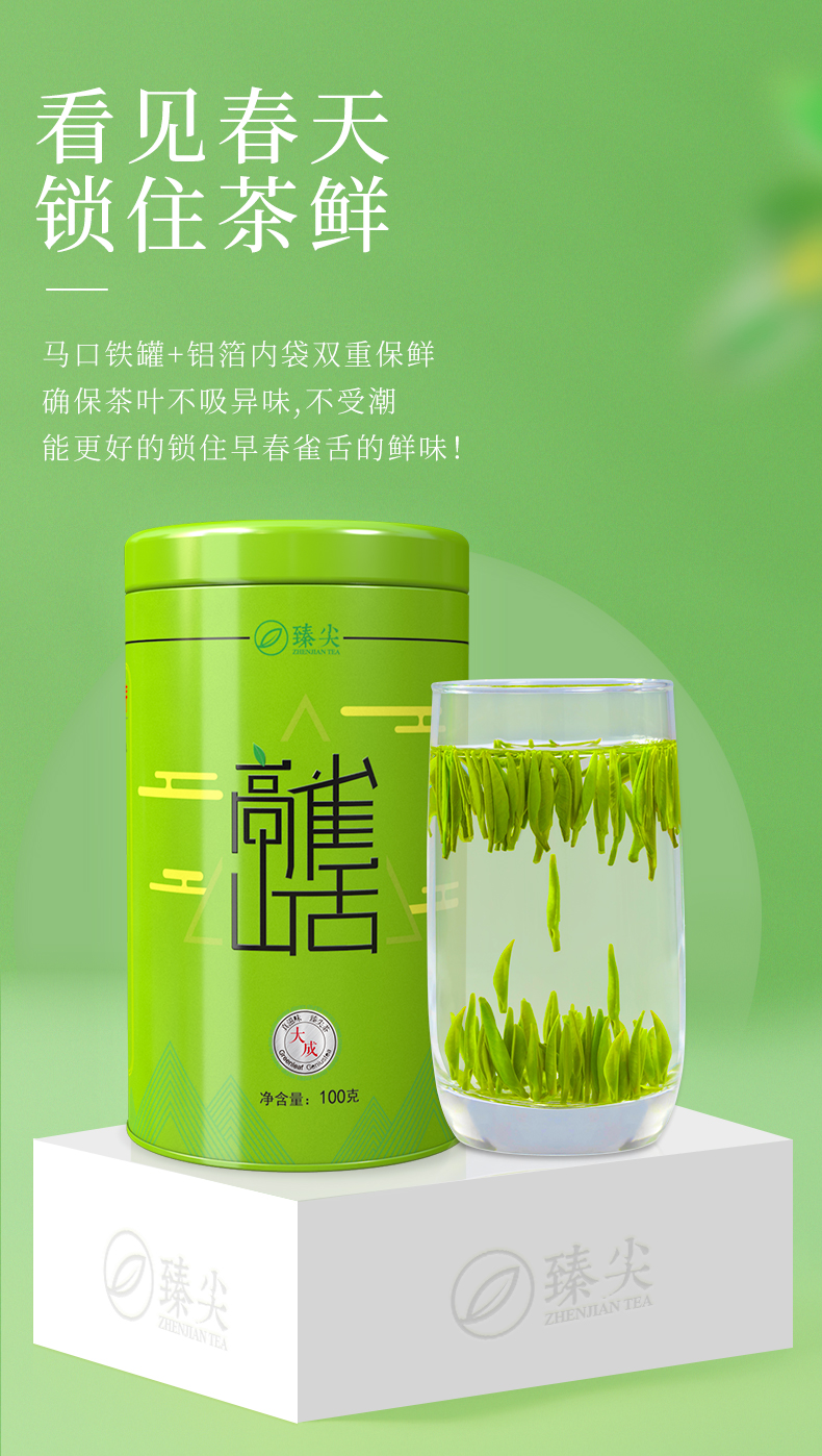【臻尖-雀舌大成】早春高山雀舌绿茶100g罐装