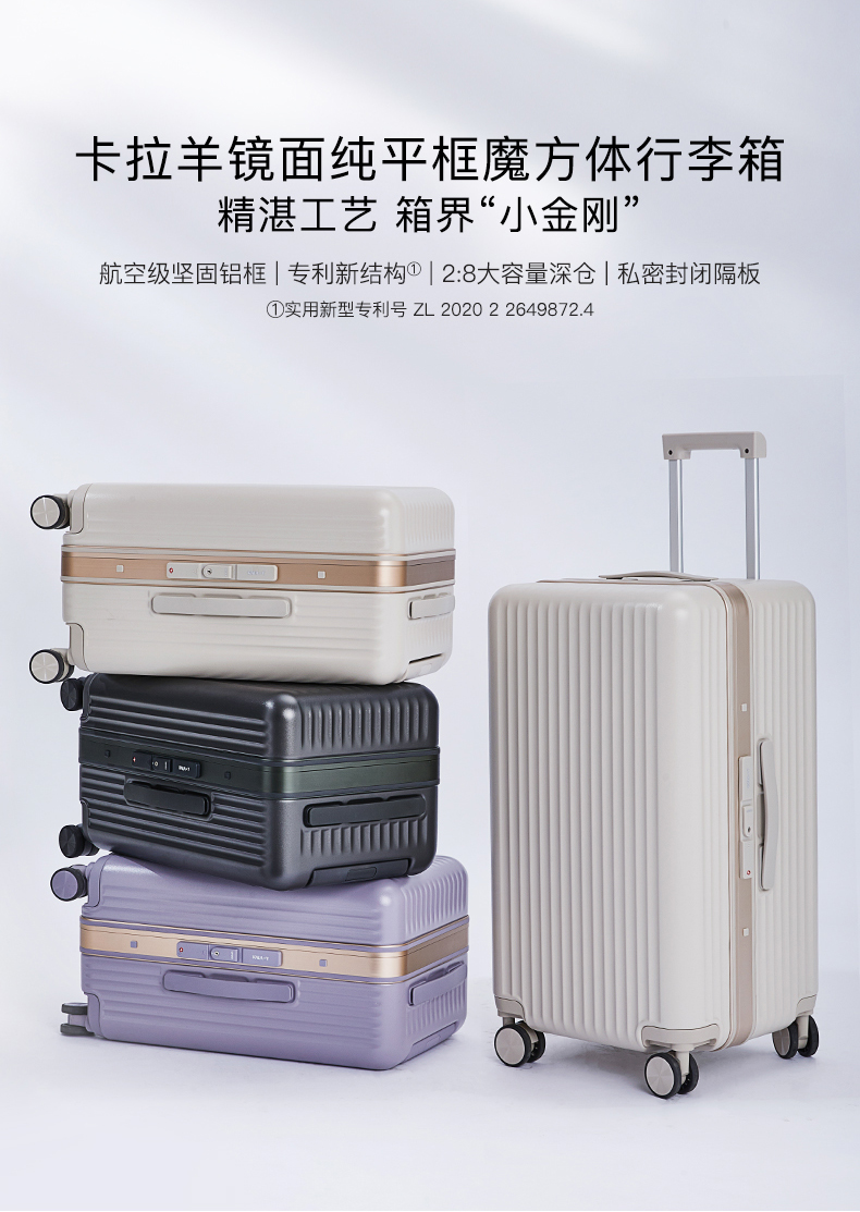 【榫卯镜面平框铝框箱】纯PC合金框二八开魔方体行李箱CX8424(TX)