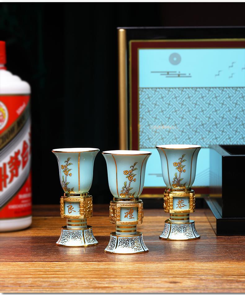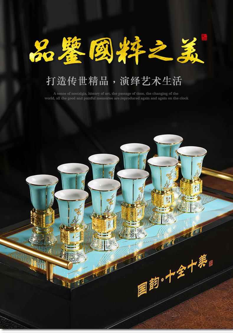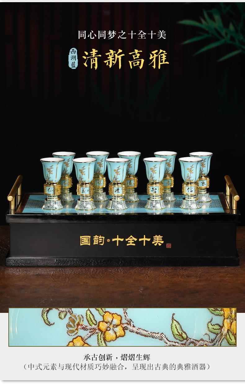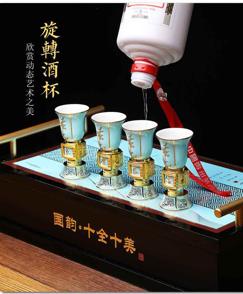 【彼达思】景泰蓝 十全十美套组旋转白酒杯礼盒装 西湖蓝轻奢高档国礼酒具