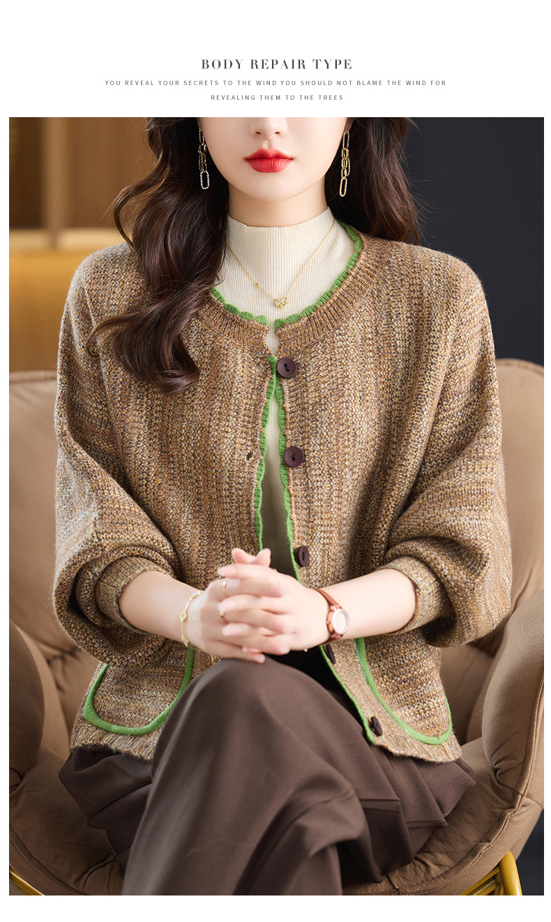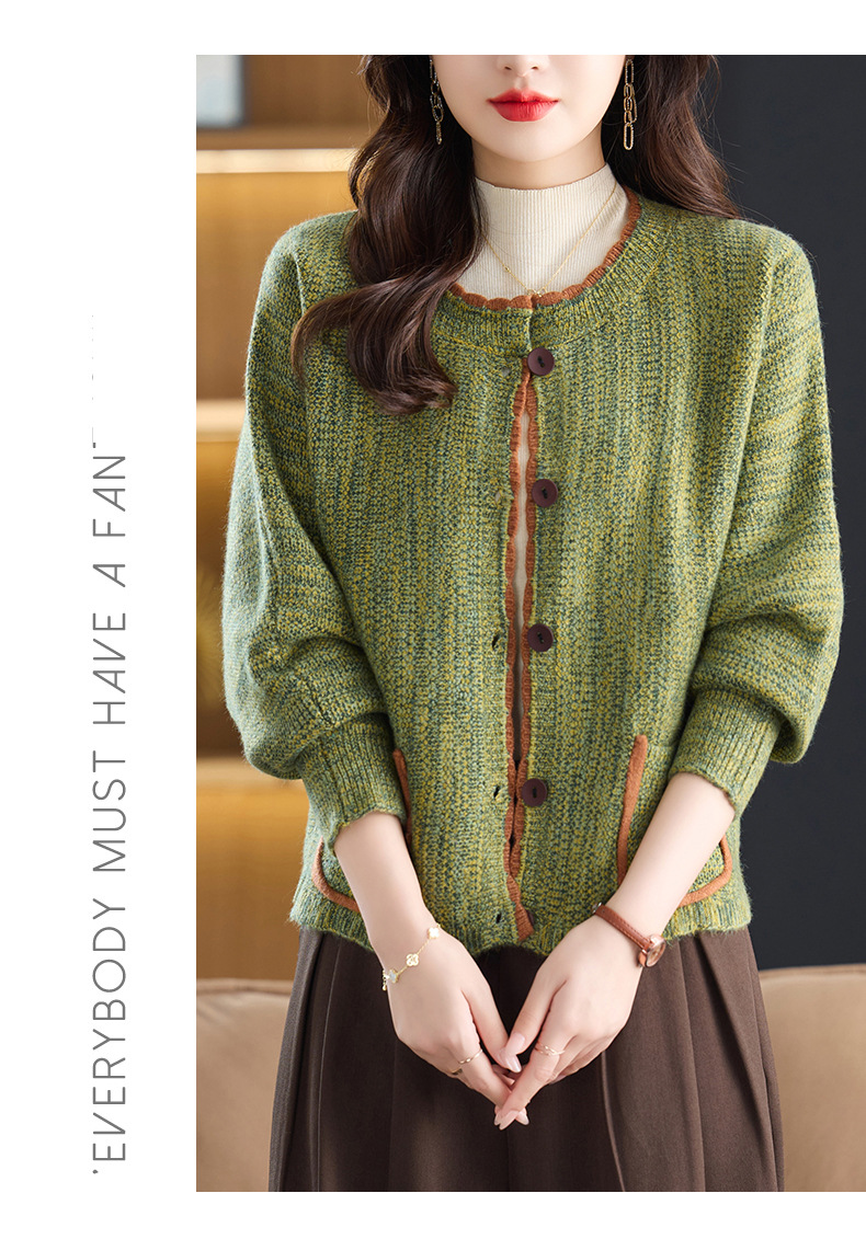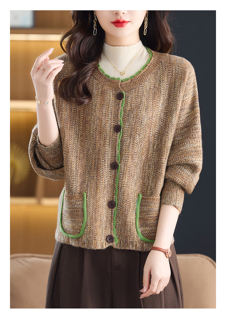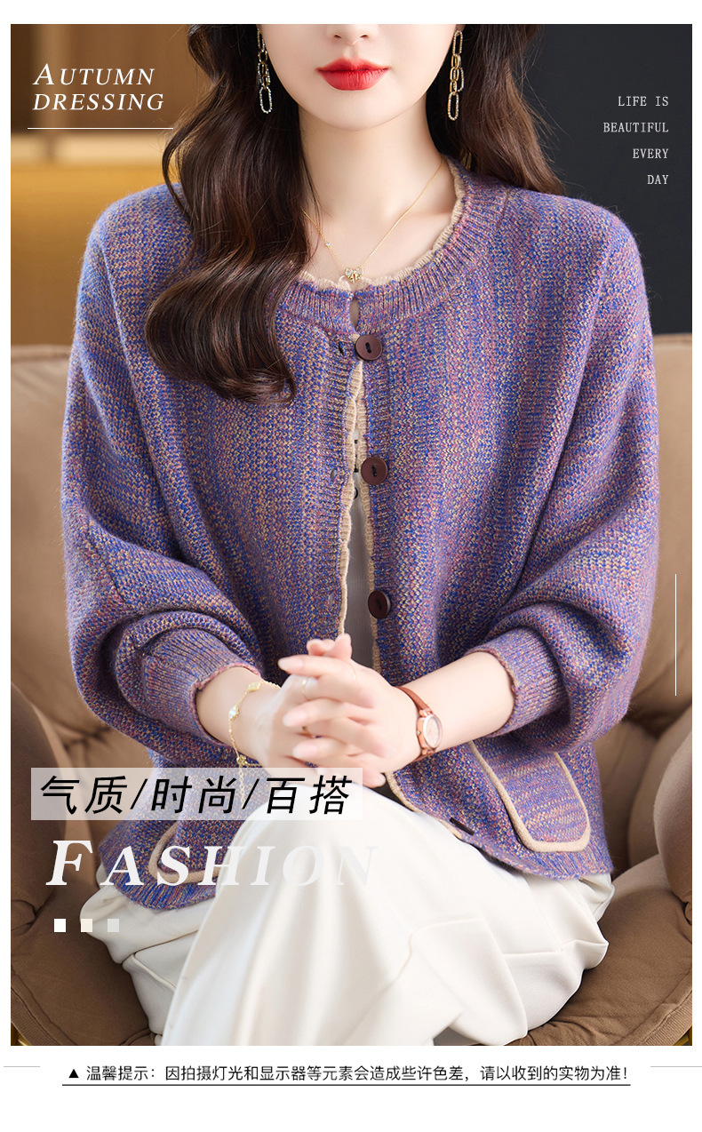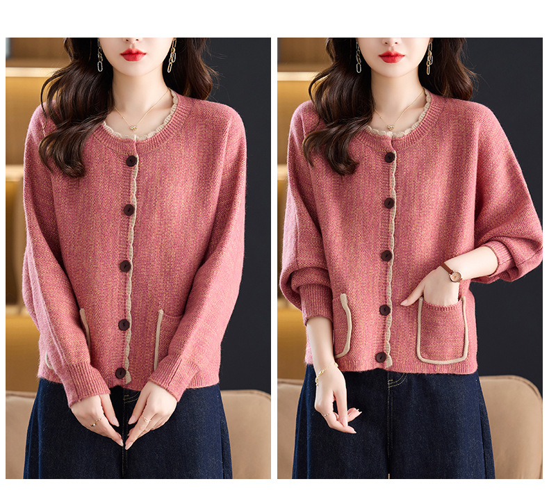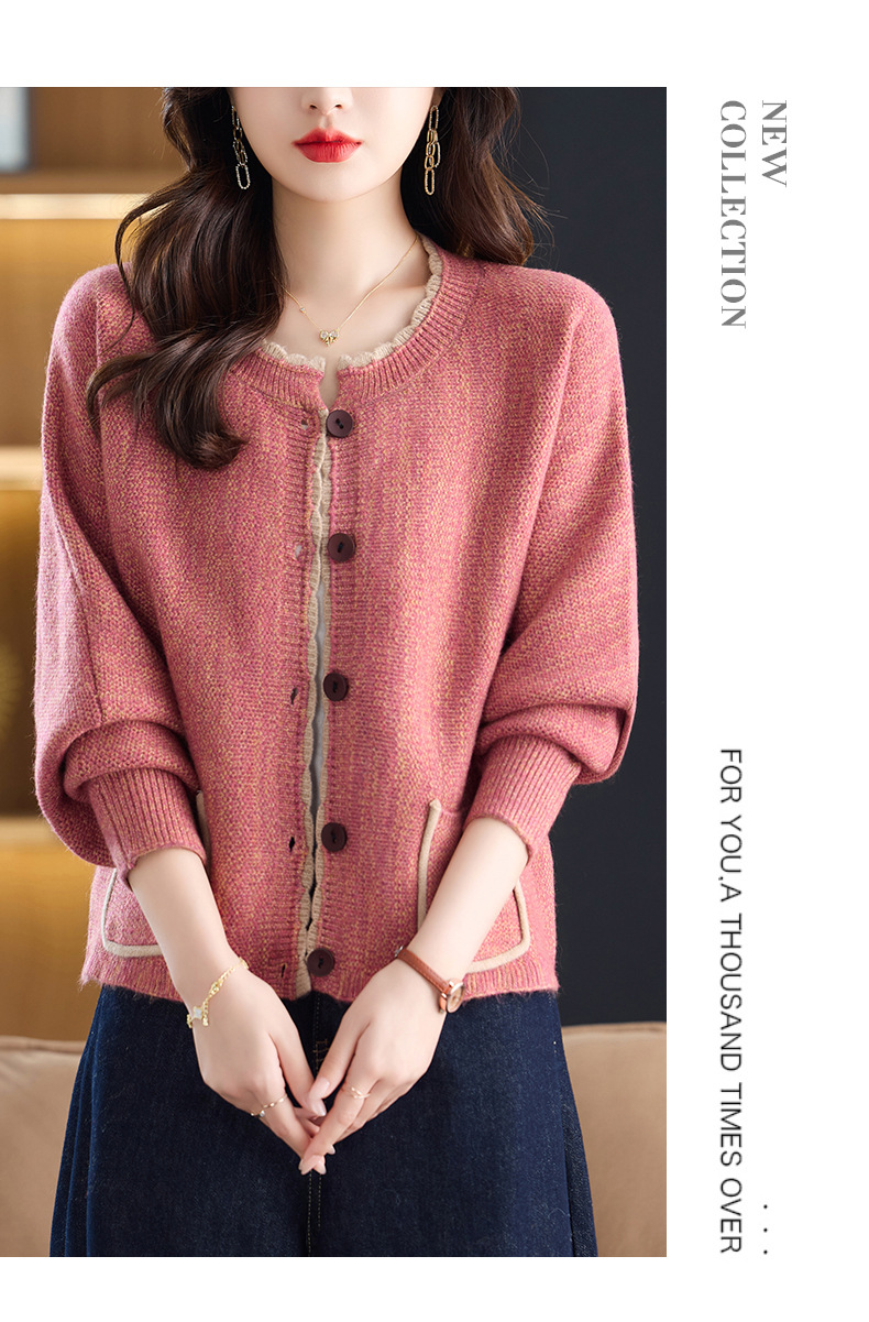 CC春秋设计感时尚针织开衫女减龄毛衣女款2025新款花边圆领花纱上衣