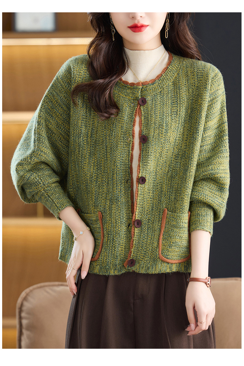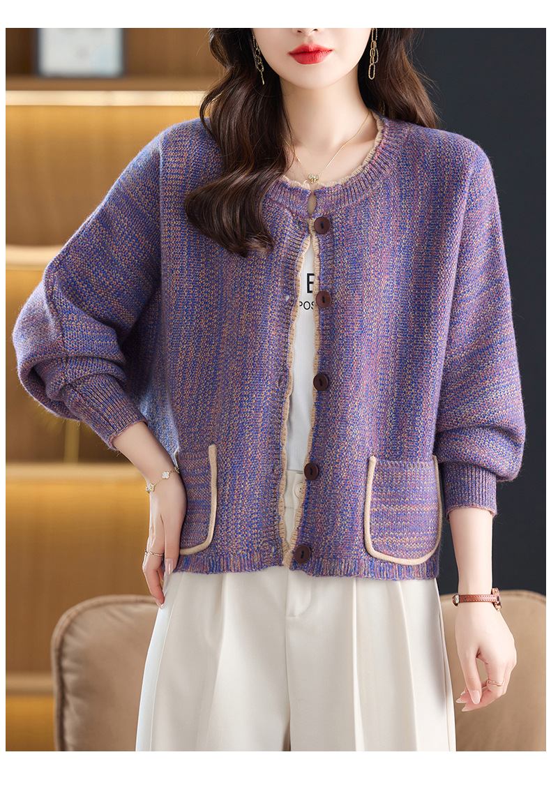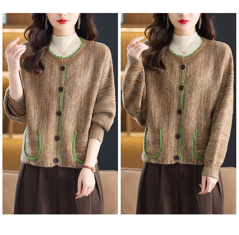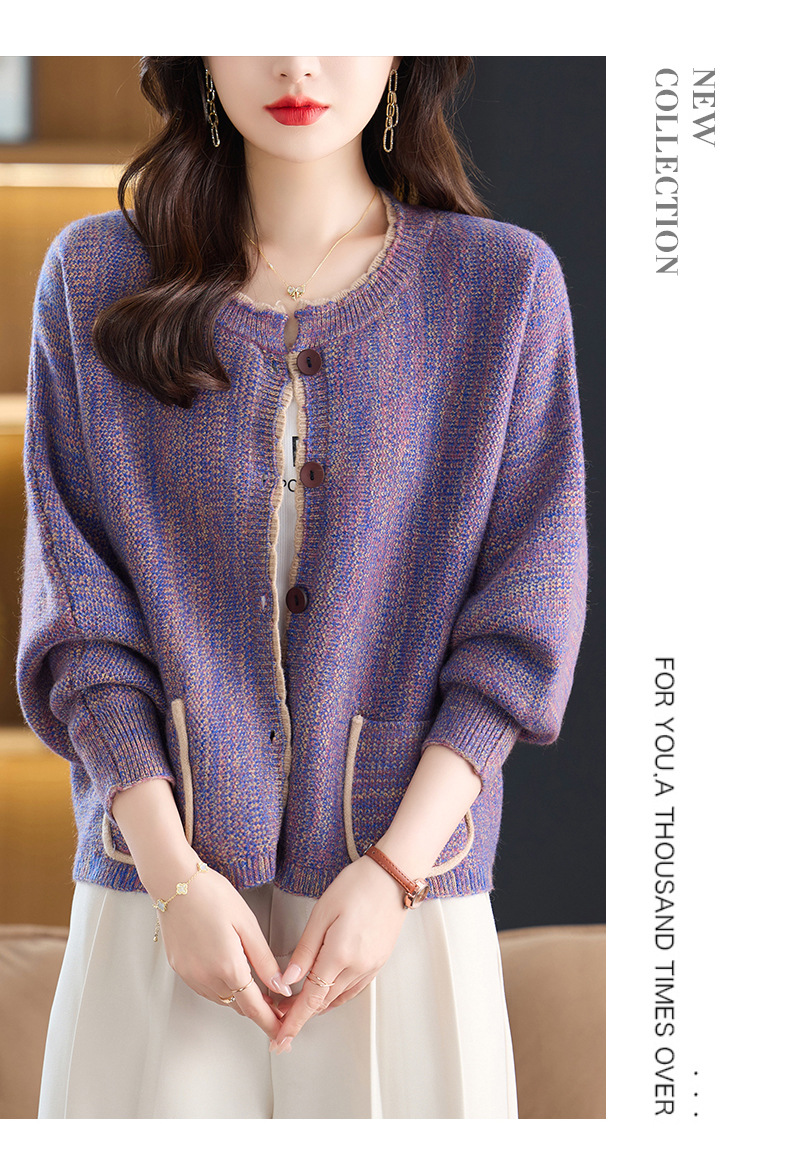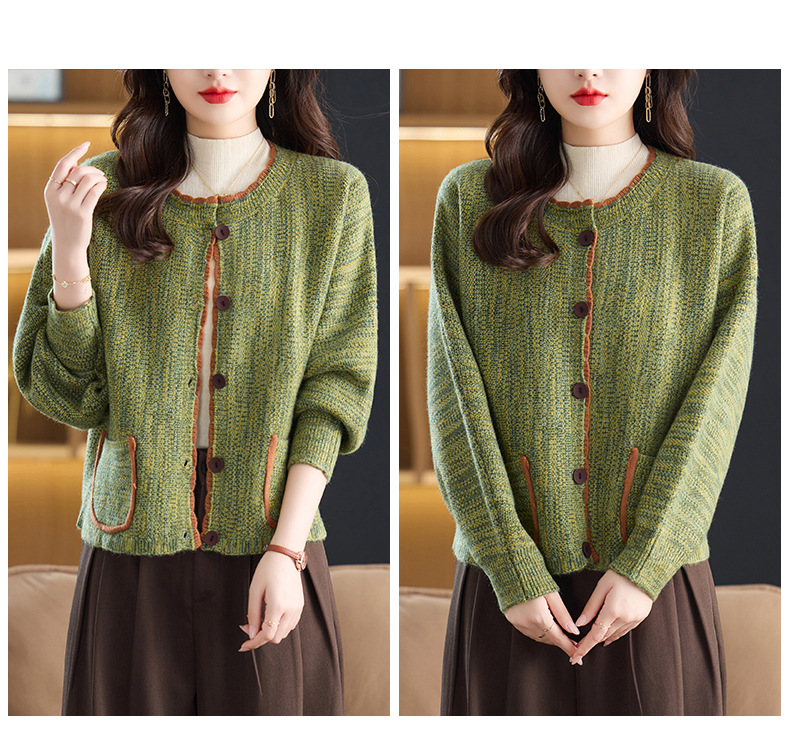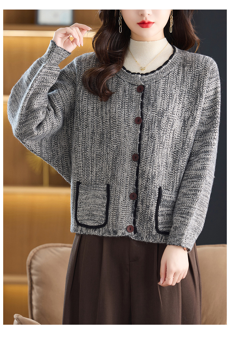 CC春秋设计感时尚针织开衫女减龄毛衣女款2025新款花边圆领花纱上衣