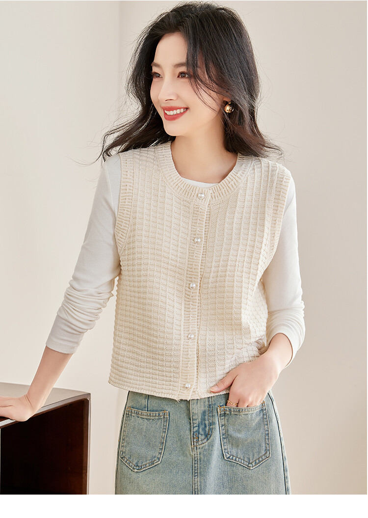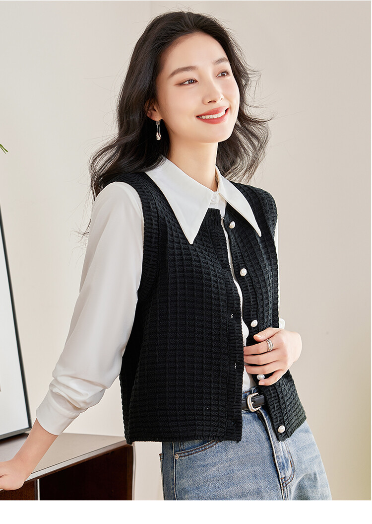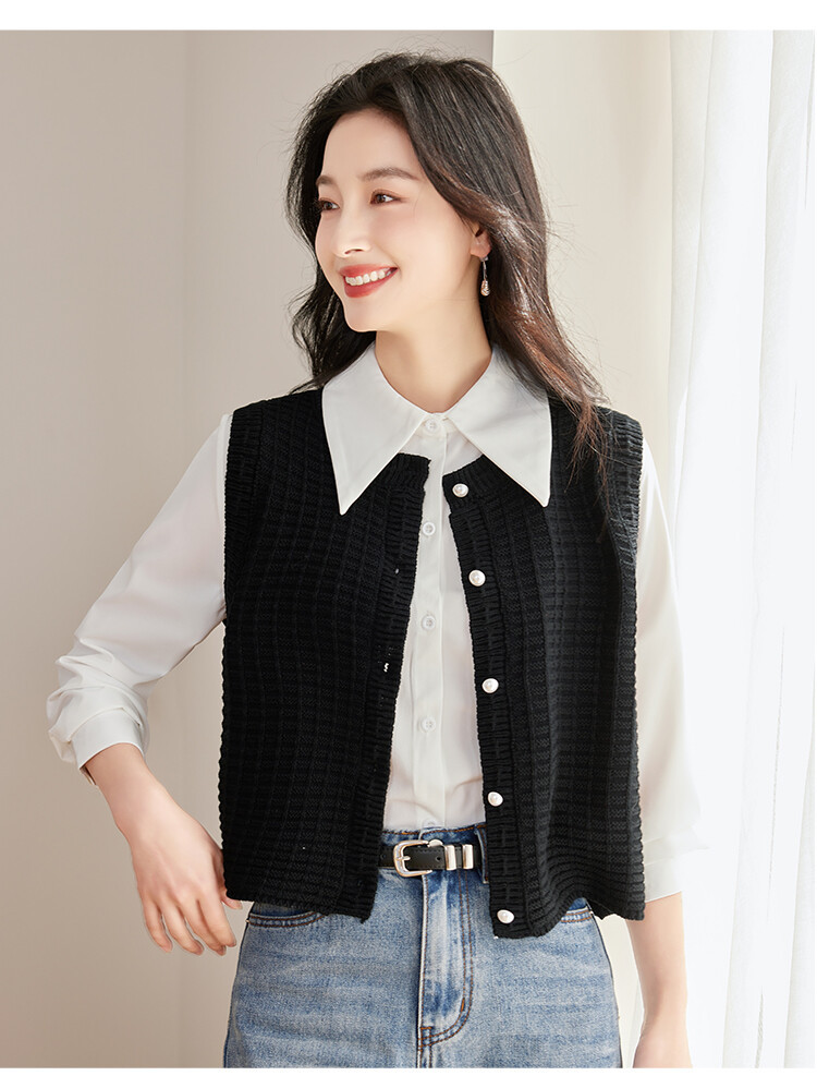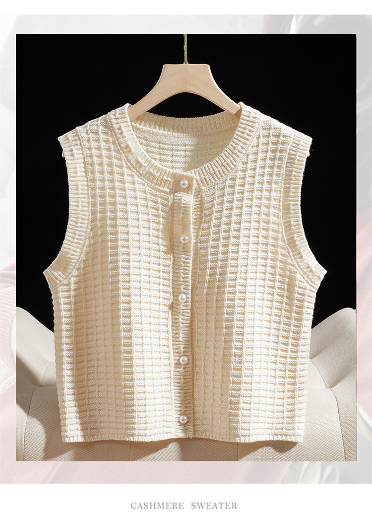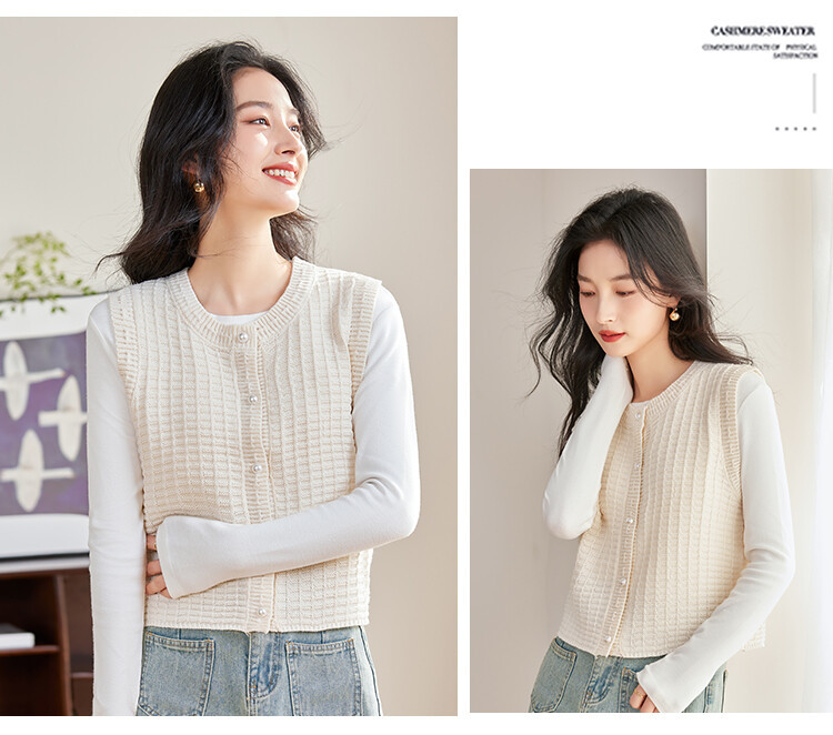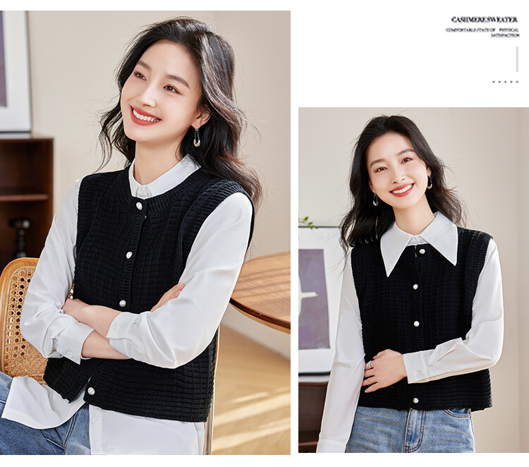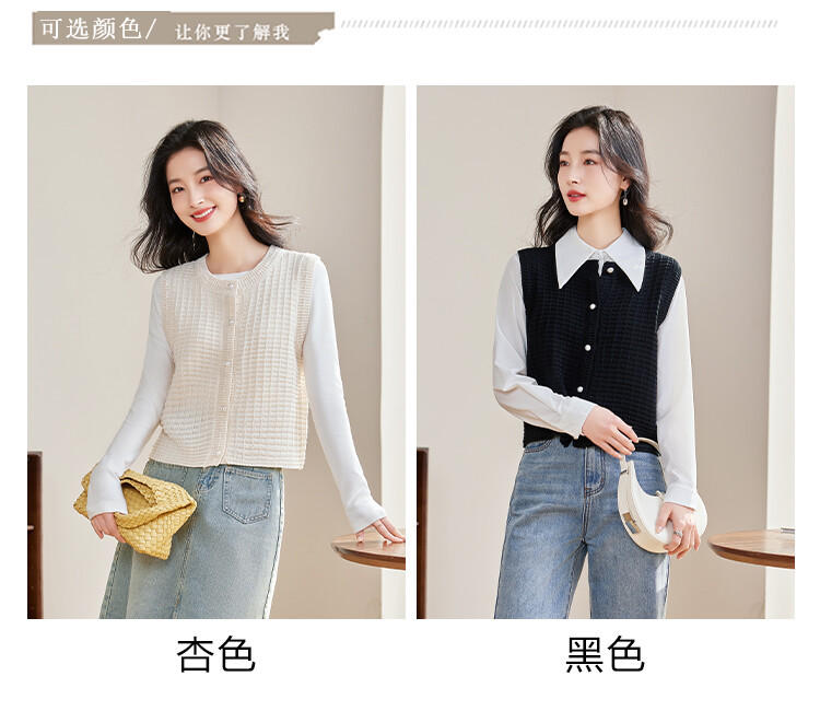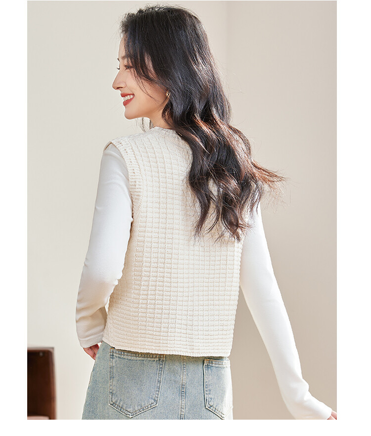 QY479新品短款气质优雅修身显瘦针织马甲女上衣马夹
