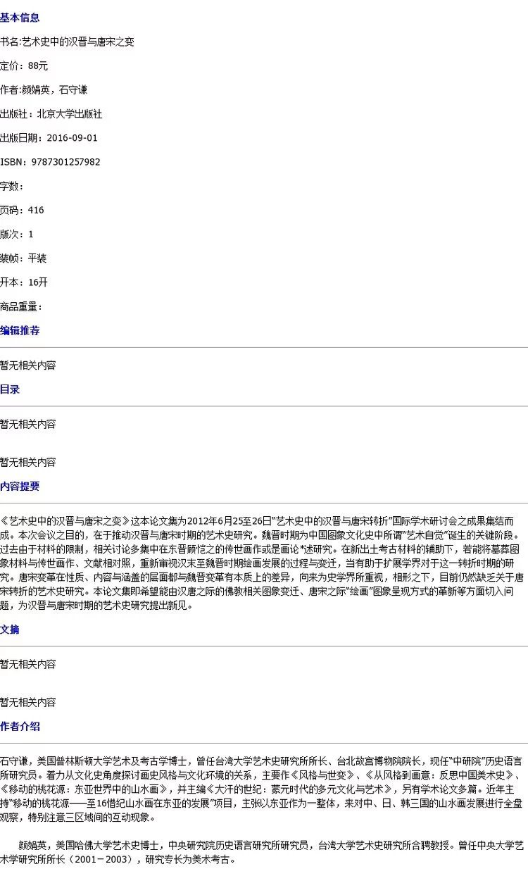 《艺术史中的汉晋与唐宋之变》定价:88元