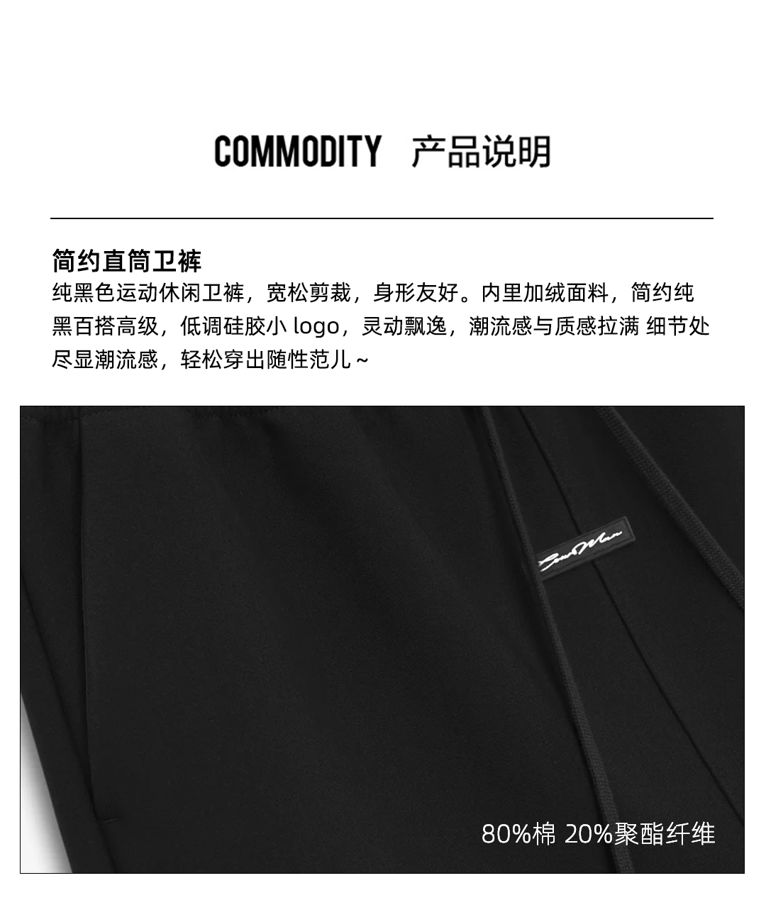 COURTMAN野球帝 宽松运动休闲裤基础款直筒卫裤简约潮男抓绒保暖