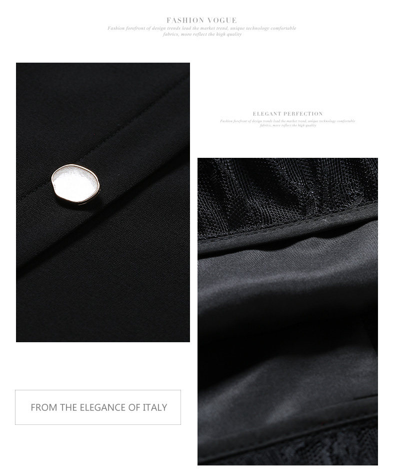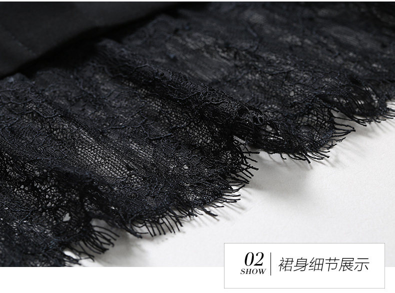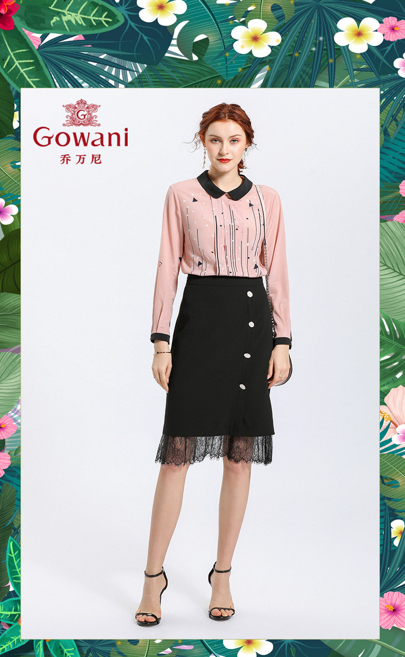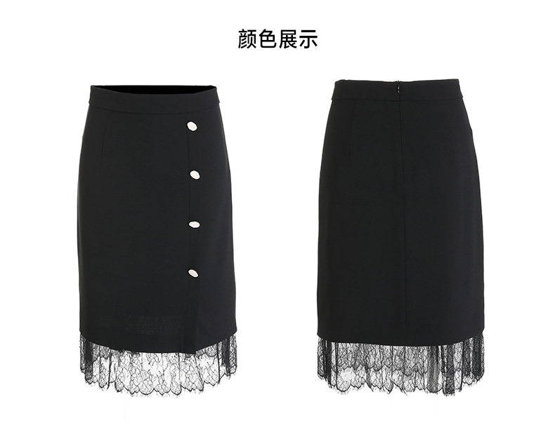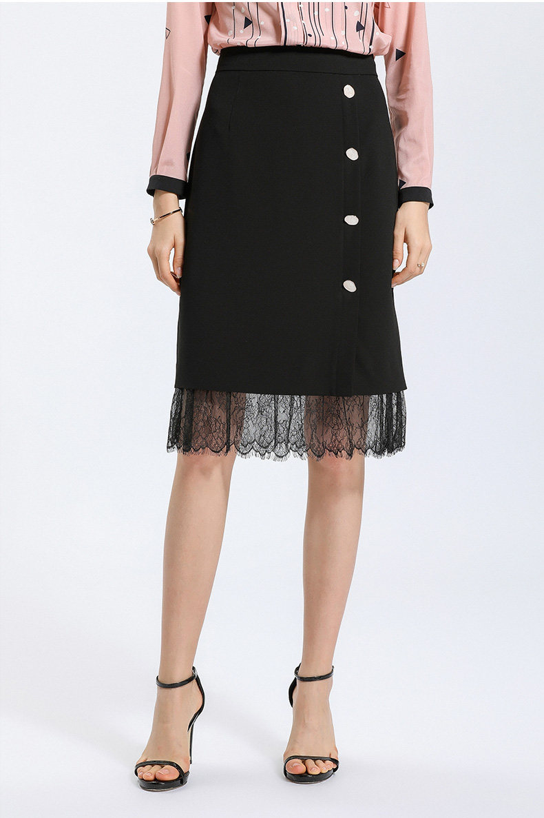 乔万尼春季紧身直筒黑色高腰蕾丝拼接裙子女半身裙中长款EN1D943