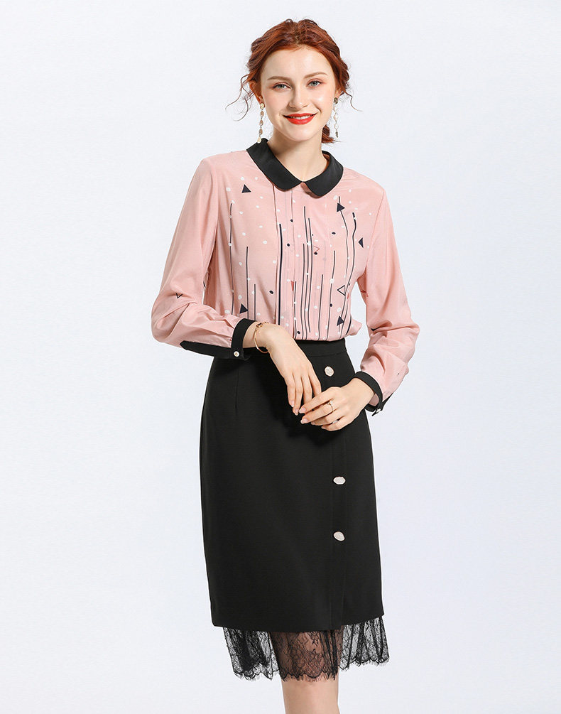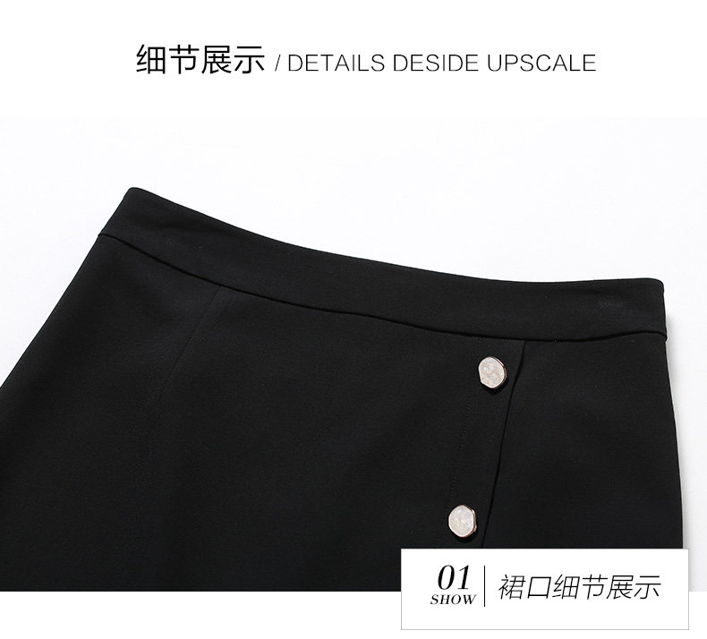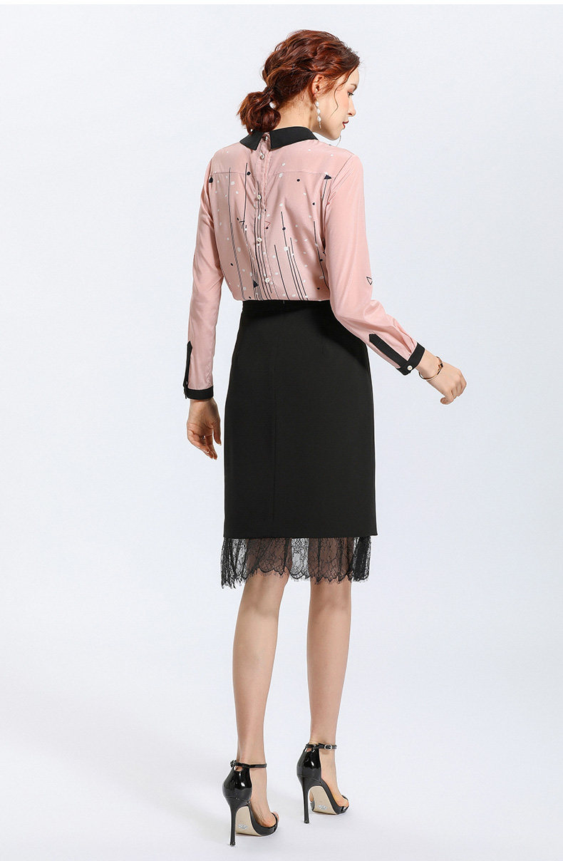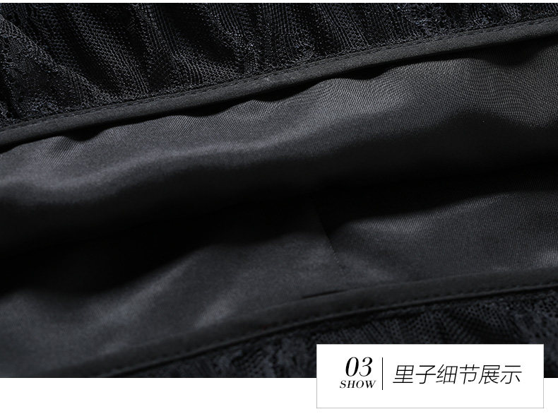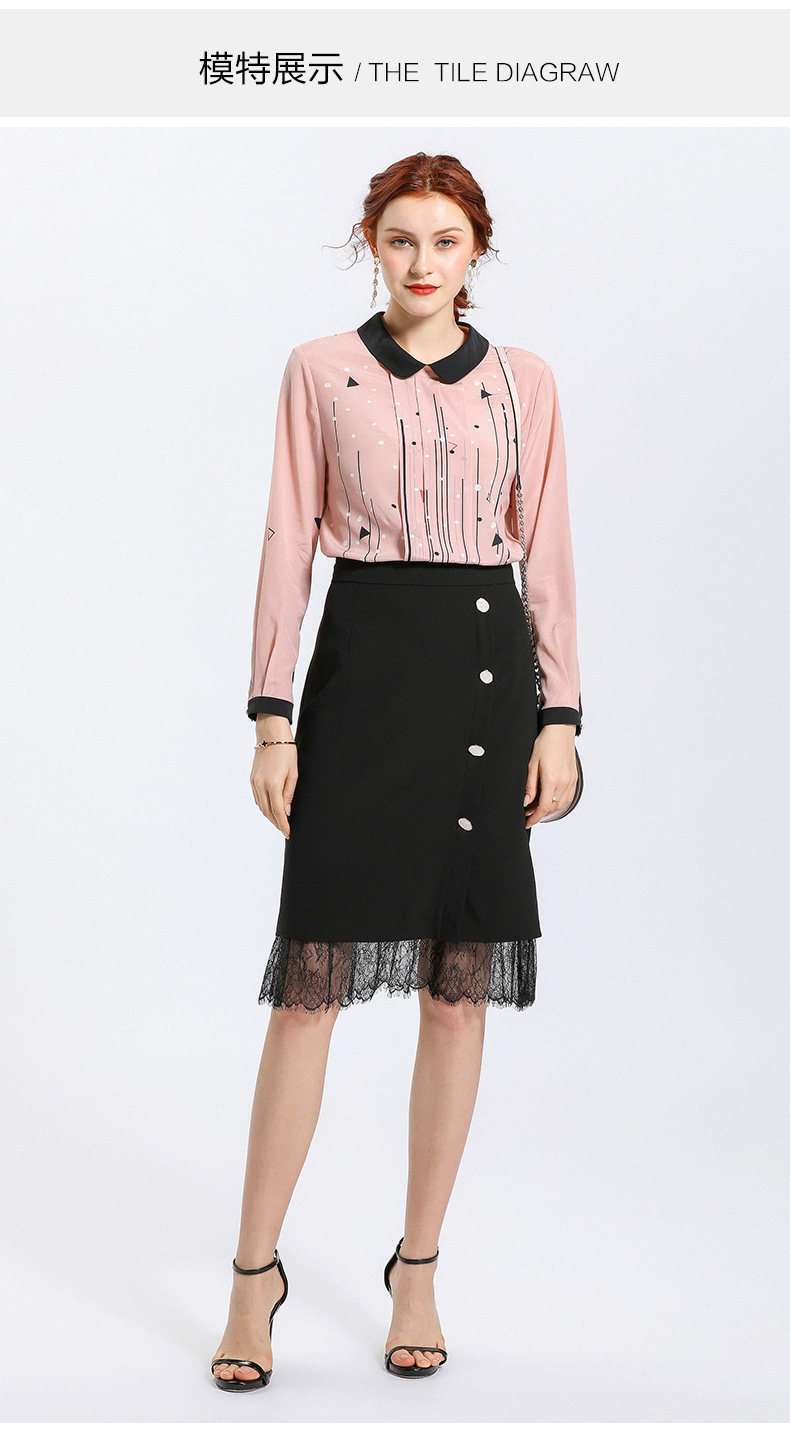 乔万尼春季紧身直筒黑色高腰蕾丝拼接裙子女半身裙中长款EN1D943