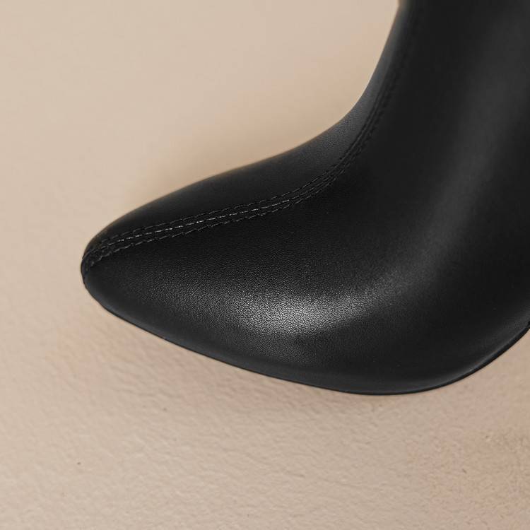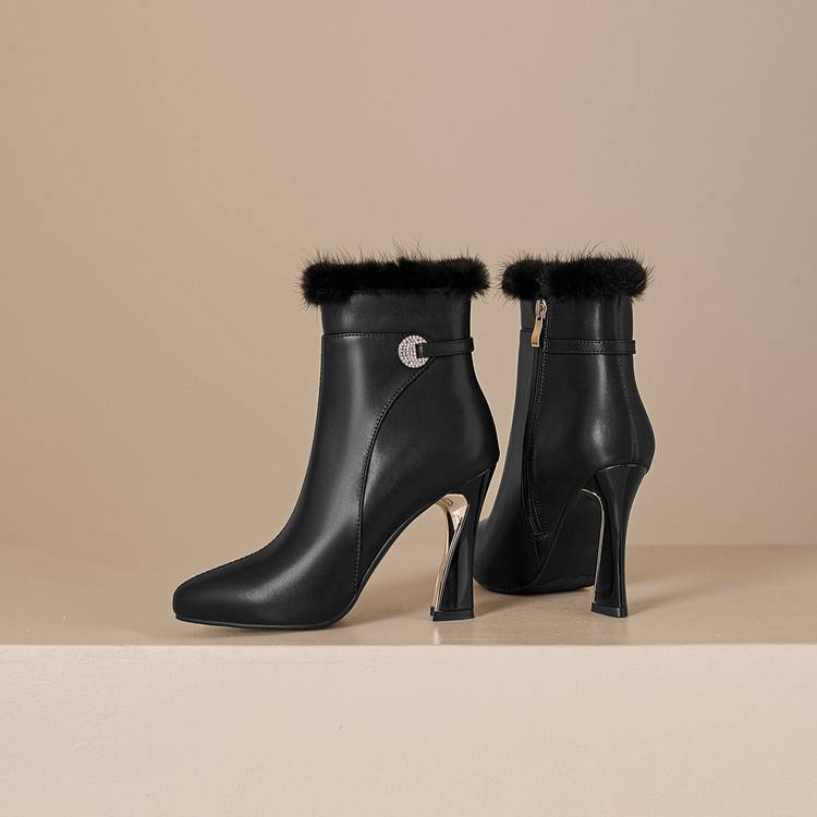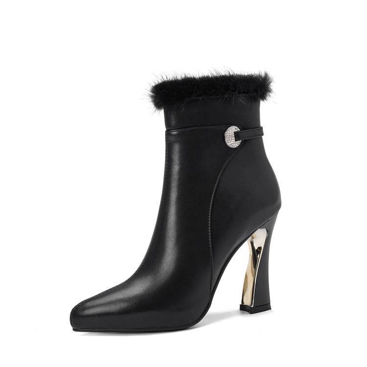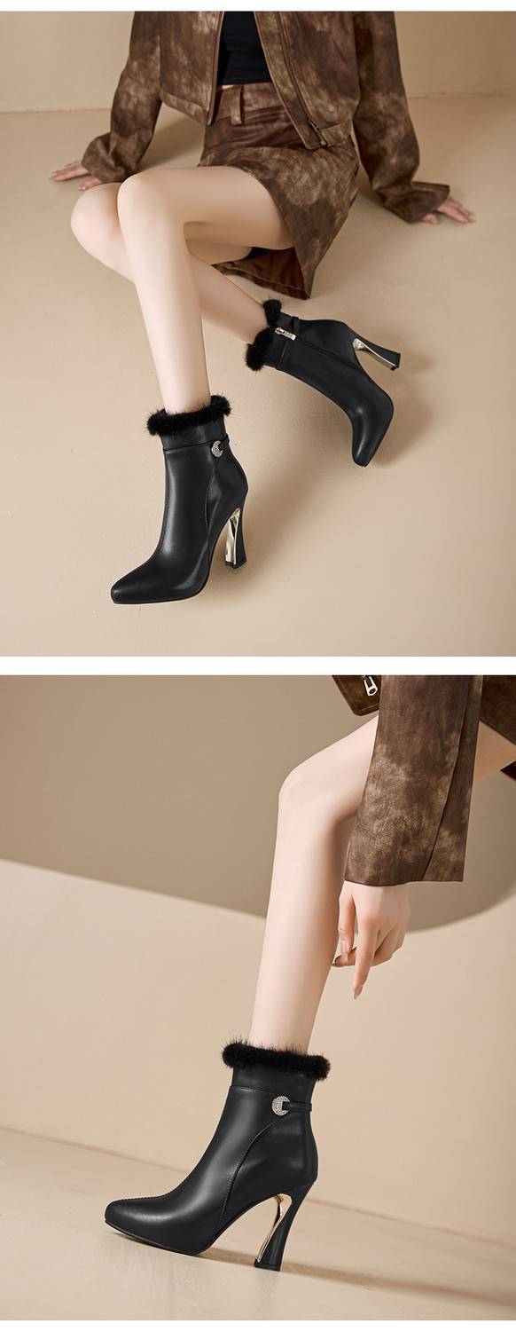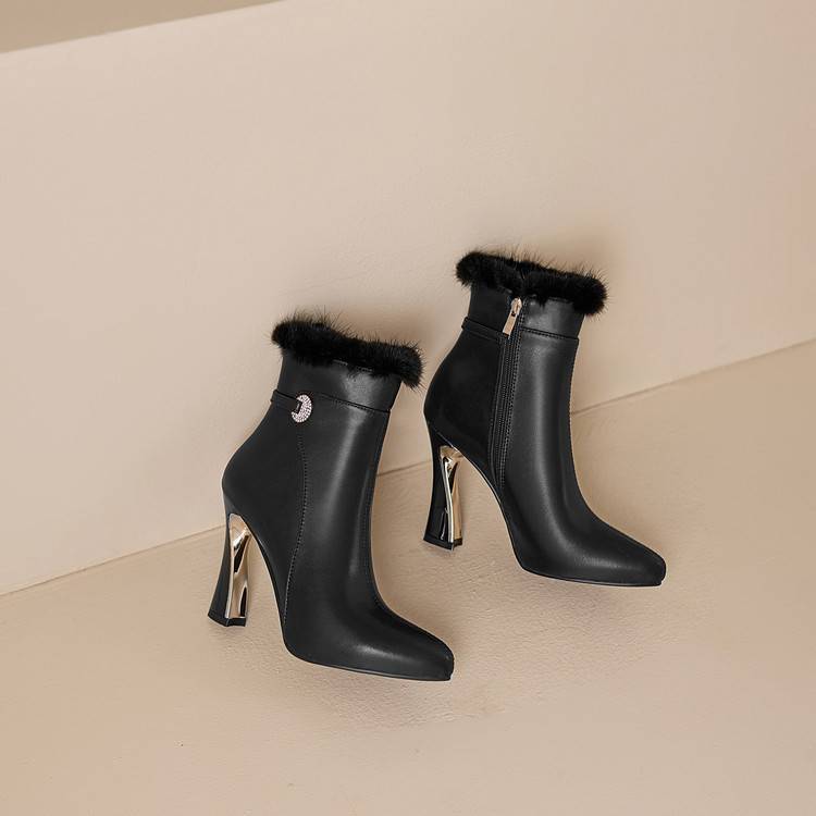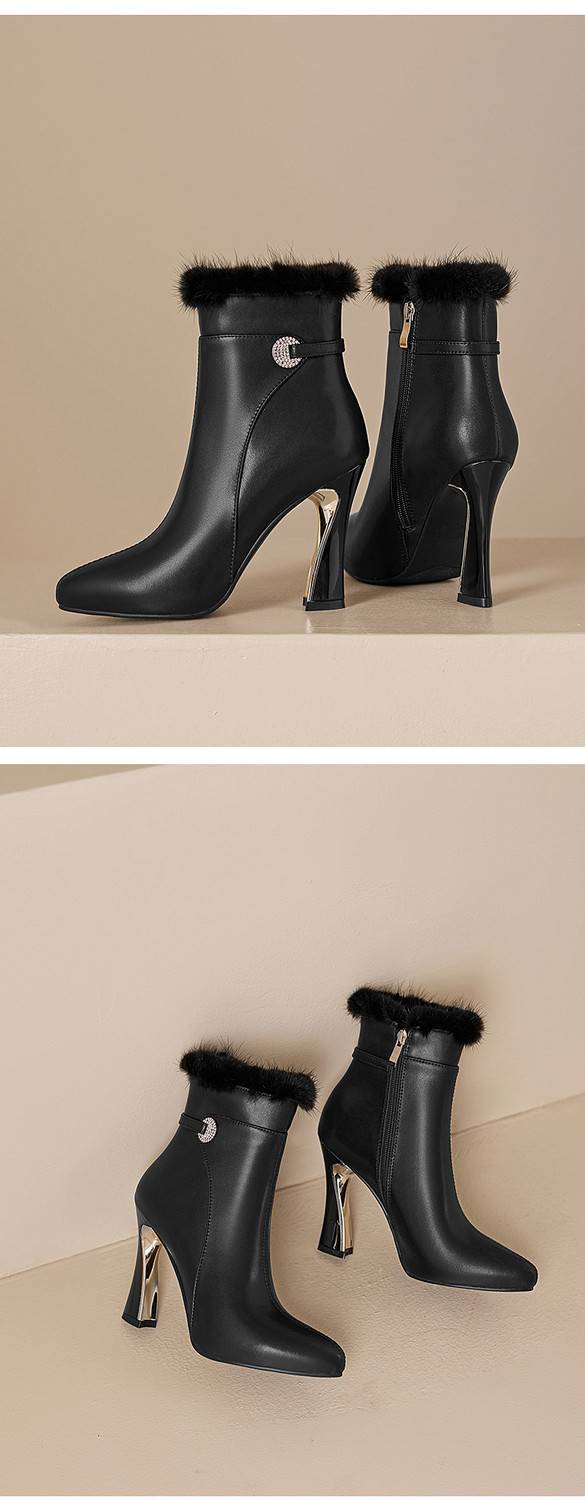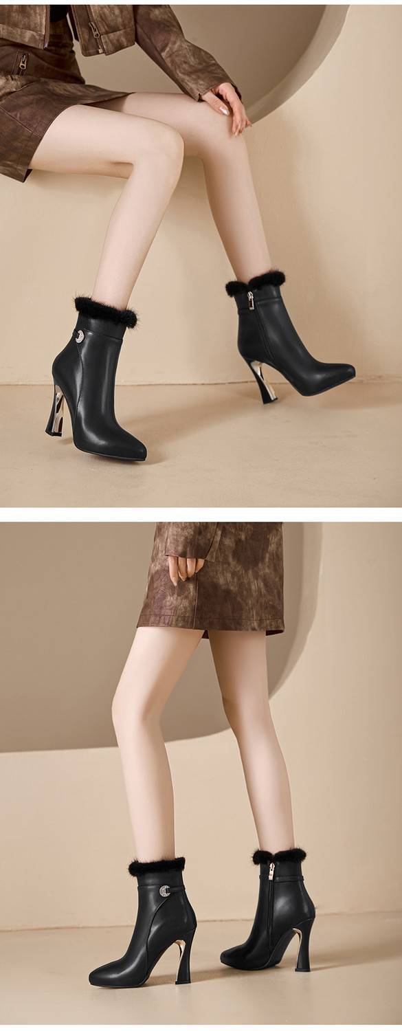 【预售5天】白色真皮防水台高跟短靴女秋冬季新款加绒貂毛裸靴尖头粗跟马丁靴DS&1912