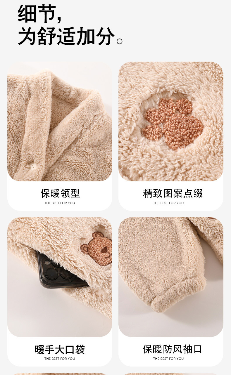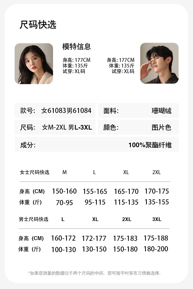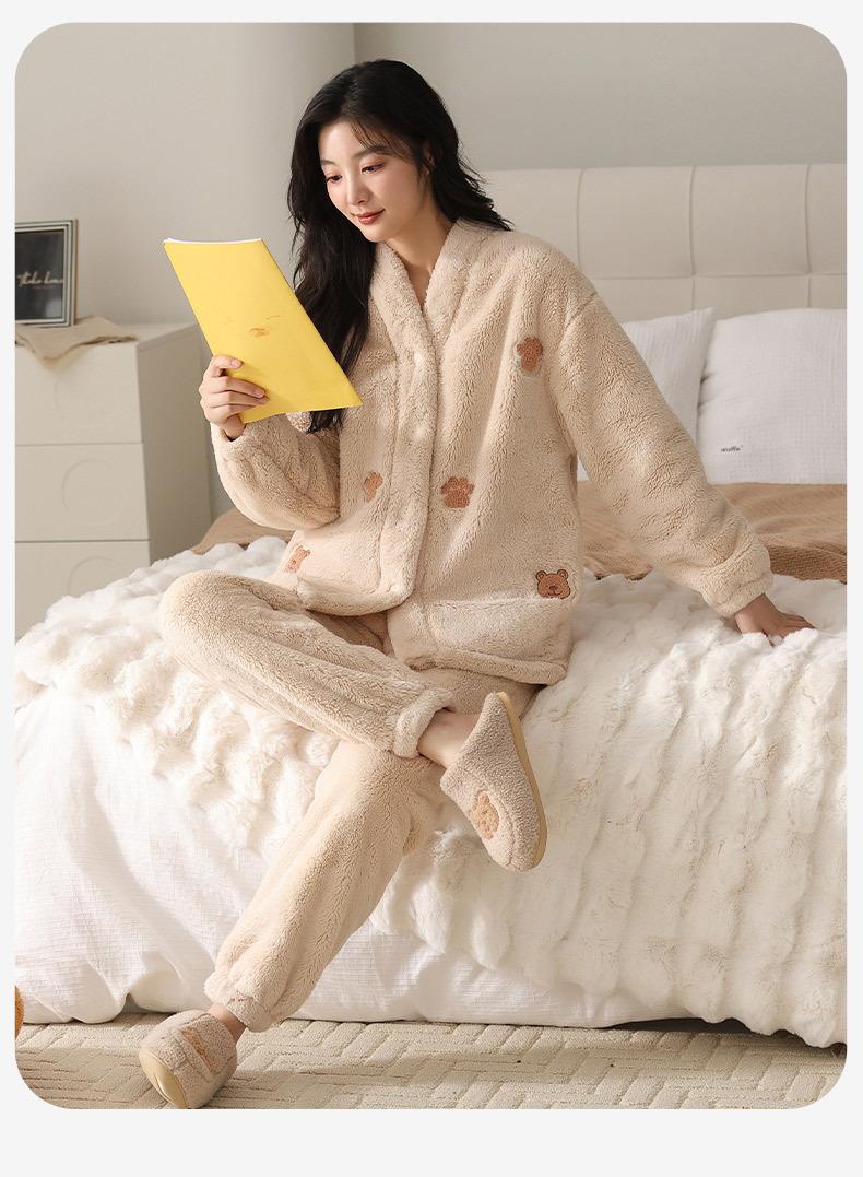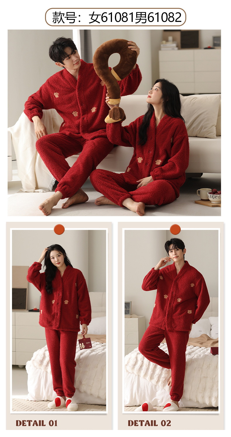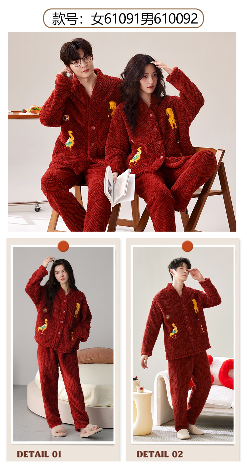 丁摩 情侣睡衣秋冬季珊瑚绒男女加绒加厚法兰绒冬款开衫家居服套装5ZF-61083