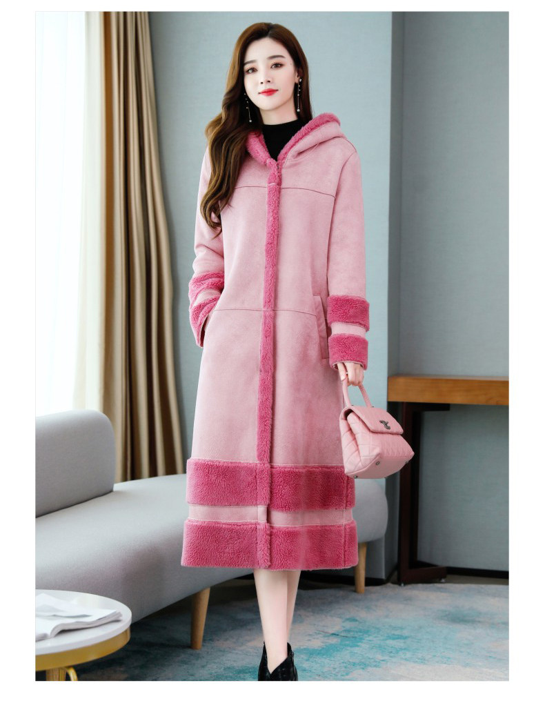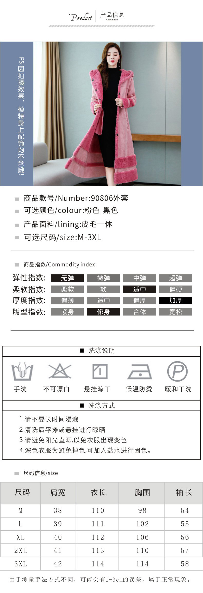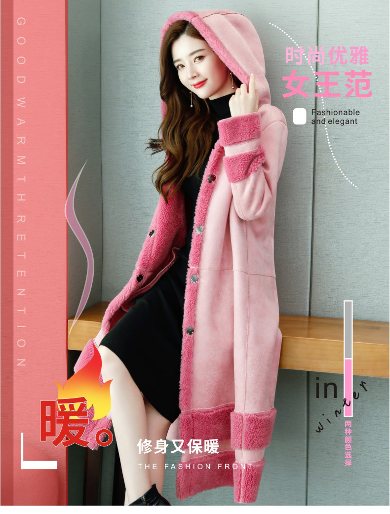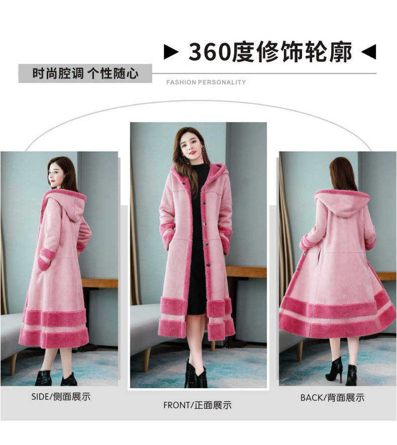WZNH-WZ908069秋季新款时尚简约加厚拼接撞色中长款皮毛一体外套