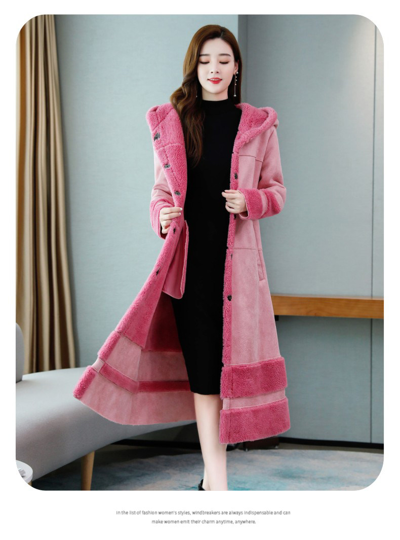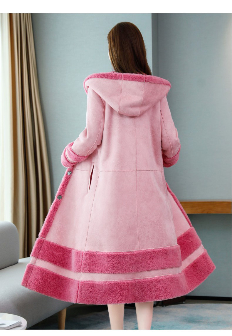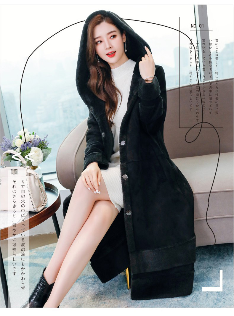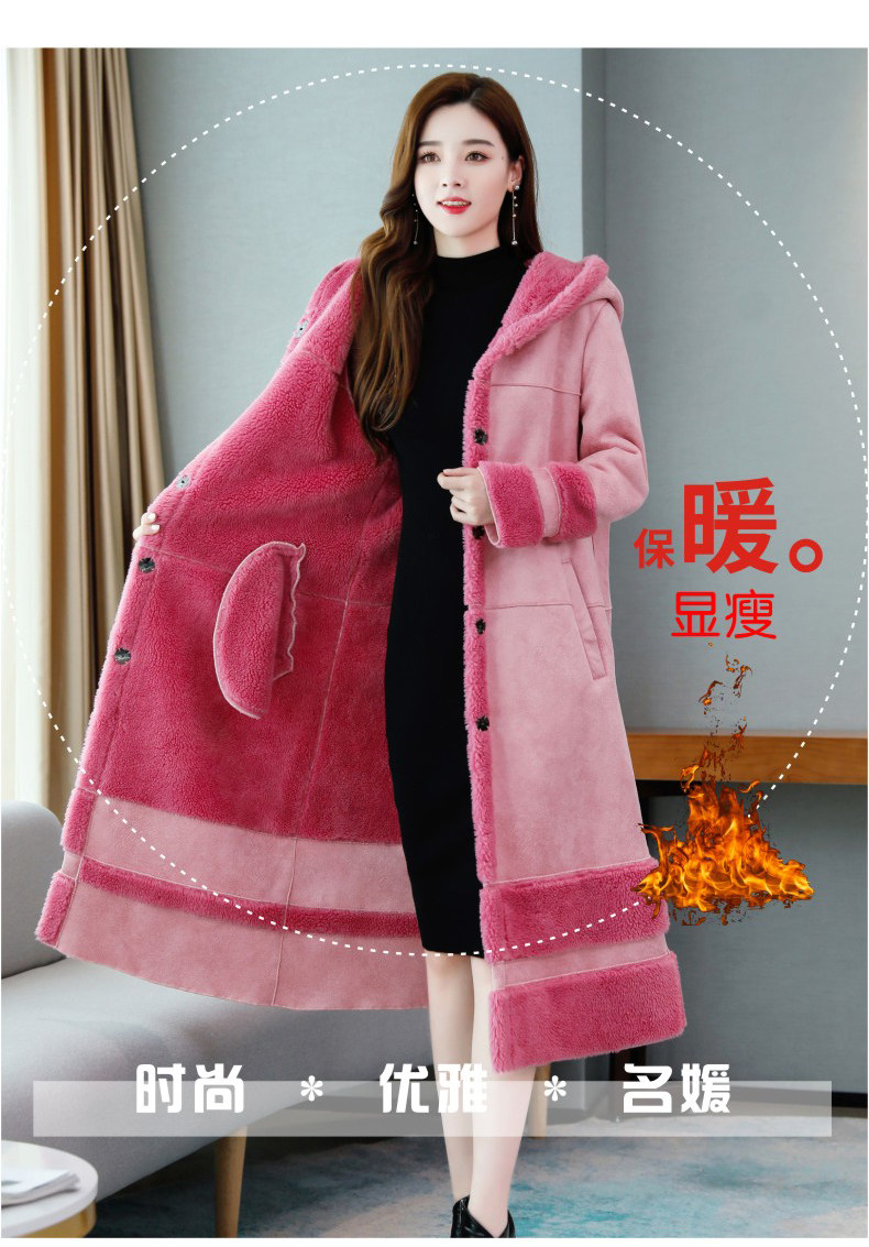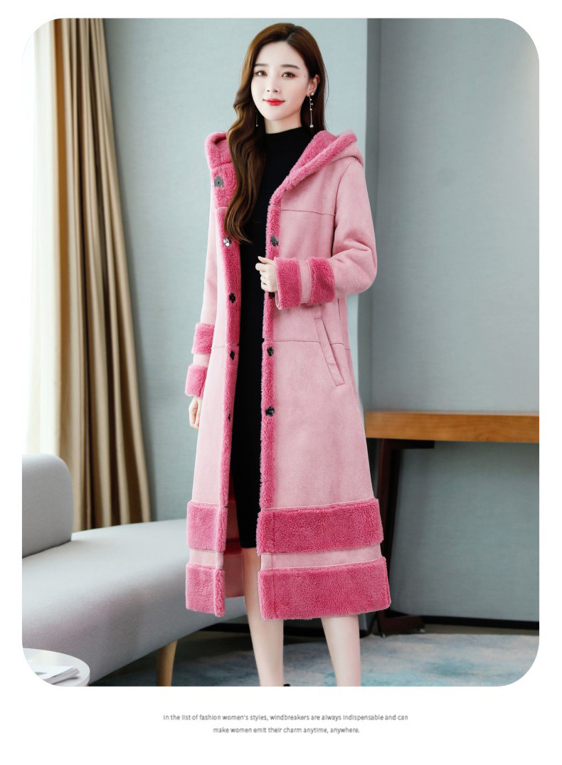 WZNH-WZ908069秋季新款时尚简约加厚拼接撞色中长款皮毛一体外套
