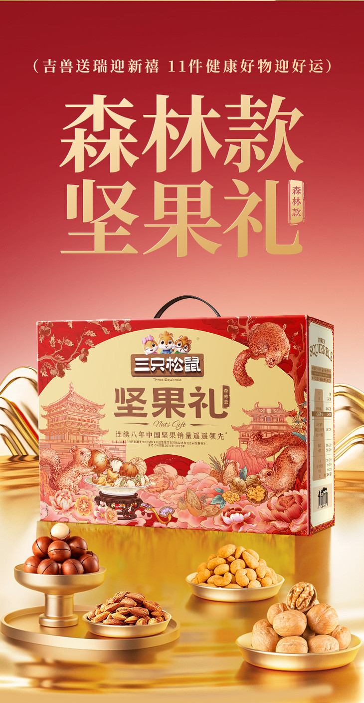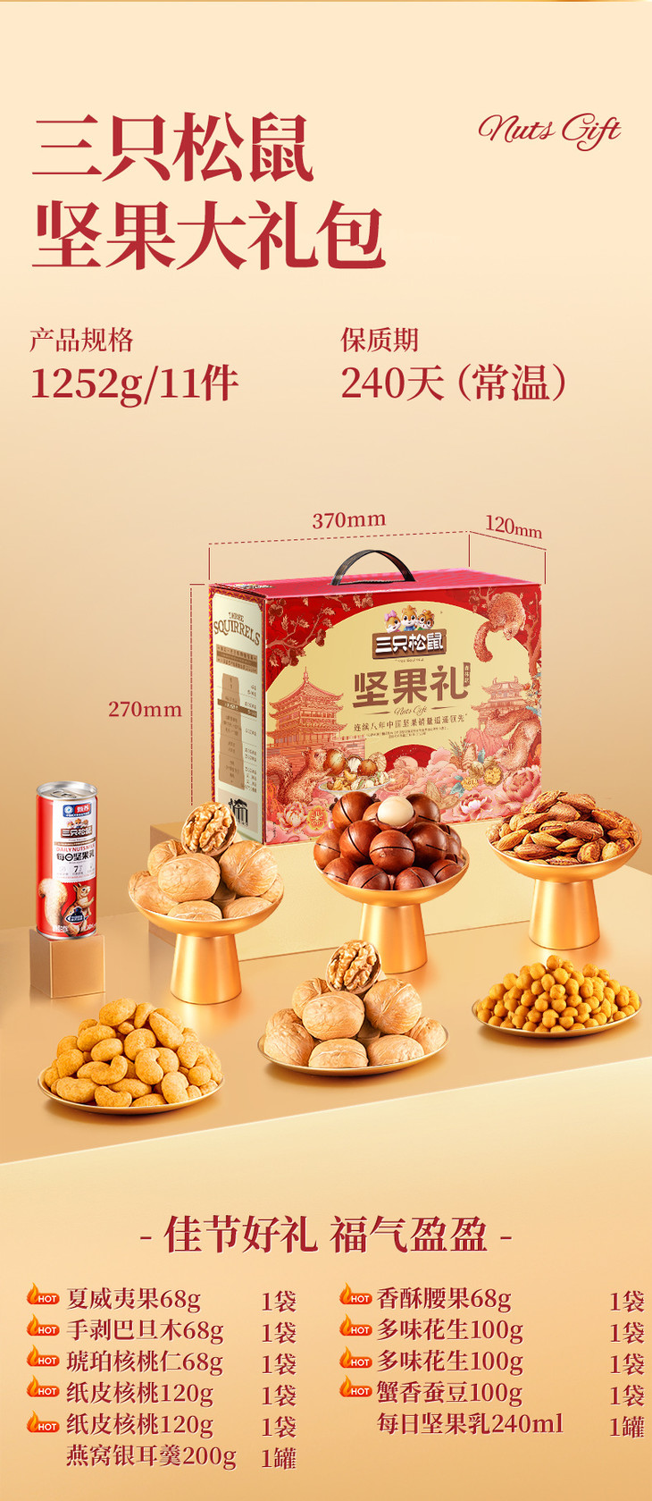【三只松鼠坚果礼盒森林款11袋1252g】零食大礼包送礼干果年货