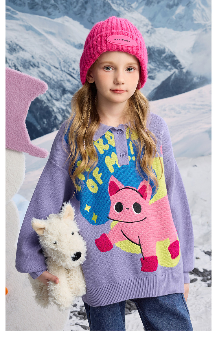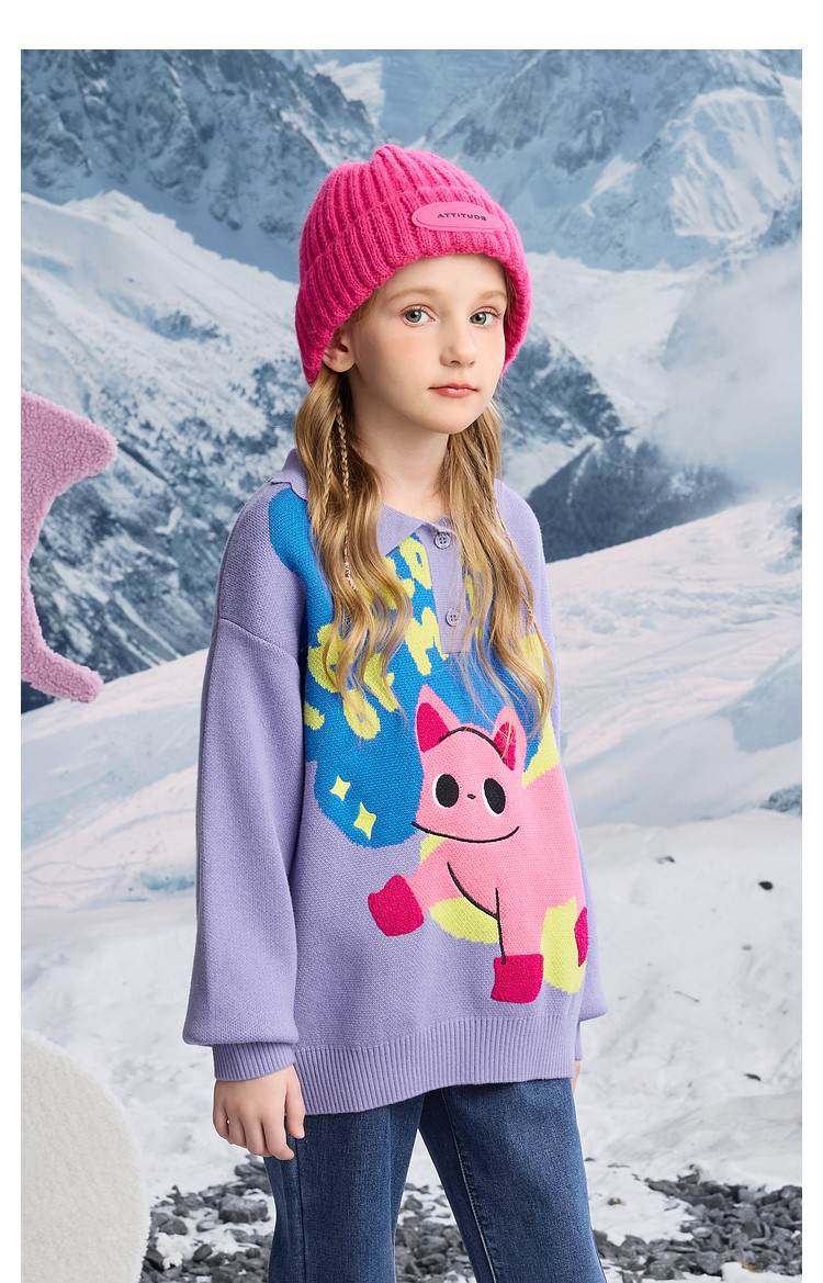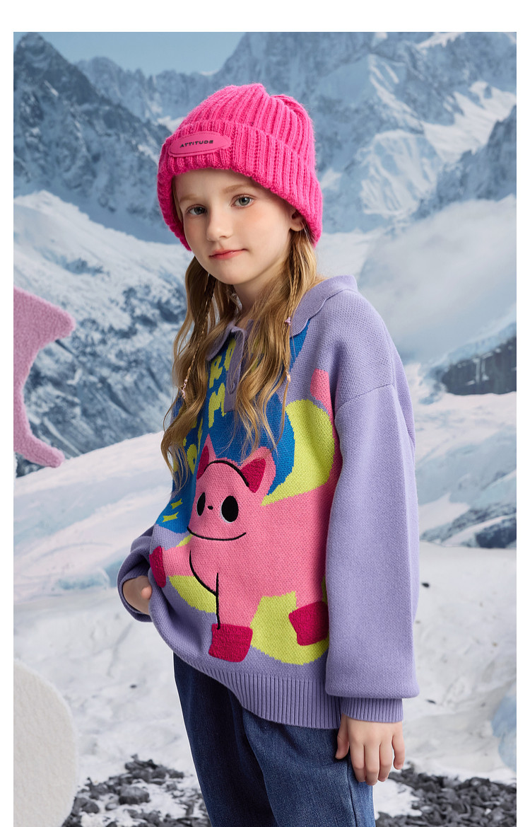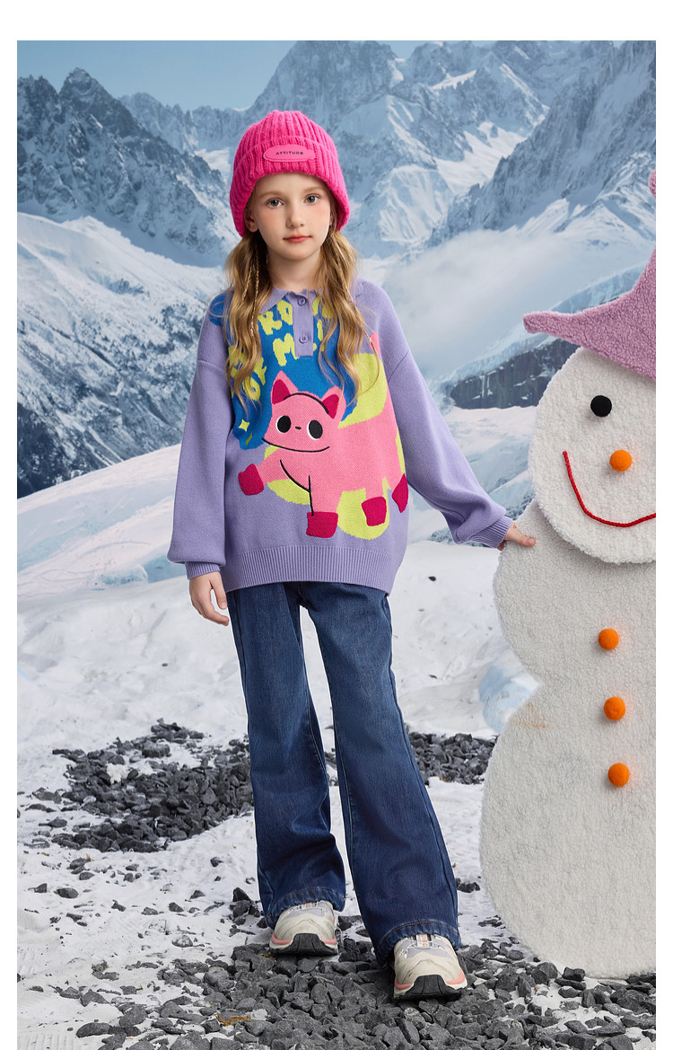 【MQD】冬季新品女大童学院风卡通可爱套头毛衣