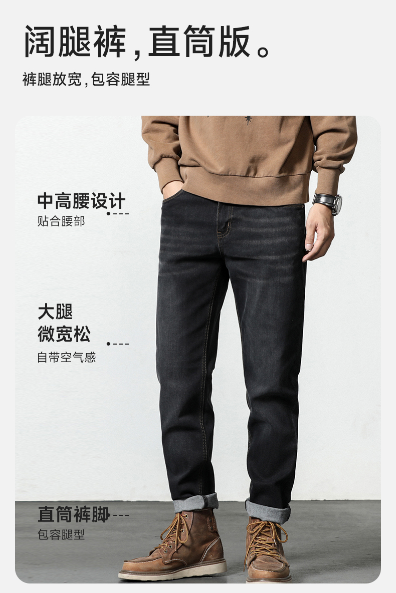 【新款DQ】大依优型大码男装直筒牛仔裤加肥加大号肥佬宽松大号休闲长裤水洗Y