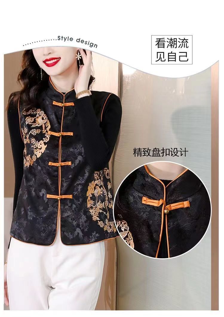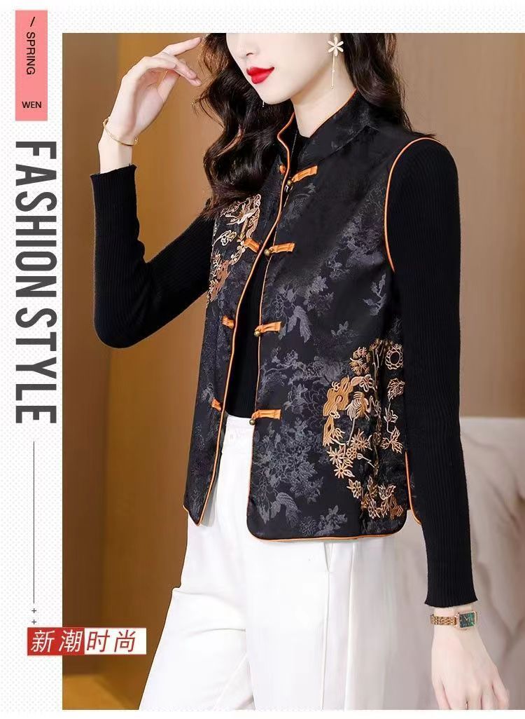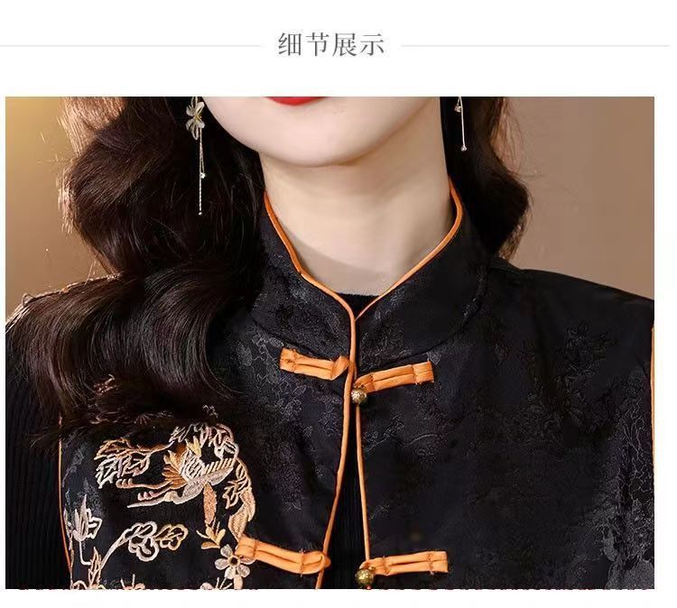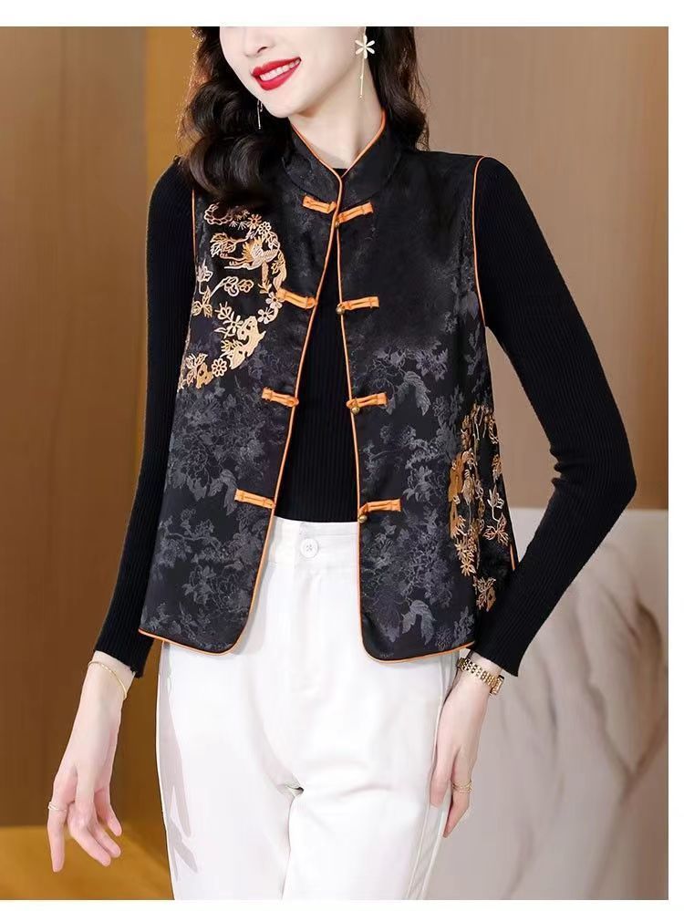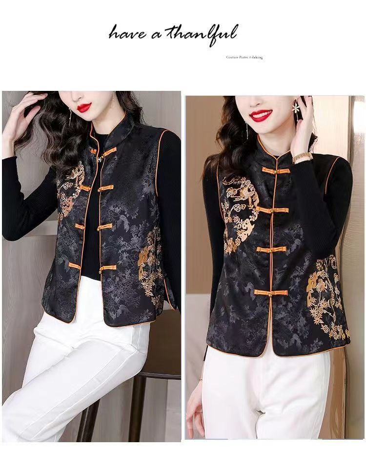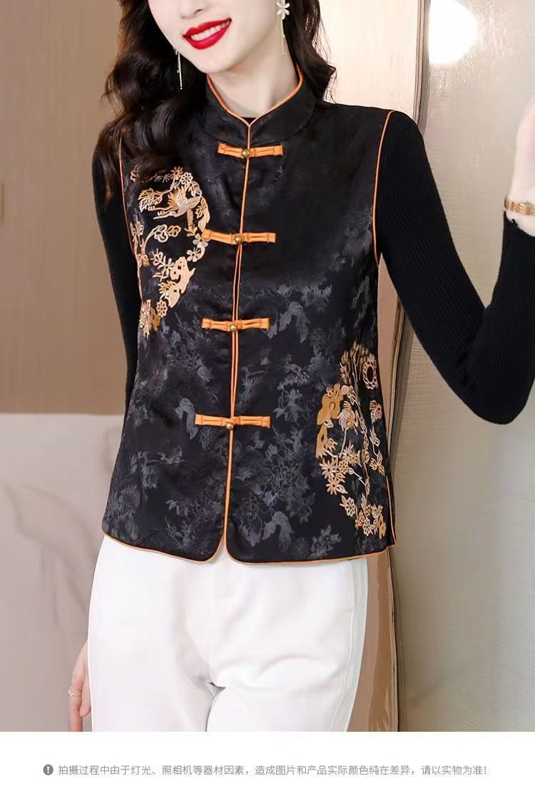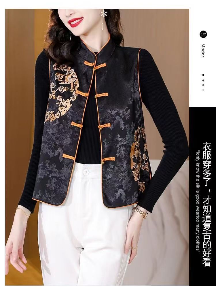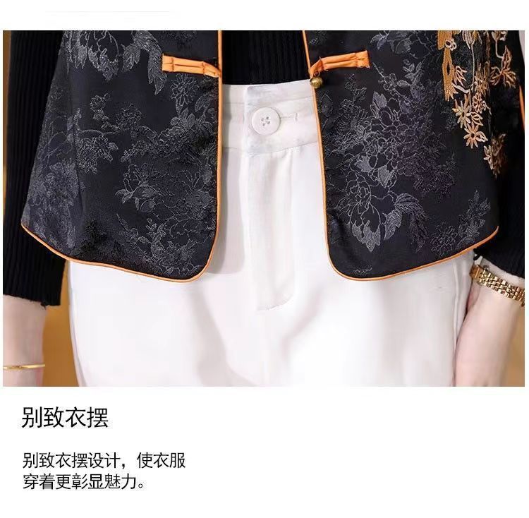 雀说刺绣唐装马甲短款国潮复古百搭中国风显坎肩显瘦外套AL2405