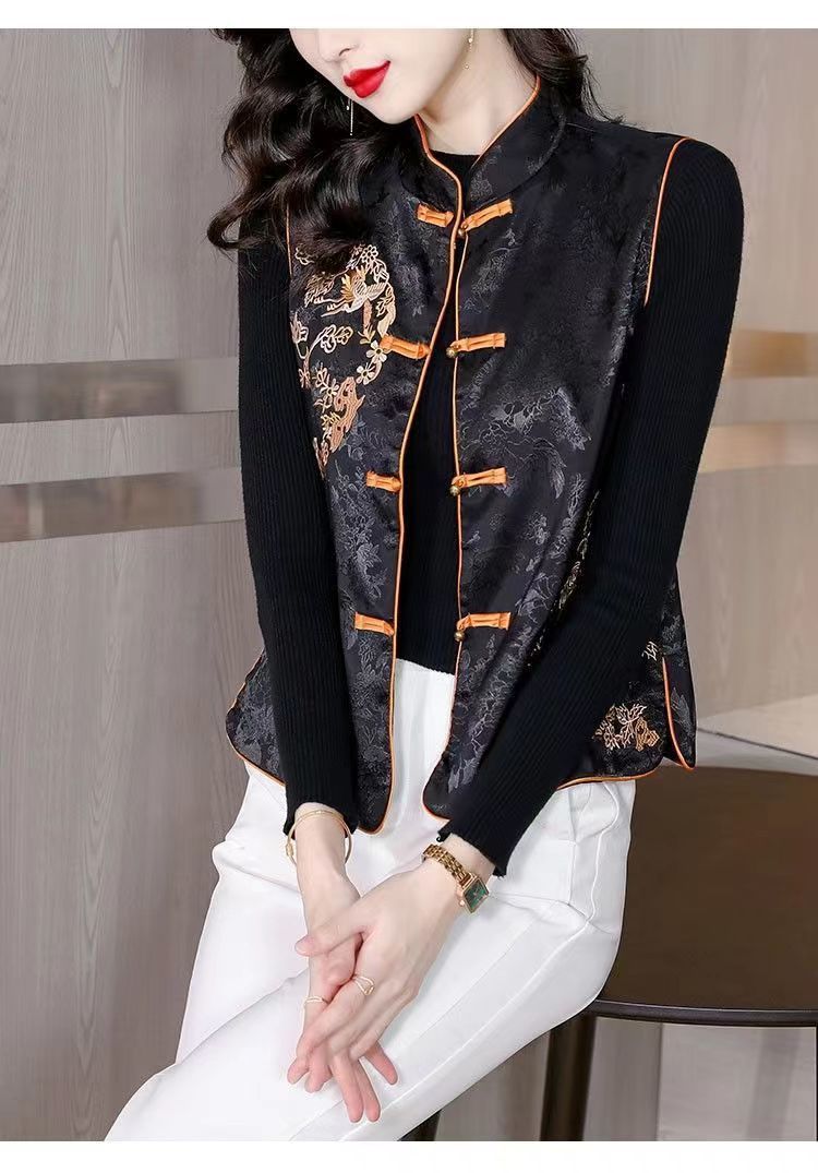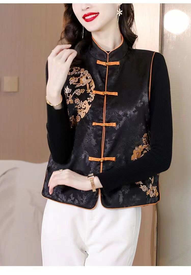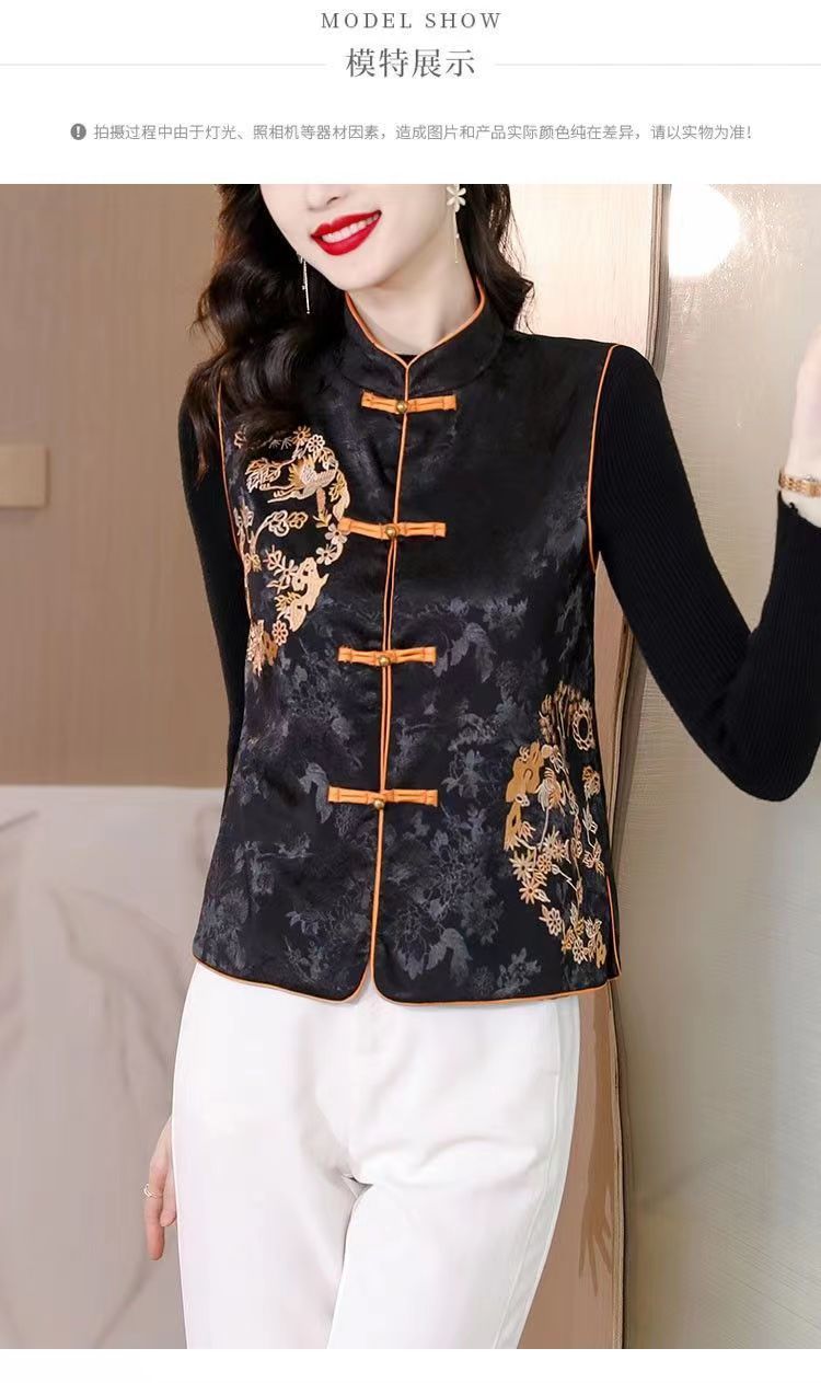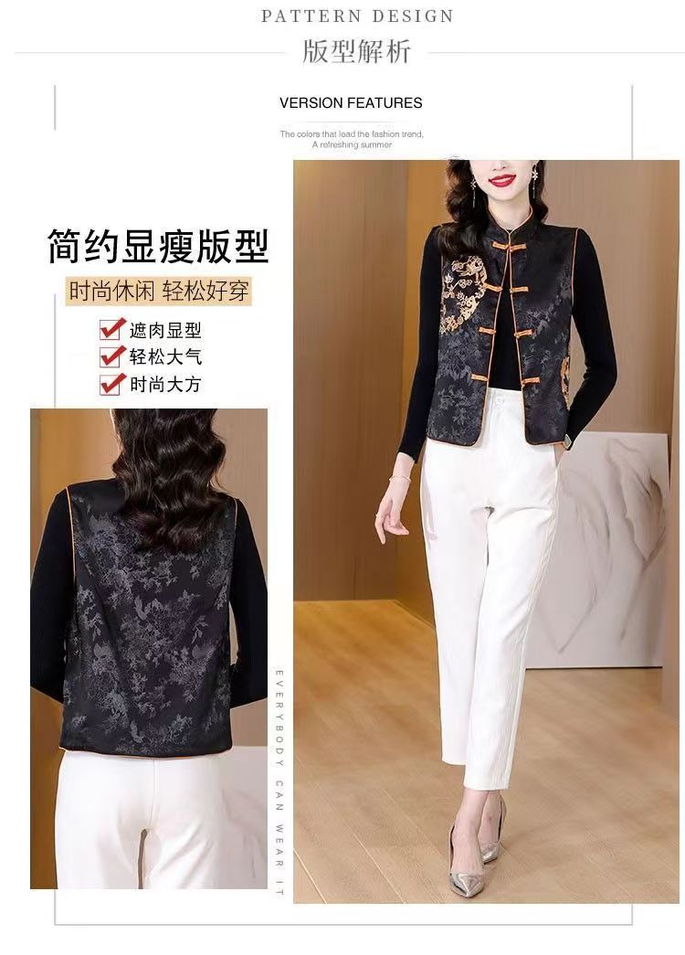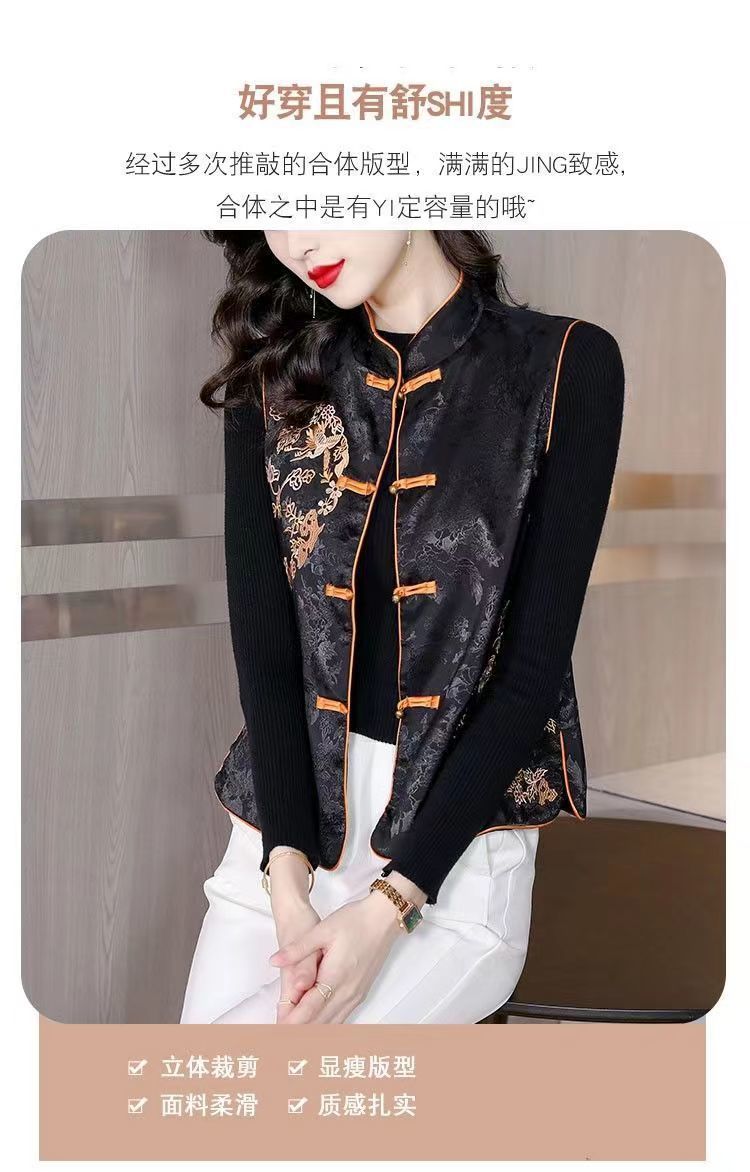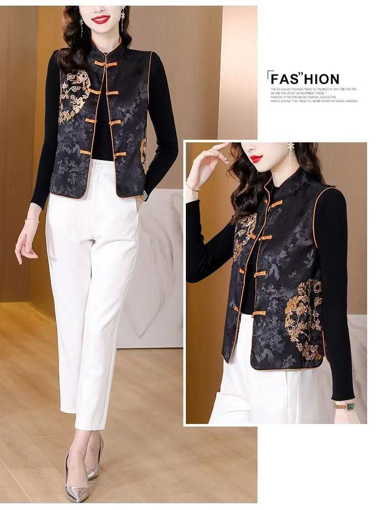 雀说刺绣唐装马甲短款国潮复古百搭中国风显坎肩显瘦外套AL2405