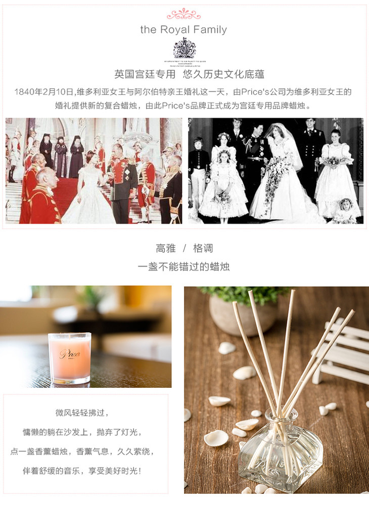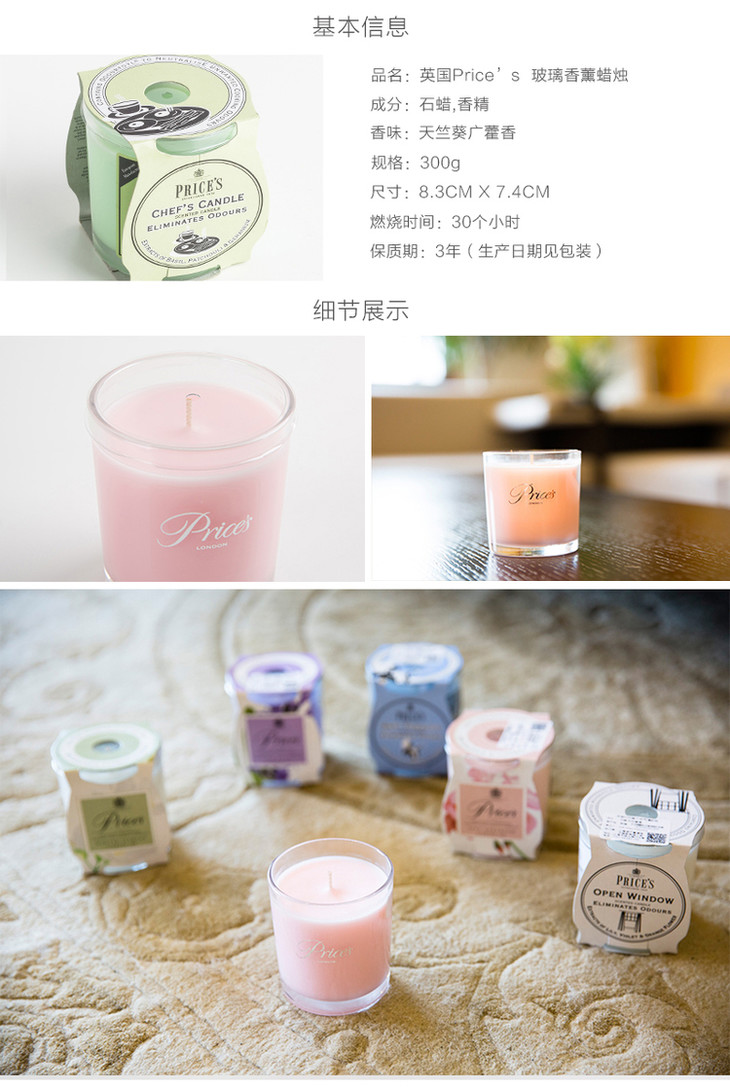 英国Price's香薰蜡烛空气香氛烛台