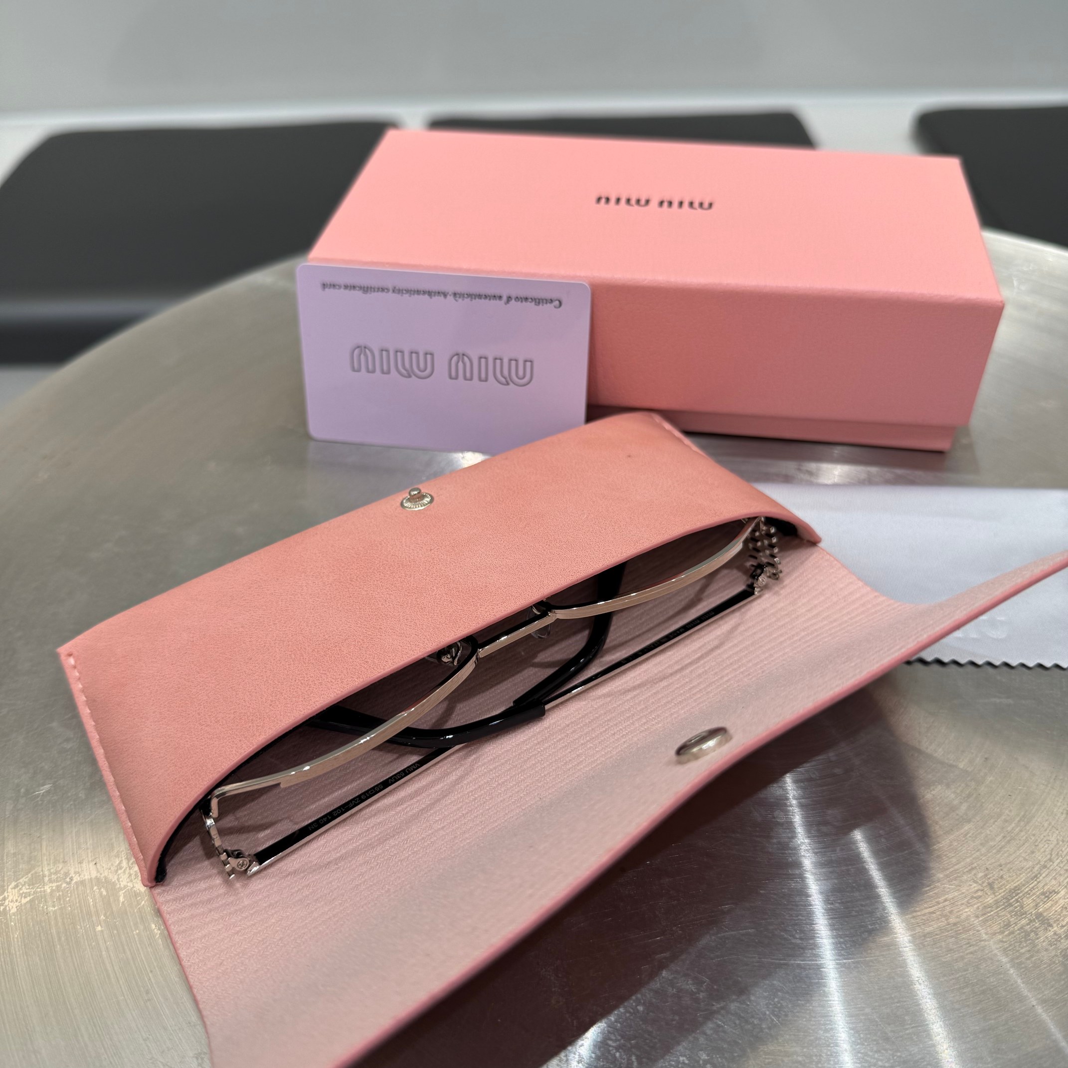 miumiu平光镜,素颜神器今年大火,大牌设计感超级浓重,一点也不挑脸型,反而戴上以后很显脸小,今年最🔥爆款!镜腿还有品牌Logo,镜框很轻完全不用担心有压迫感,颜值爆表,简直是素颜神器,不爱化妆的小姐姐必备!