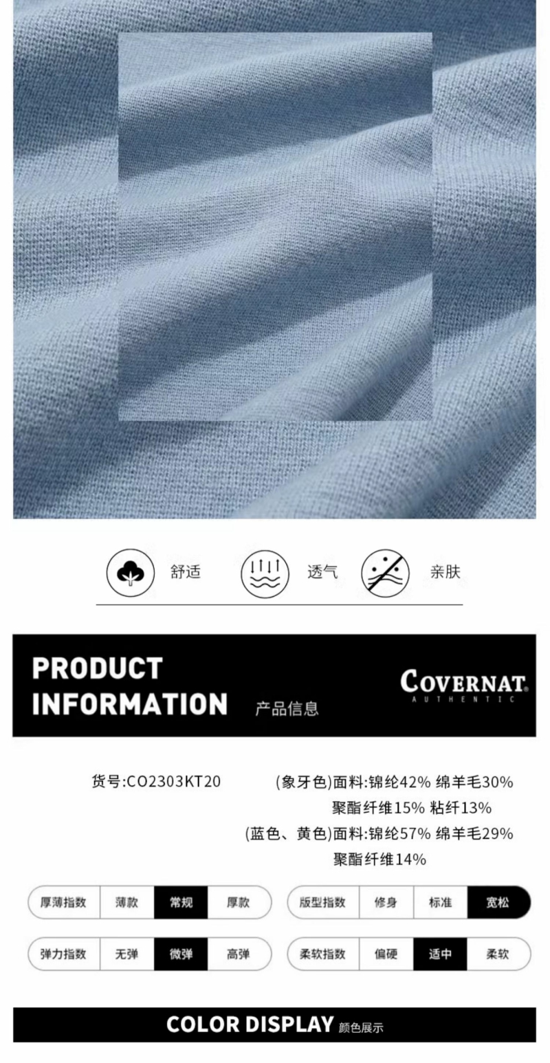 Covernat秋冬新品圆领套头针织衫毛衣时尚百搭男款CO2303KT20