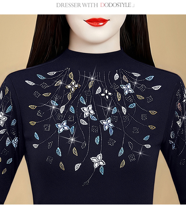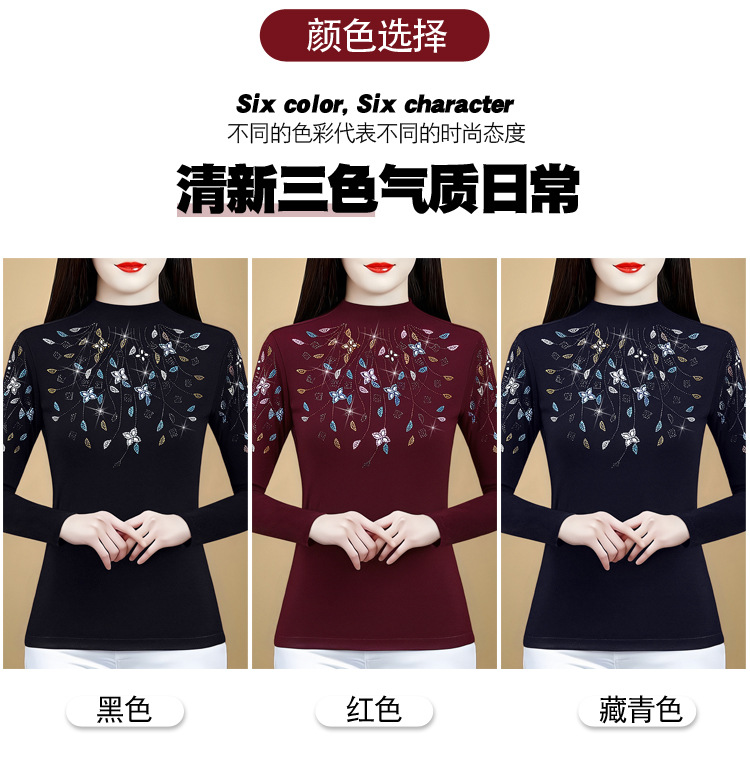 KQL 356H6800网纱彩色大码花钻遮肉显瘦气质时尚T恤妈妈衫