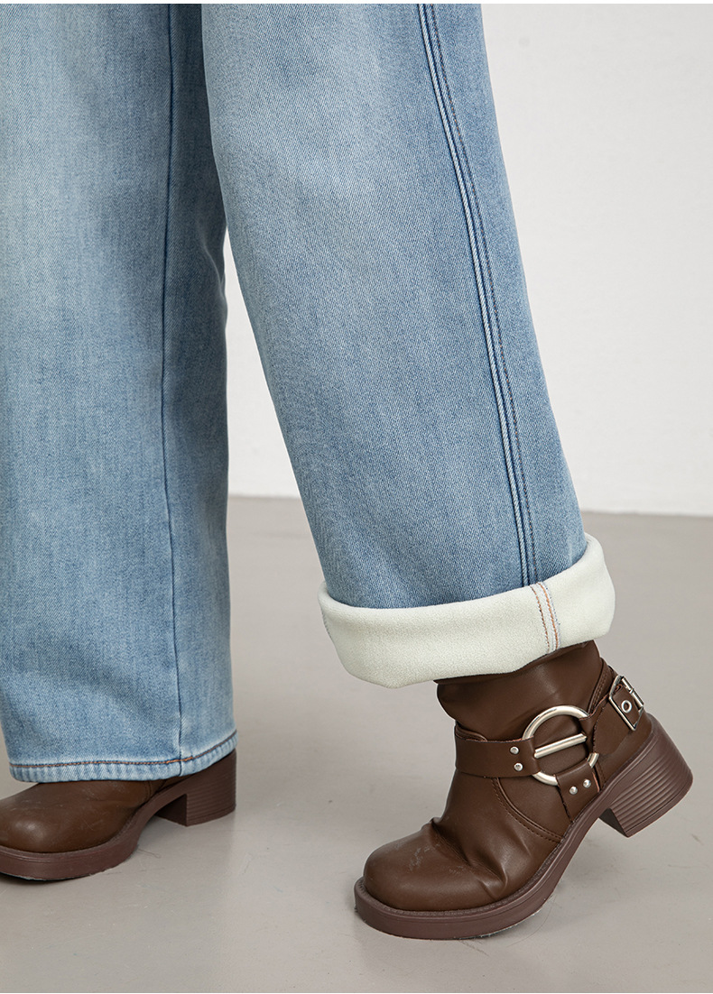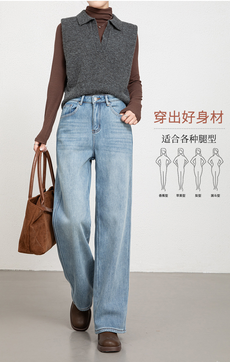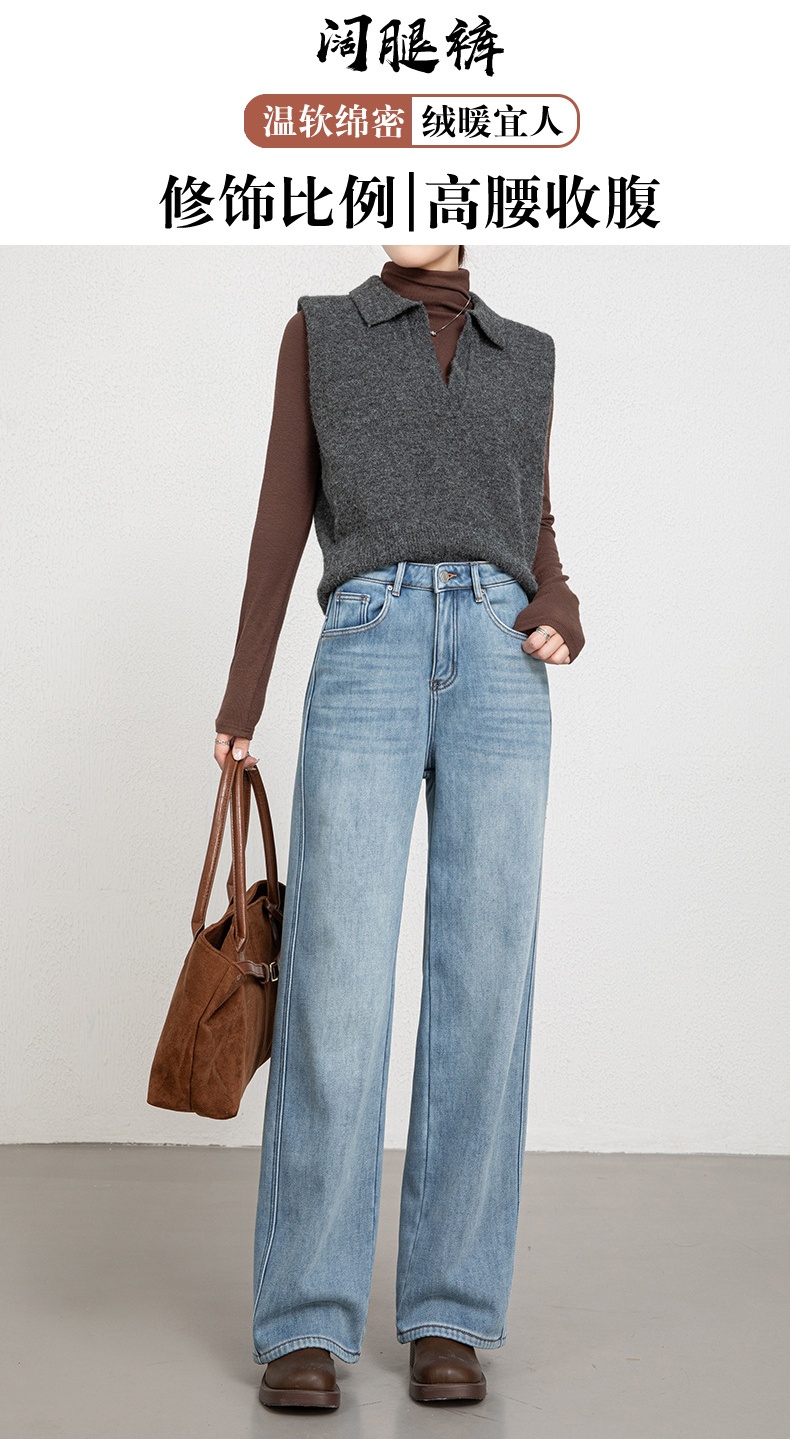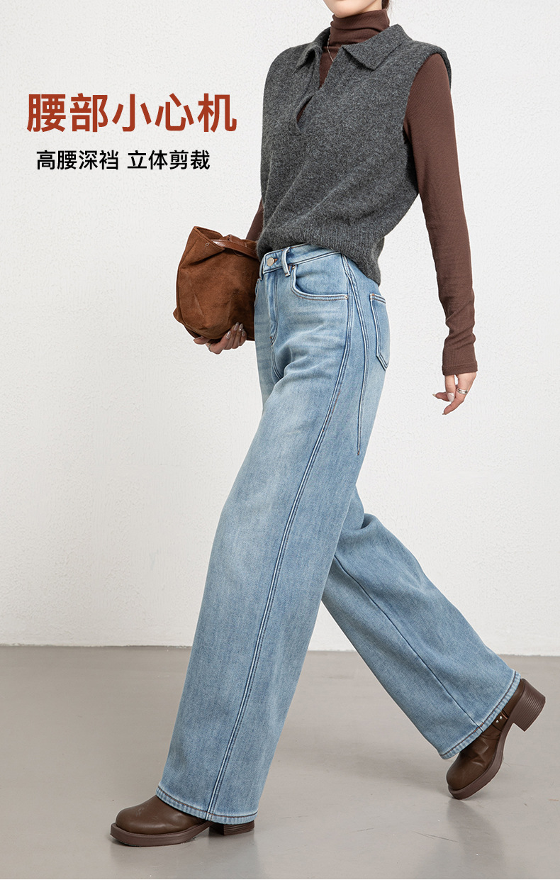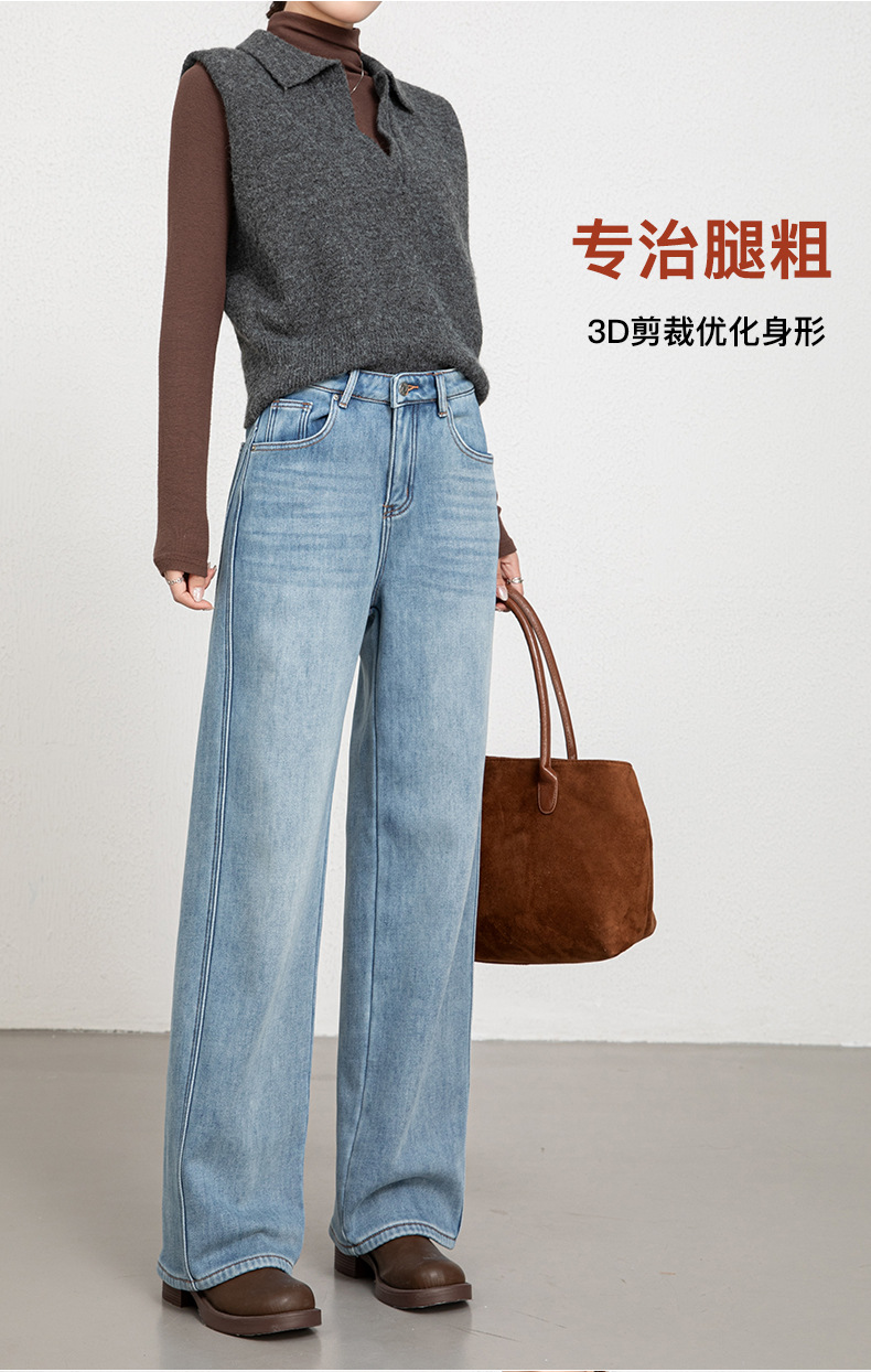 「高货rg」全新升级【铂金会员220/天猫289/差价69】(24126)洛诗琳自发热保暖牛仔裤2025冬季新款加绒阔腿直筒裤女