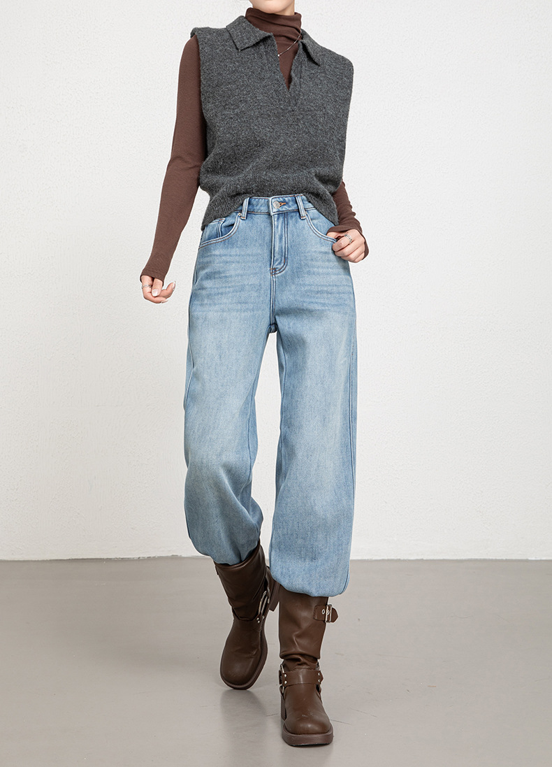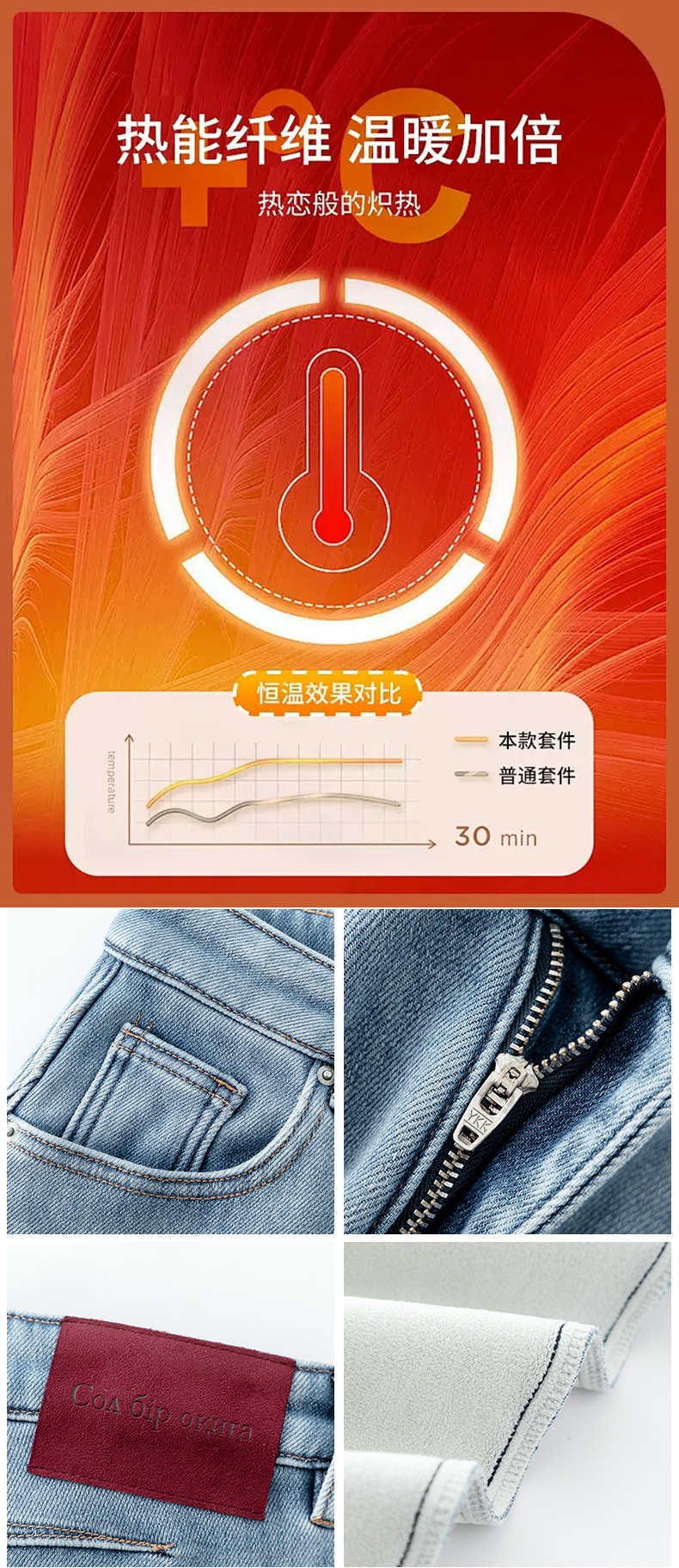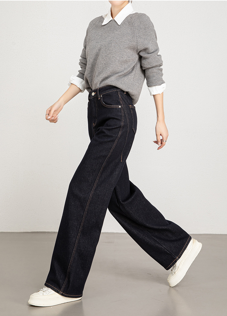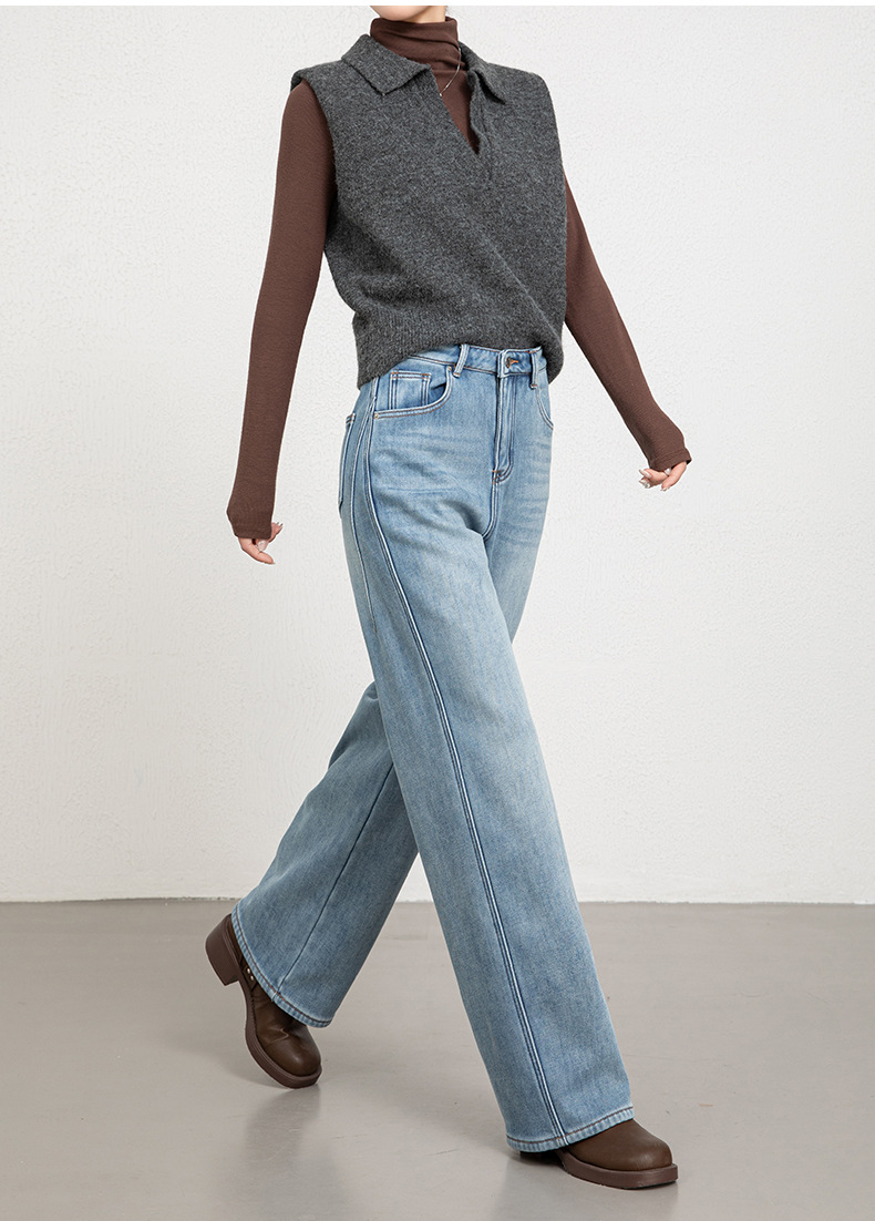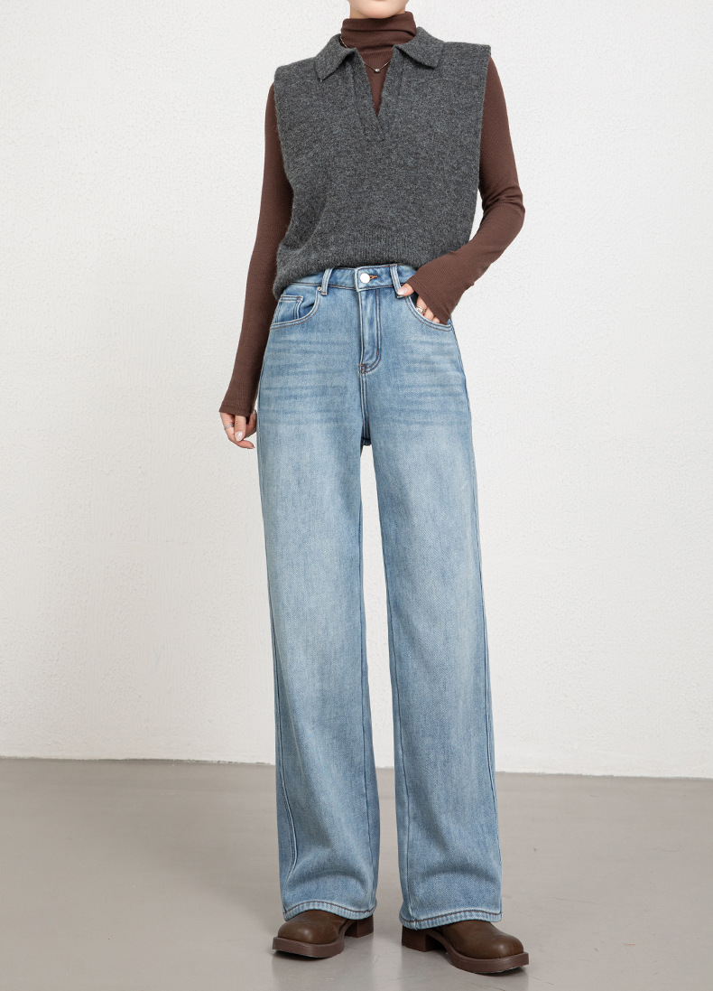 「高货rg」全新升级【铂金会员220/天猫289/差价69】(24126)洛诗琳自发热保暖牛仔裤2025冬季新款加绒阔腿直筒裤女