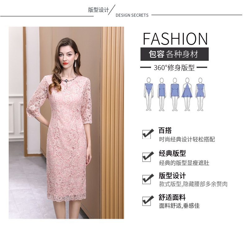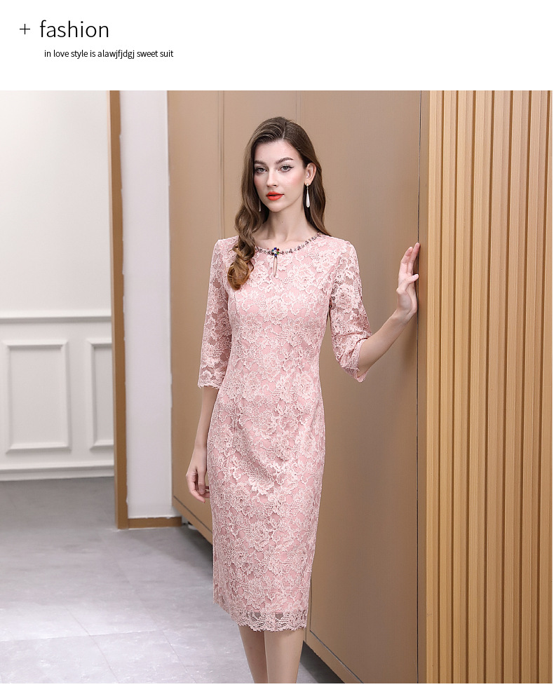 【自】全新升级【铂金会员441/天猫599/差价158】(44724) 洛诗琳春季蕾丝旗袍连衣裙中长款优雅简约中国风礼服