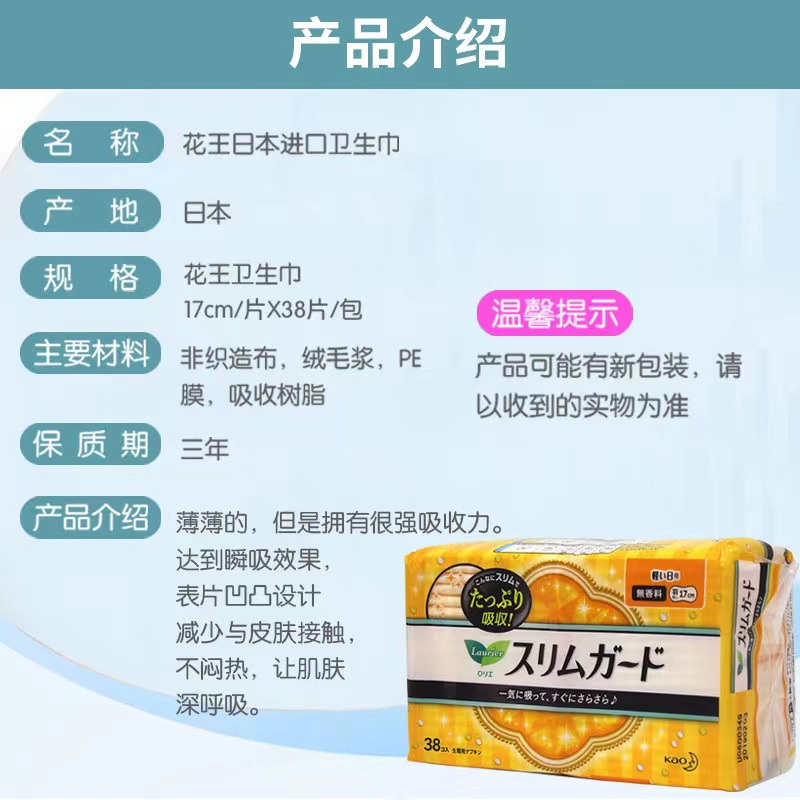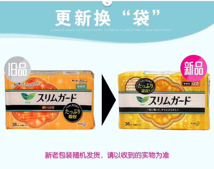 日本花王乐而雅日用卫生巾(护垫)/1包(17cm*38片)限用日期:27年12月补单专用