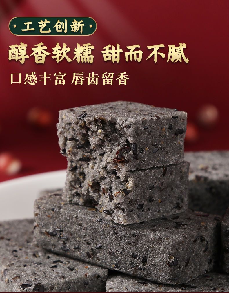 【以黑养黑!五黑燕麦淮山糕】远离湿态,轻享健康,甄选黑米、桑葚、黑豆、黑芝麻、黑枸杞、燕麦粉、芡实粉、淮山粉,早餐粗粮代餐轻食者零食品糕点-rui健康